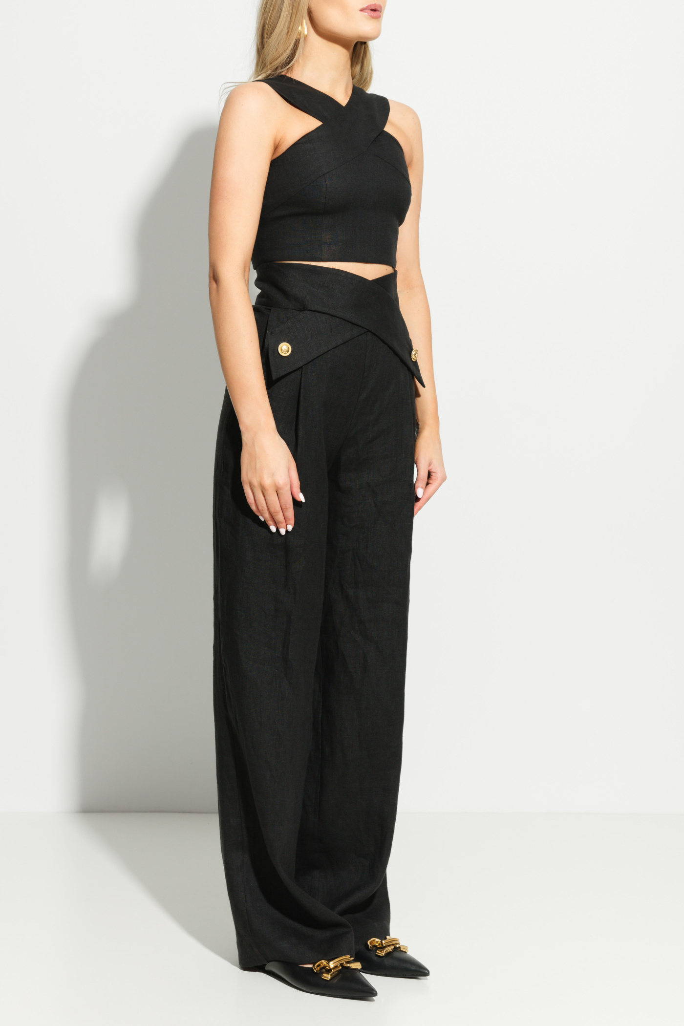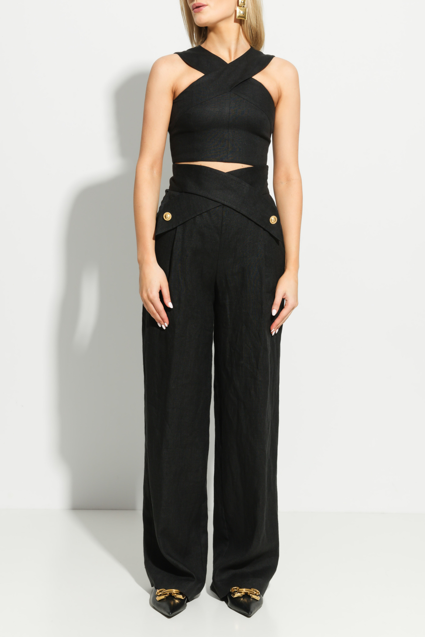 Блуза прилегающего силуэта, укороченной длины. Фигурный вырез горловины. Изделие застегивается на молнию контрастного цвета сзади.