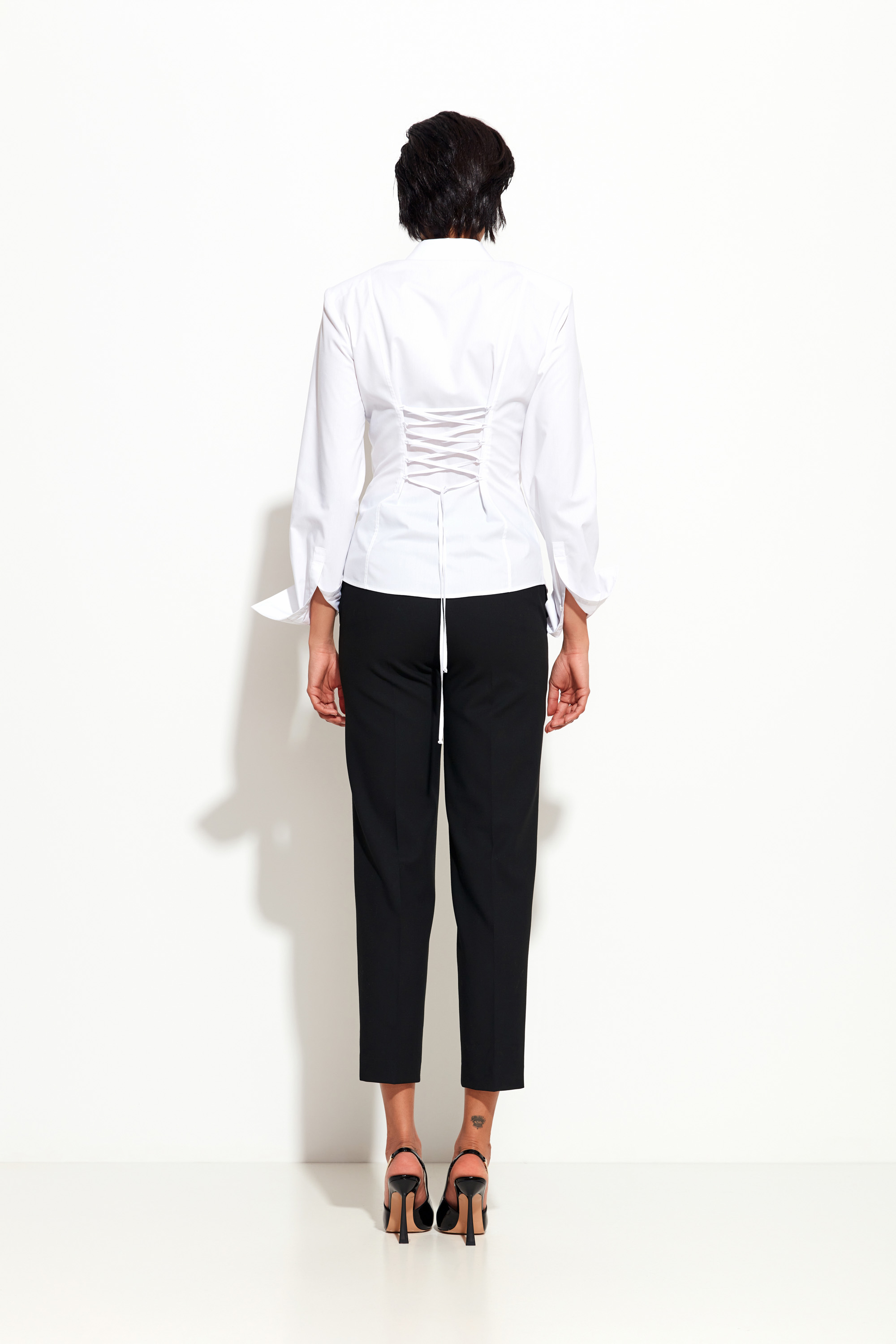 Белая блуза Lakbi из коллекции осень-зима 2025/26 — это элегантная и минималистичная модель с акцентом на спинку. Лаконичный перед и неожиданный поворот в виде тонких завязок сзади создают эффектный визуальный контраст. Благодаря прямому крою и мягкой фактуре ткани, блуза комфортна в носке и легко адаптируется под разные стили — от офисного до вечернего. Завязки на спине не только добавляют оригинальности, но и позволяют слегка регулировать посадку.