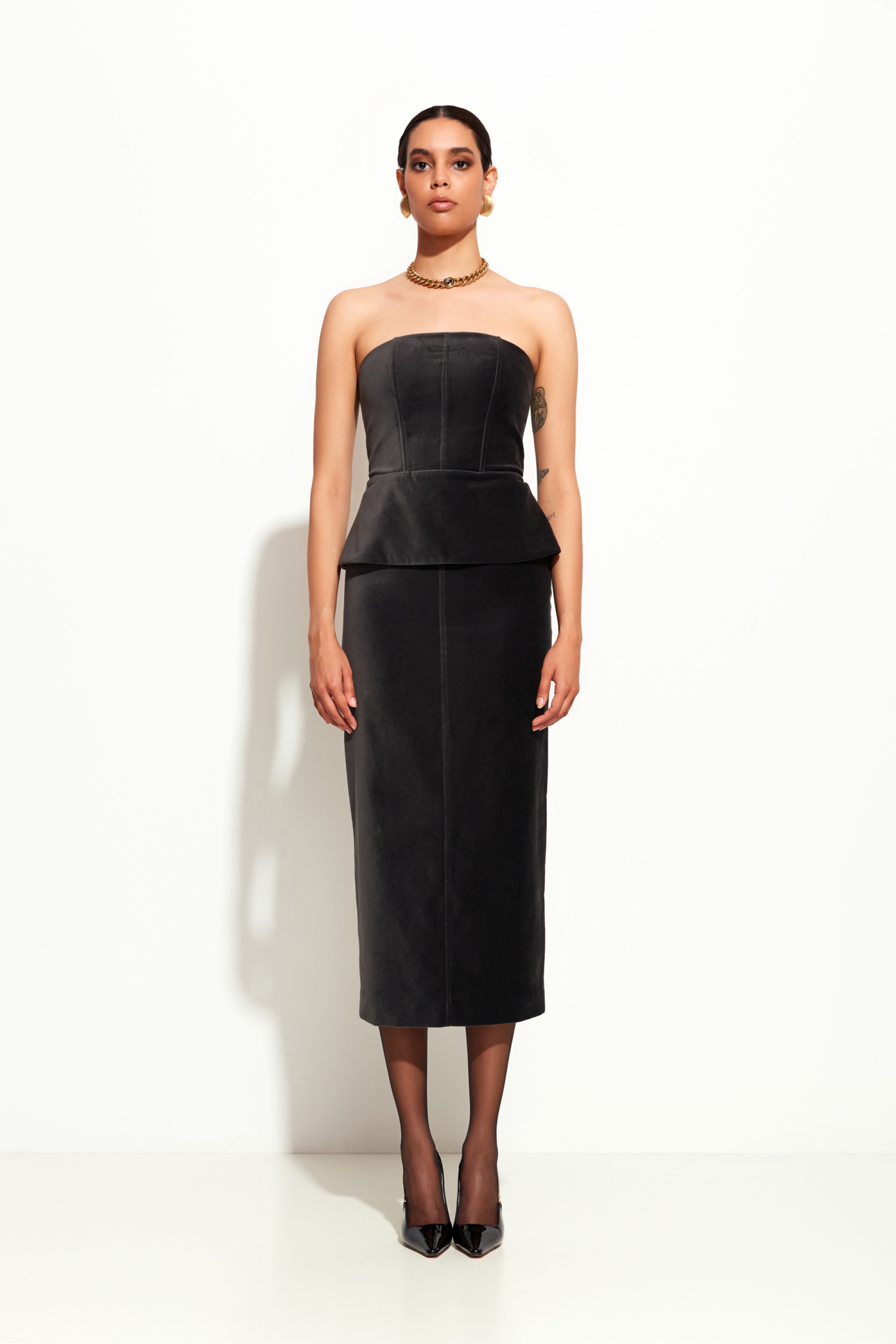 Материал: мягкий бархат с насыщенным темно-серым оттенком — приятен на ощупь и визуально эффектен.