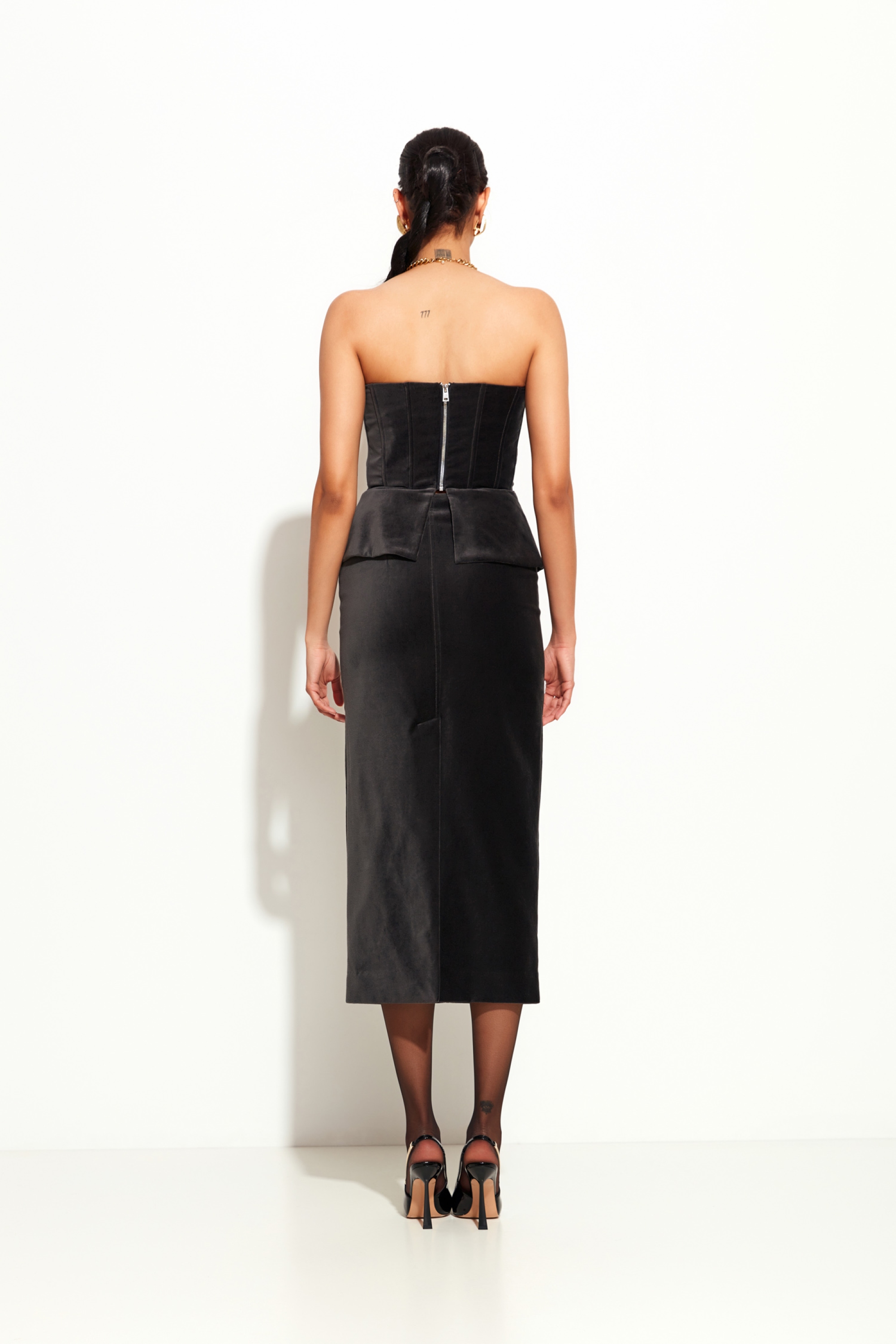 Детали: чёткая структура корсета, аккуратная обработка краёв, акцентная застёжка на спине.