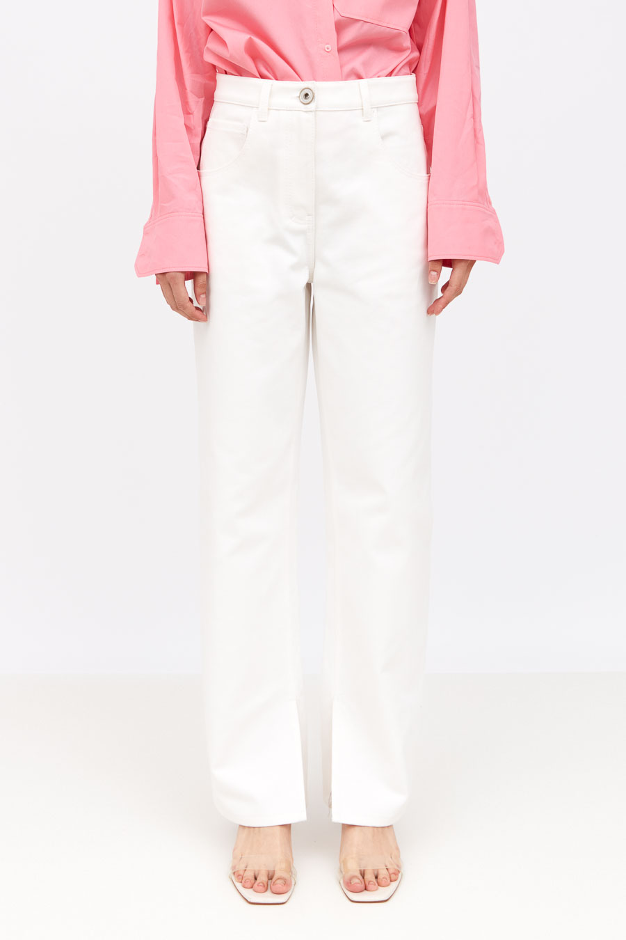 Джинсы прямого силуэта с разрезами по бокам. Оригинальная и стильная модель на каждый день.