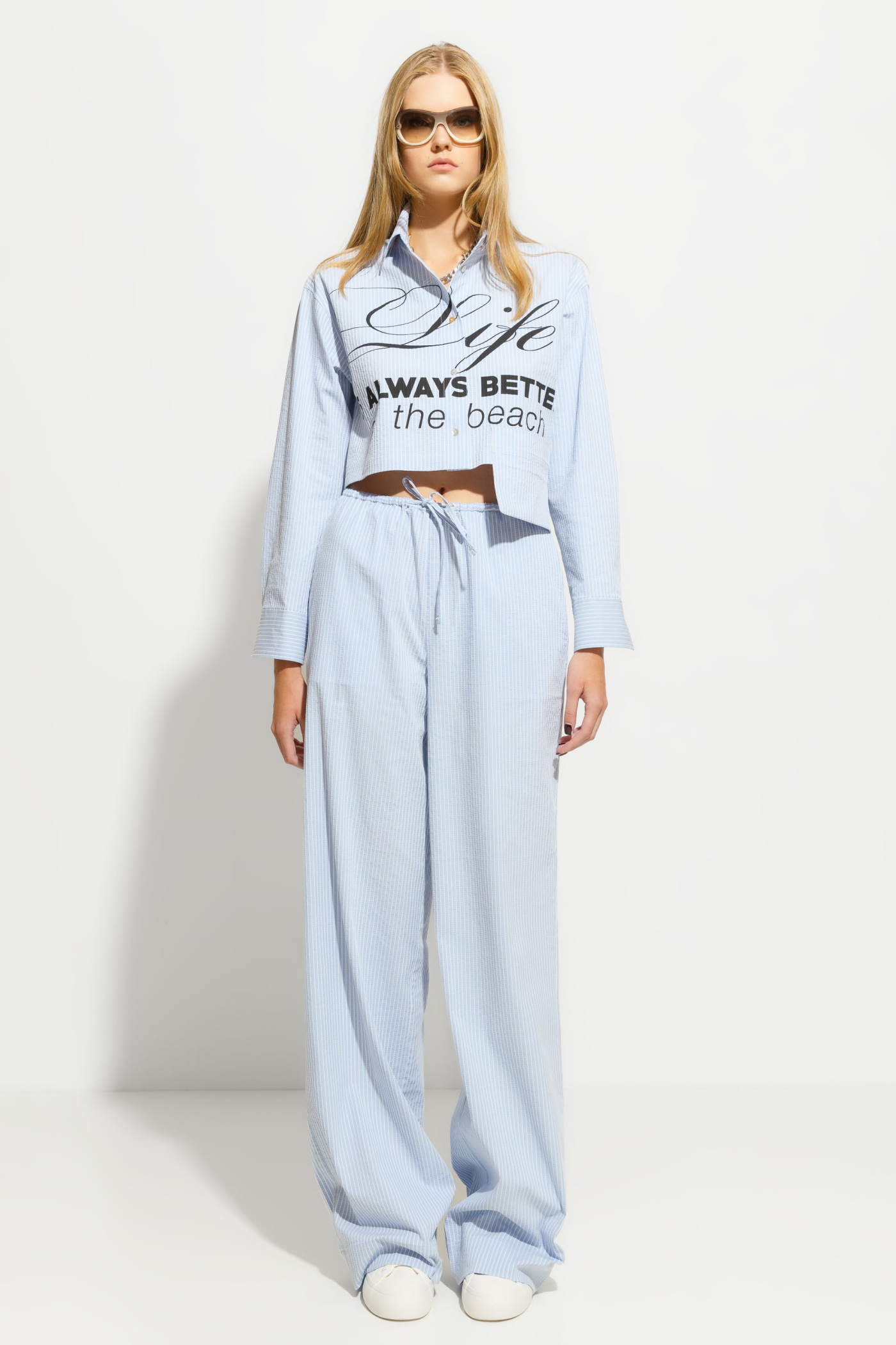 Брюки полуприлегающего силуэта идеально подчеркнут вашу фигуру благодаря прямому крою от линии бедер к низу. У них есть удобный притачной пояс с резинкой, обеспечивающий комфортную посадку. Карманы в боковых швах добавляют практичности этой модели. Передние и задние части брюк выполнены цельными, а не заутюженные канты создают естественный вид. Пояс с шнуром, протянутым через две петли, позволяет регулировать посадку по фигуре и придает дополнительный шарм этим стильным брюкам. В них вы будете выглядеть элегантно и чувствовать себя комфортно в любой ситуации.