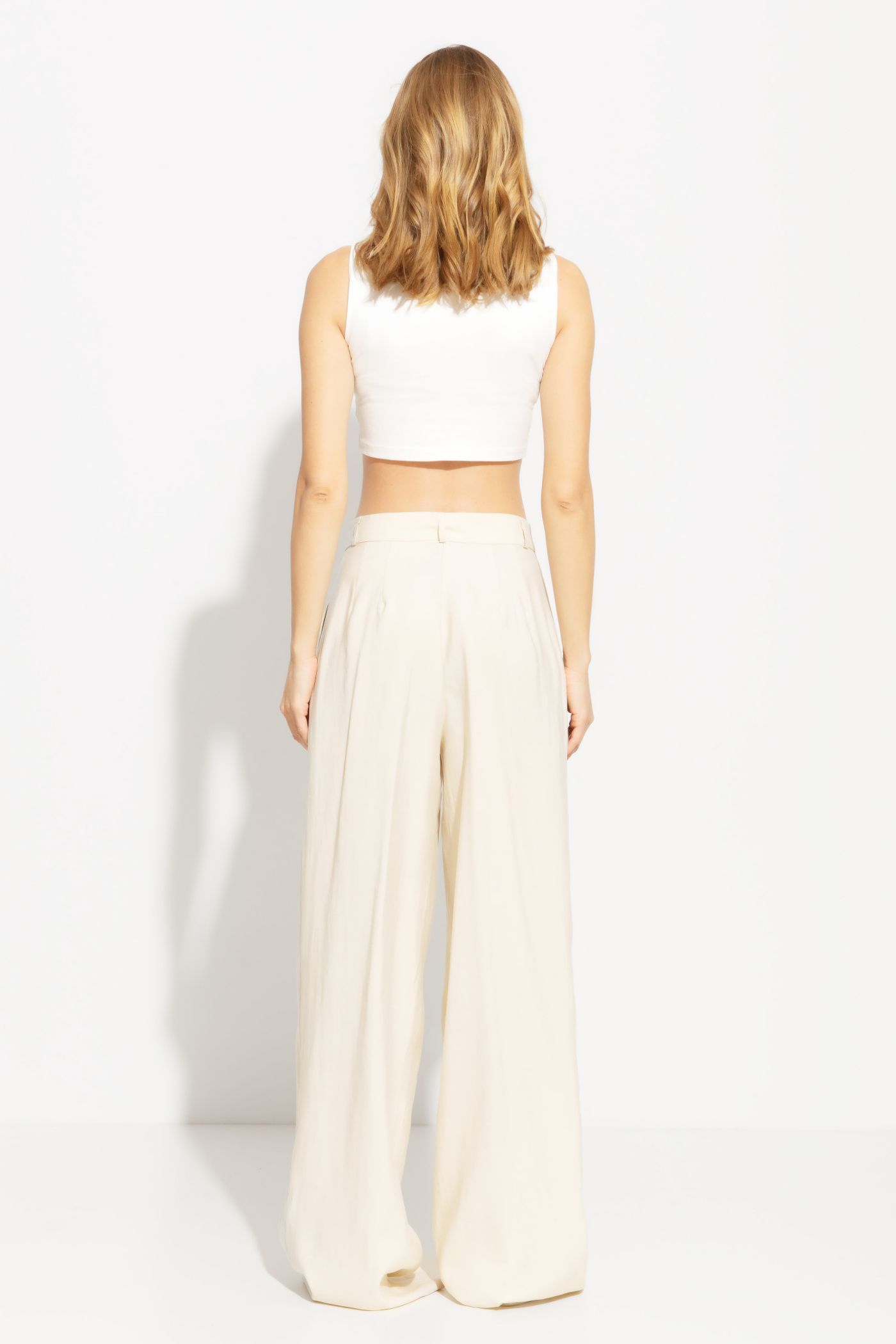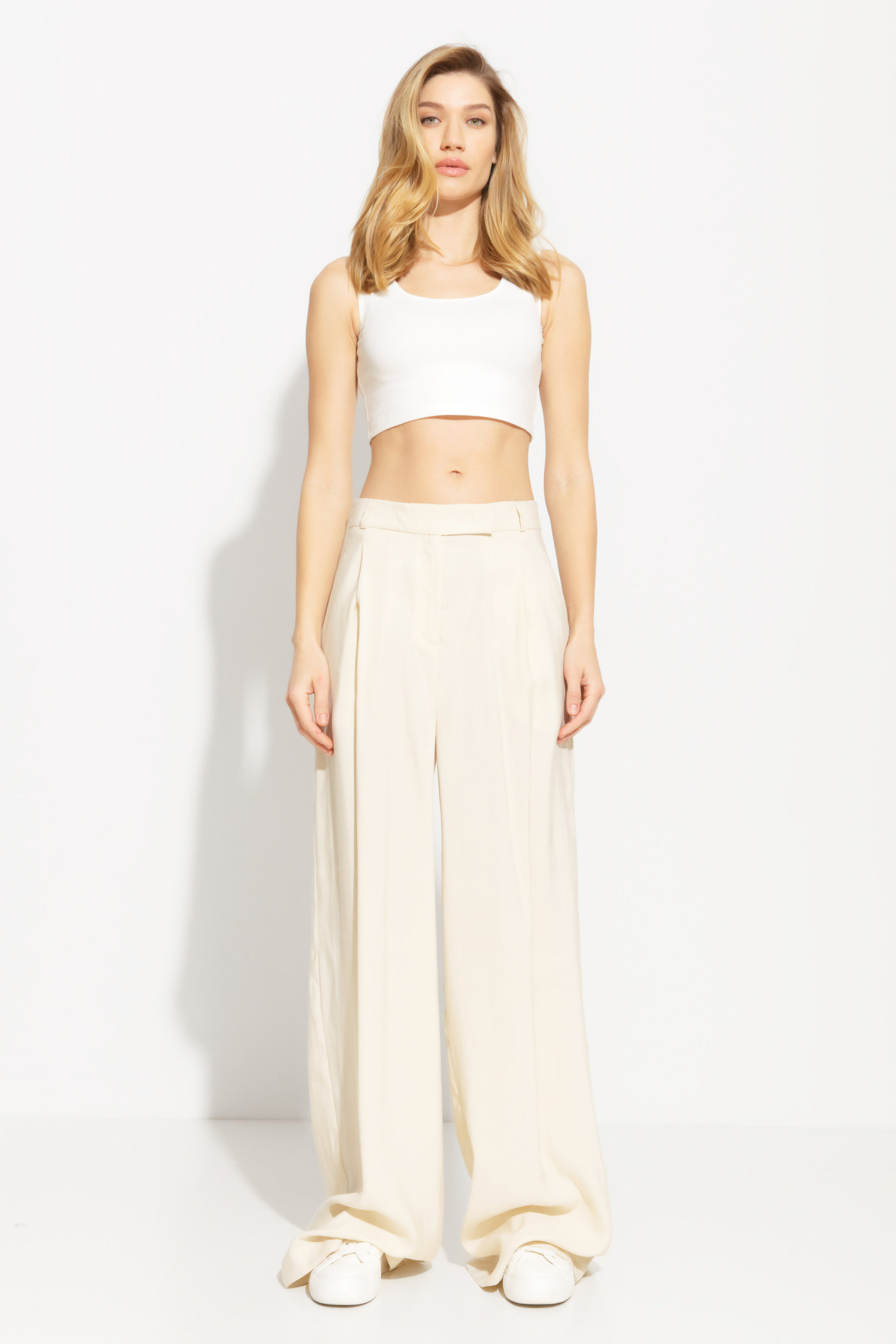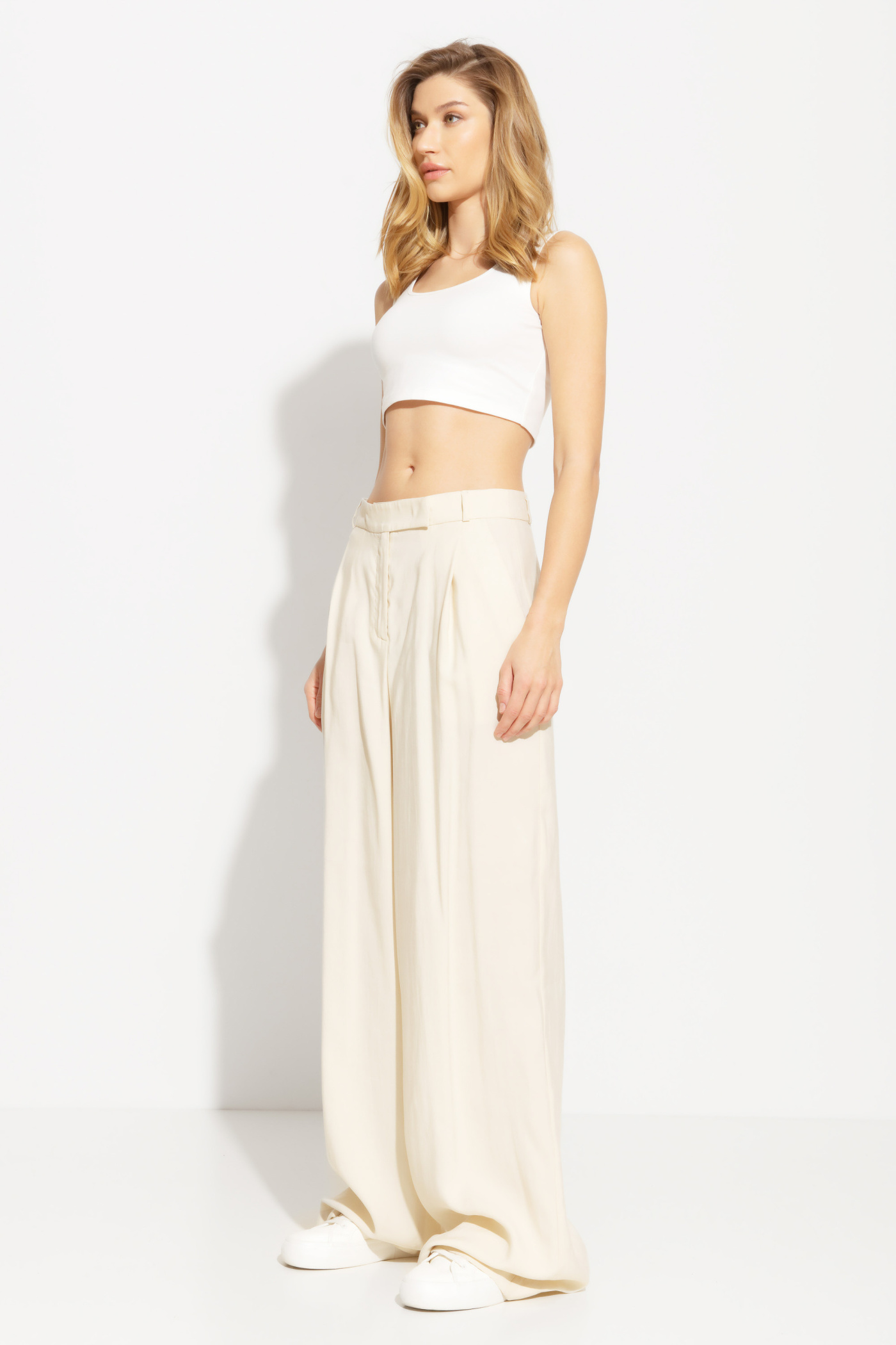 Брюки полуприлегающего силуэта подчеркивает фигуру и создает элегантный образ. Расширяются от линии бедер к низу, что придает им особую изюминку и делает их более интересными. Застежка в среднем шве переда на тесьму - «молния» обеспечивает надежность и удобство при носке. Задние части брюк с двумя талиевыми выточками добавляют изюминку и придают брюкам дополнительный шарм. Пояс брюк с пятью шлевками, застежка на металлический крючок, потайная петля и пуговица делают их более удобными и практичными в использовании. Носите эти брюки на работе или на встрече с друзьями - они станут вашим надежным спутником в любой ситуации.