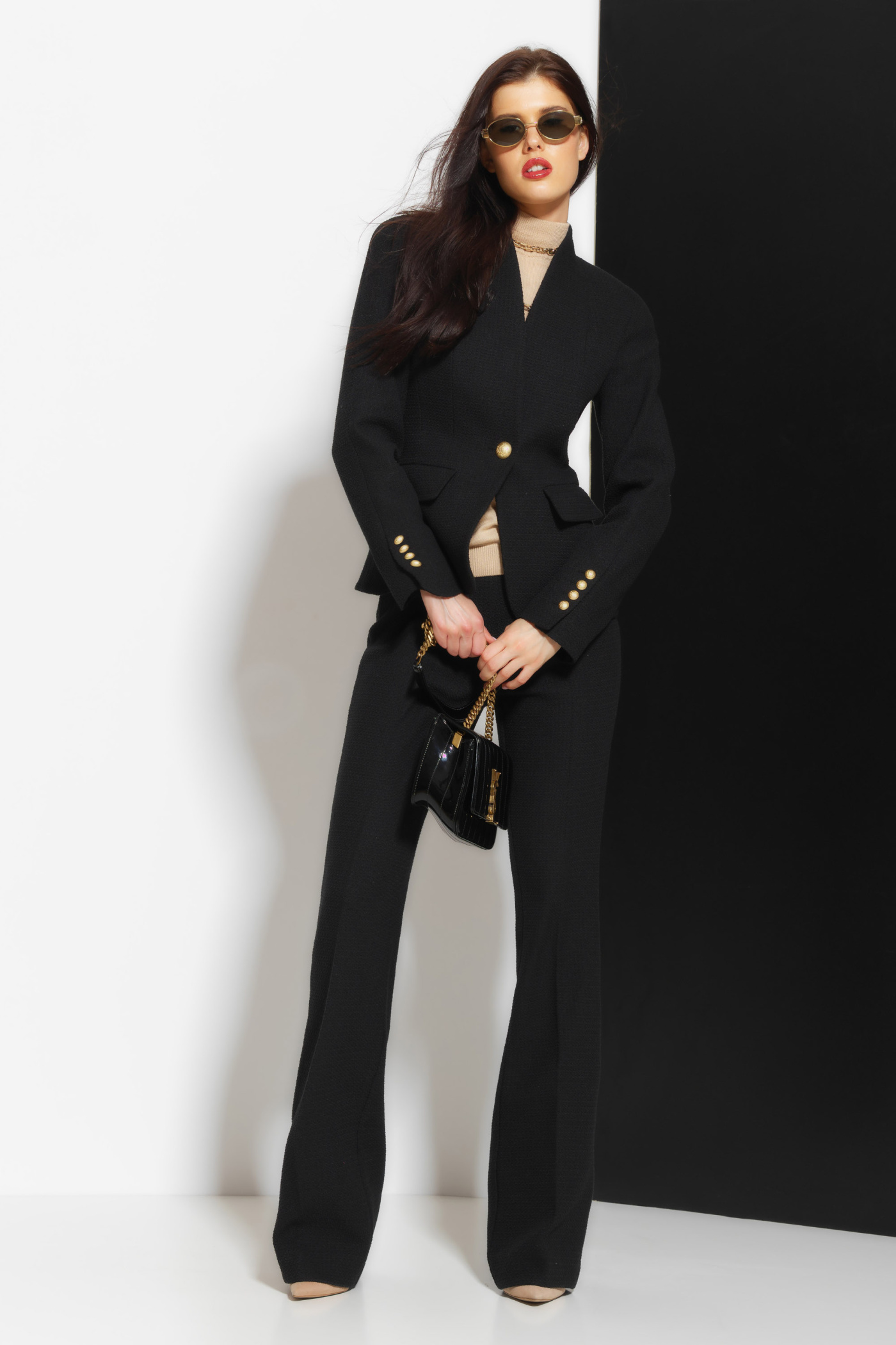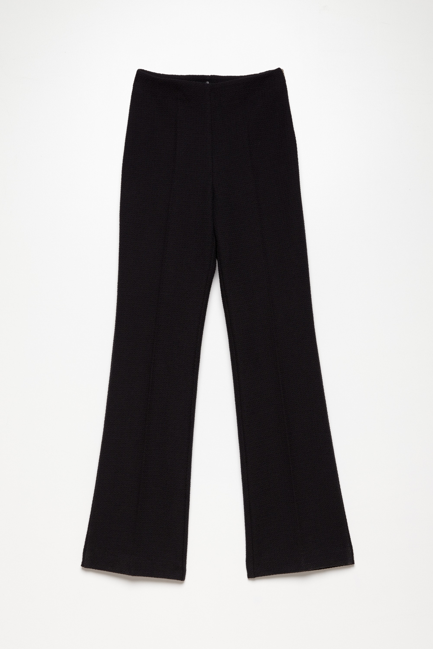 Брюки твидовые полуприлегающего силуэта, расклешенные от линии колен к низу. Посадка изделия высокая. Застегиваются на потайную молнию сбоку. Классическая, универсальная модель, которая идеально подойдет для создания женственных и эффектных образов по любому случаю.