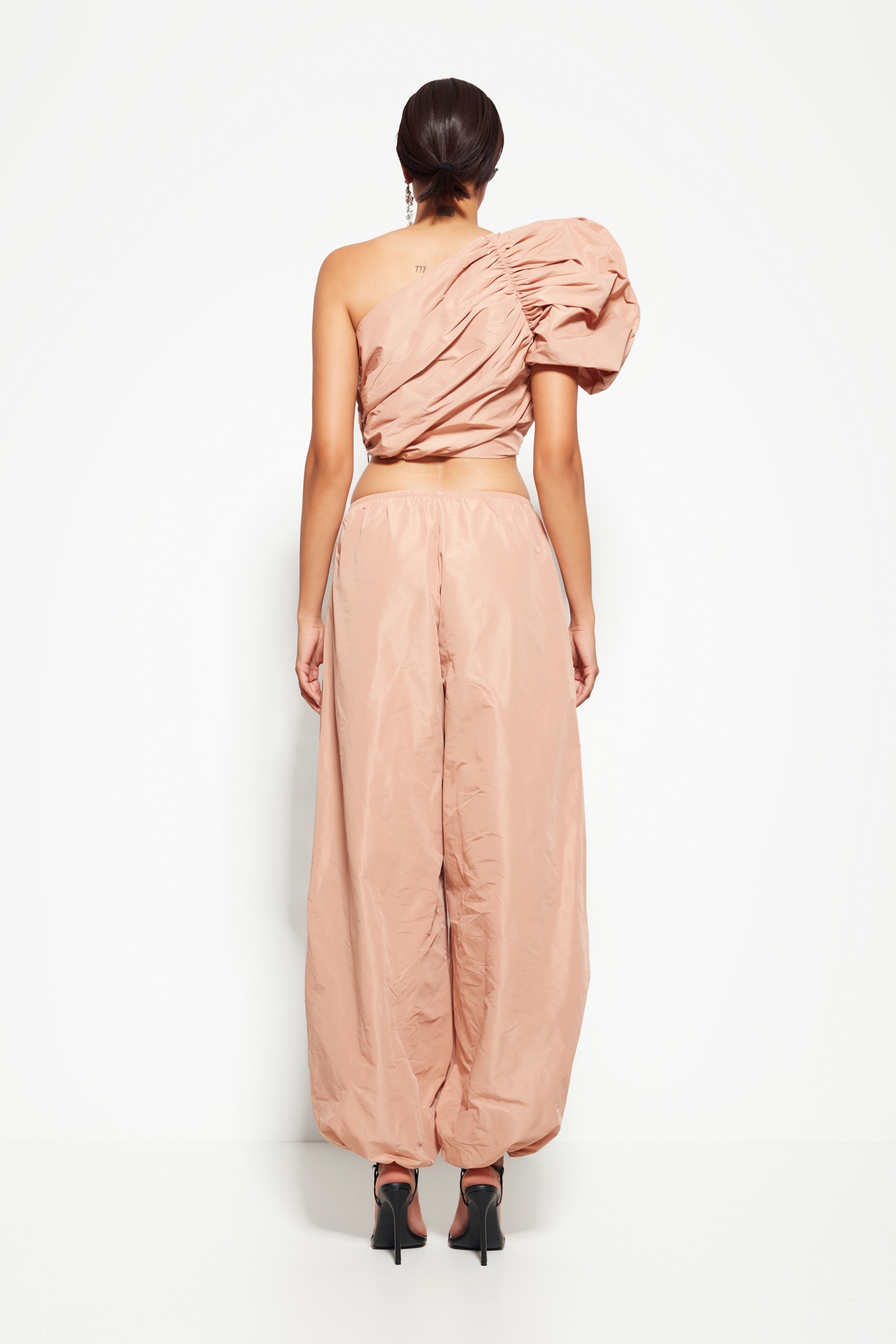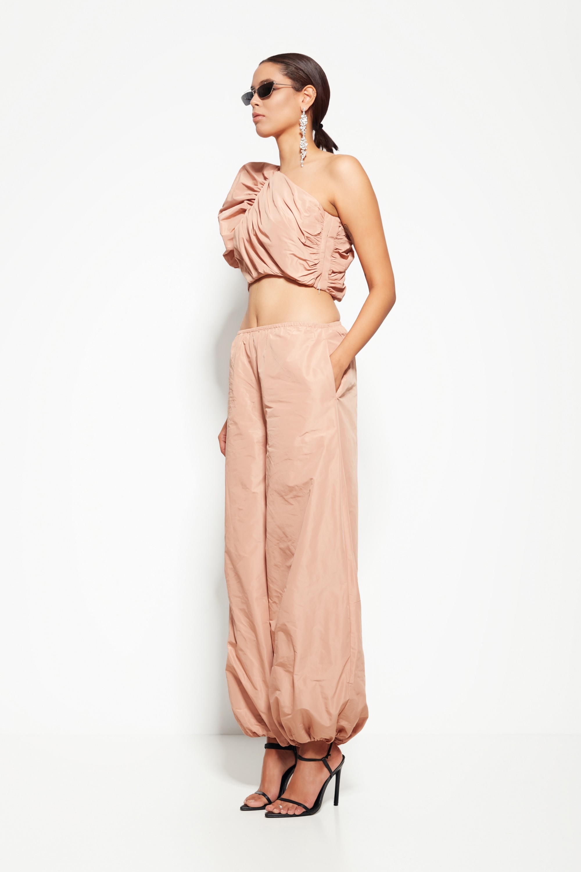Брюки из коллекции Party 2026 — модернизированная и стильная модель свободного, чуть расслабленного кроя, выполненная из лёгкой ткани с лёгким блеском. Эта модель сочетает в себе праздничность и практичность, позволяя выглядеть выразительно без излишнего перегруза.