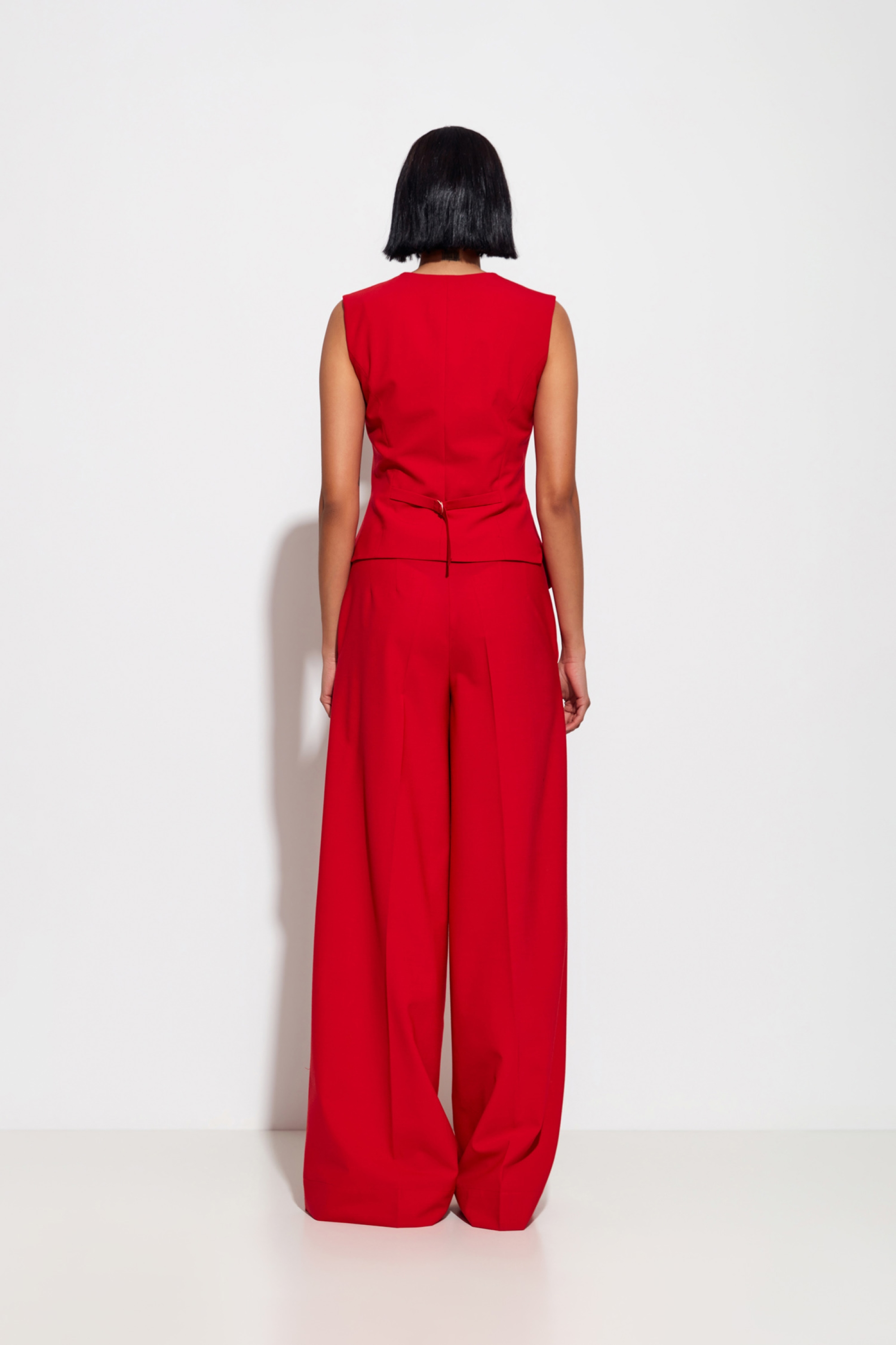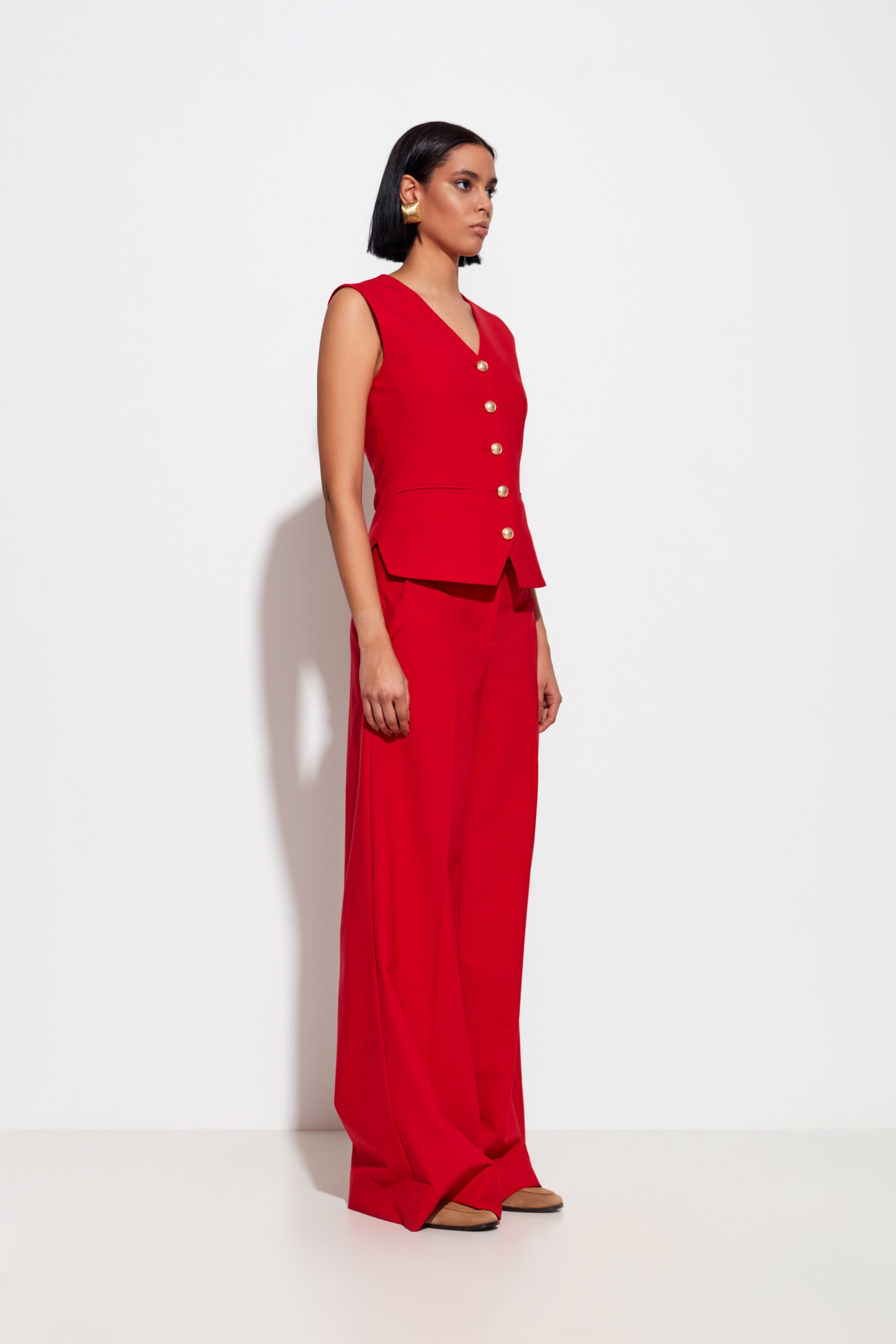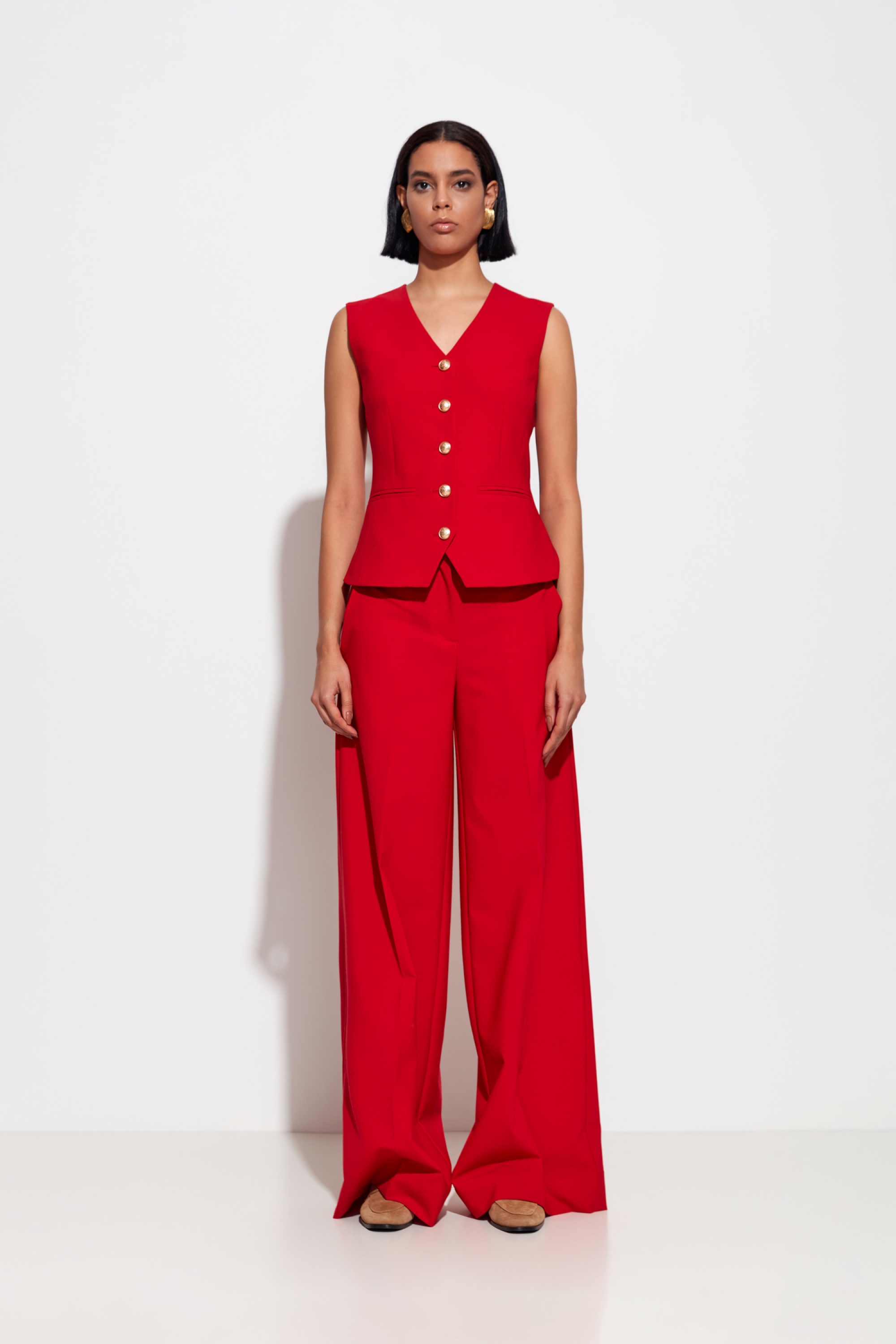 Красные брюки с шерстью в составе Lakbi — это воплощение элегантного минимализма и практичности. Модель выполнена из качественной костюмной ткани, обеспечивающей комфорт, идеальную посадку и презентабельный внешний вид. Брюки обладают прямым силуэтом с четкими линиями, которые визуально удлиняют ноги и подчеркивают фигуру.