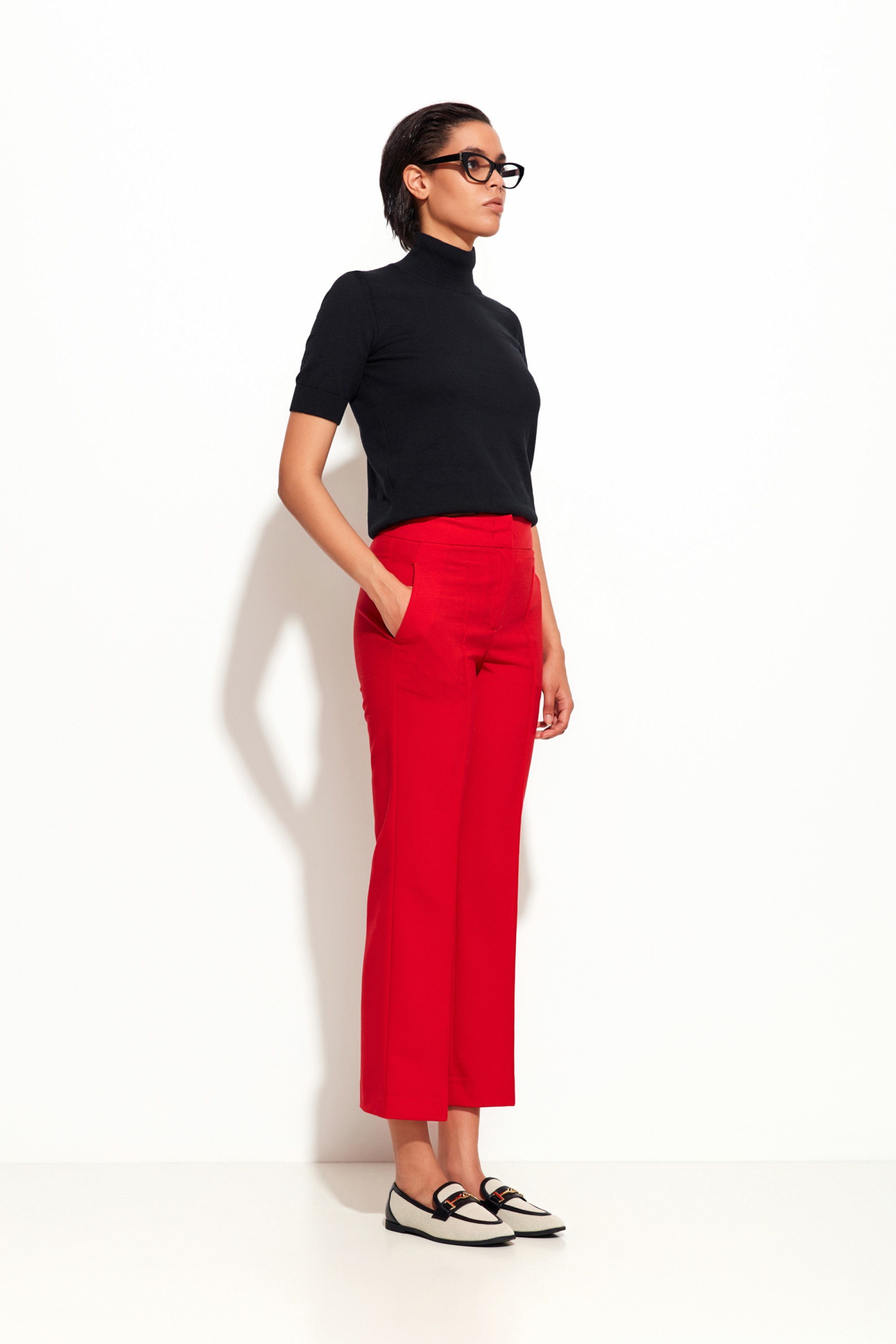 Брюки укороченной длины Lakbi из коллекции осень-зима 2025/26 — это стиль и уверенность в одном изделии. Благодаря насыщенному красному оттенку модель мгновенно привлекает внимание, а строгий прямой силуэт делает её подходящей как для офисных, так и для смарт-кэжуал образов.