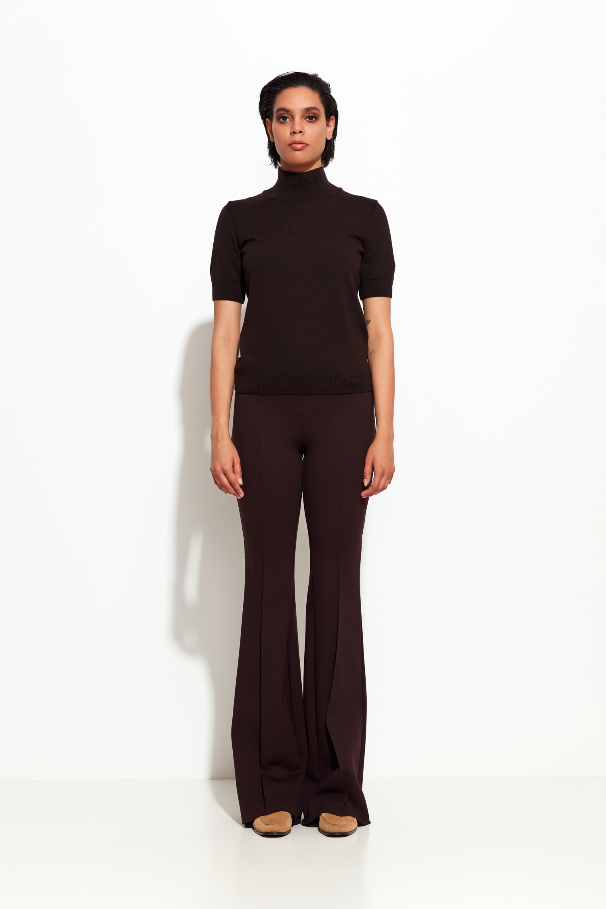 Расклешенные брюки Lakbi — это стильная модель в глубоком шоколадном оттенке, идеально подходящая для осенне-зимнего сезона 2025/26. Классический прямой крой подчёркивает фигуру, создавая изящный и современный образ. Брюки выполнены из качественного материала с хорошей посадкой, обеспечивая комфорт при носке и долговечность. Практичные детали и универсальный цвет делают эту модель незаменимой в гардеробе для создания как офисных, так и повседневных образов.