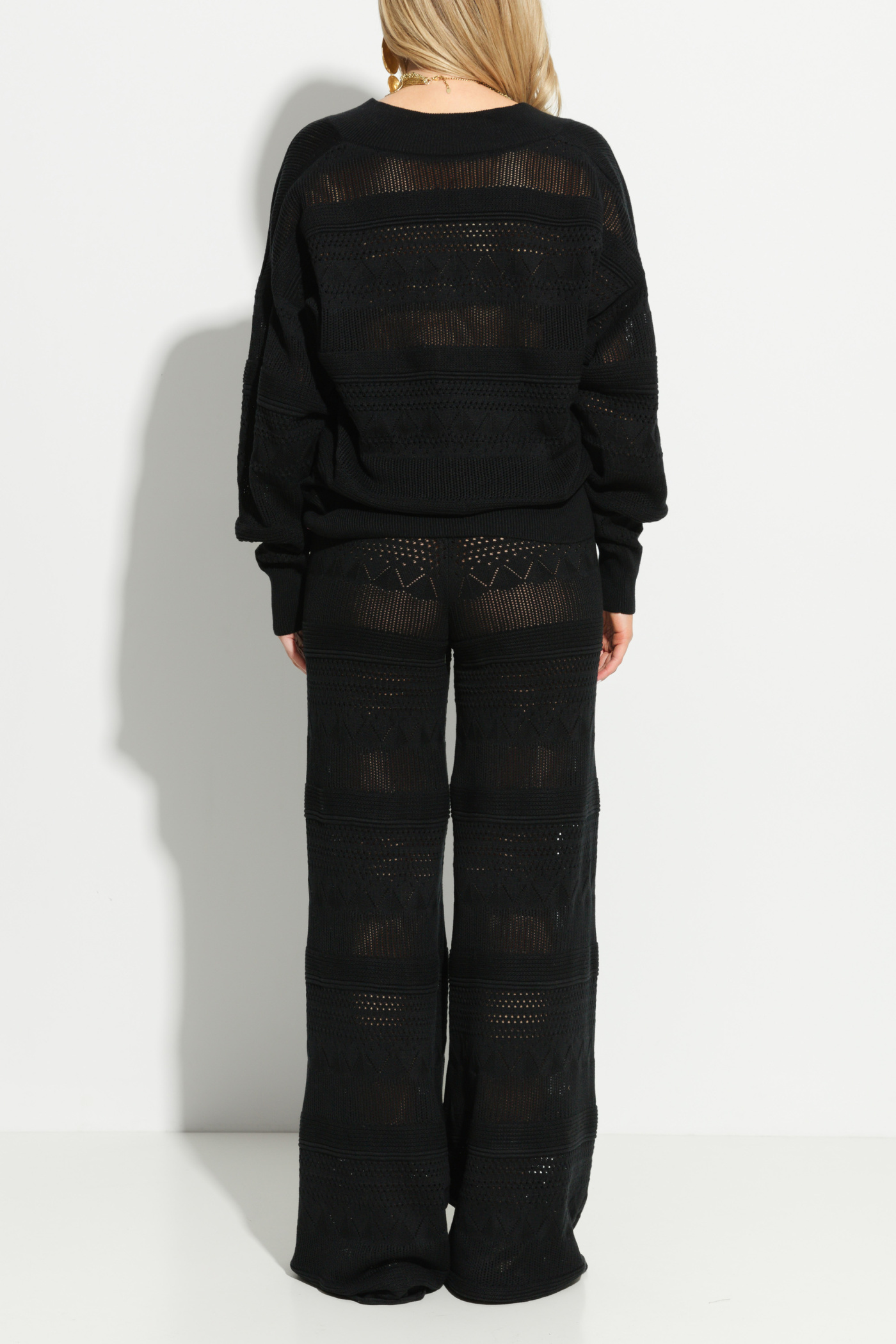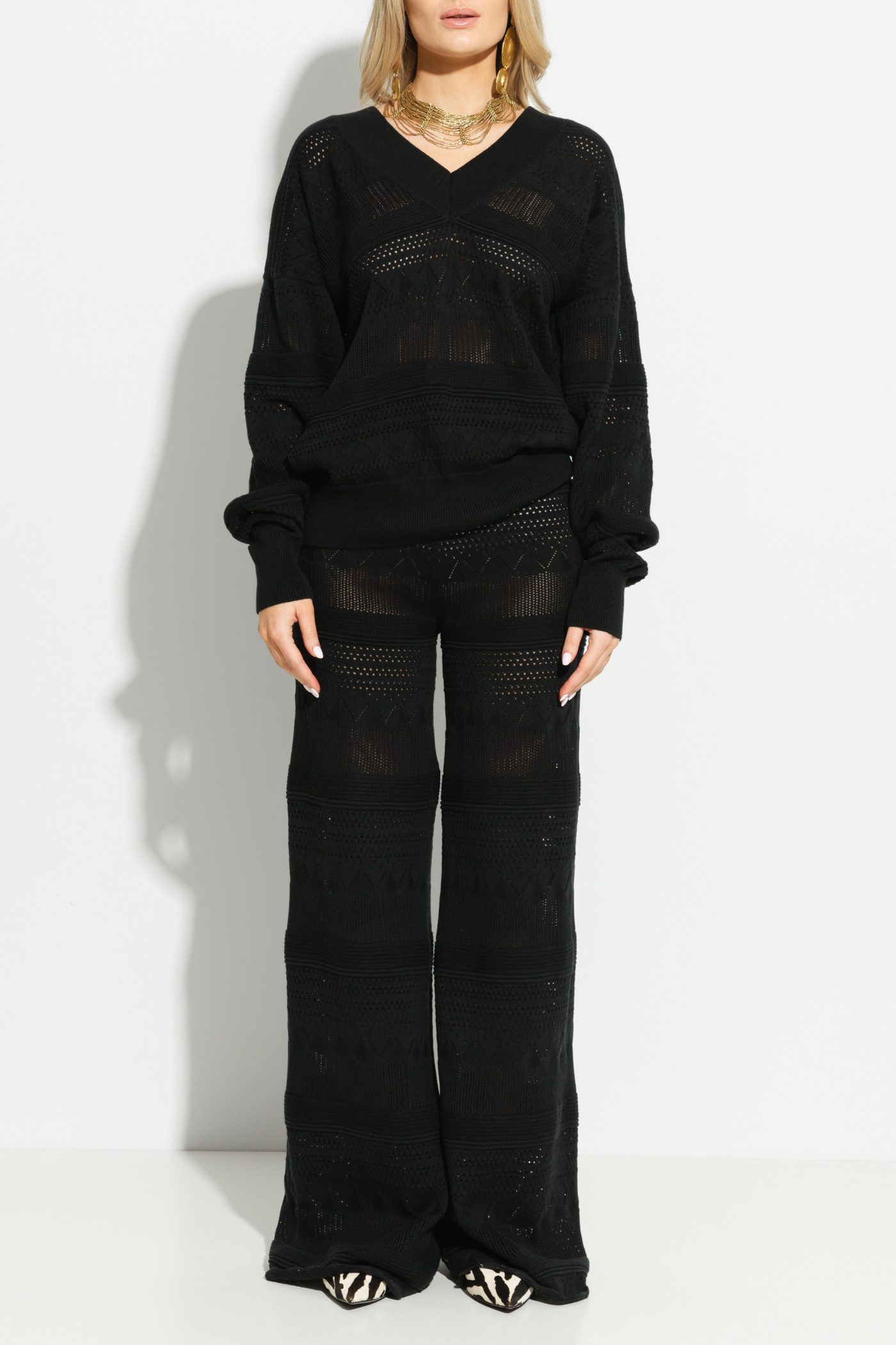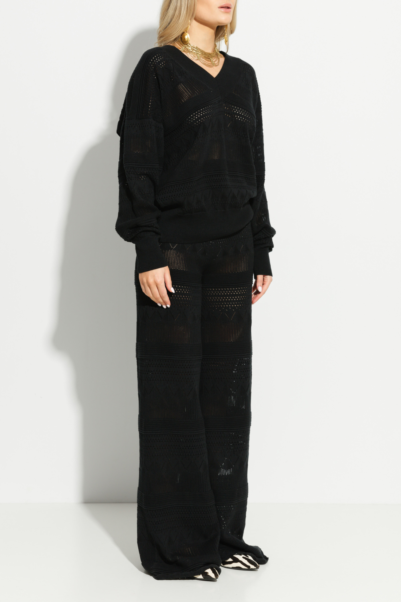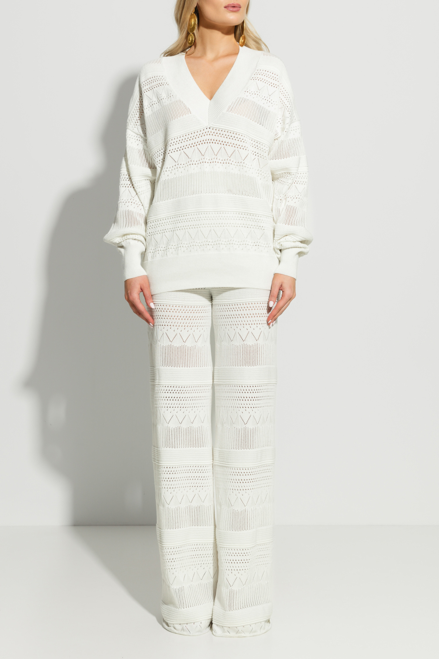 Джемпер свободного кроя, длиной ниже линии бедер. V-образный вырез горловины. Низ изделия и рукава на широкой, эластичной резинке. Стильная, комфортная модель. Хлопок в составе, который отлично пропускает воздух, позволяет носить джемпер даже в теплую погоду.