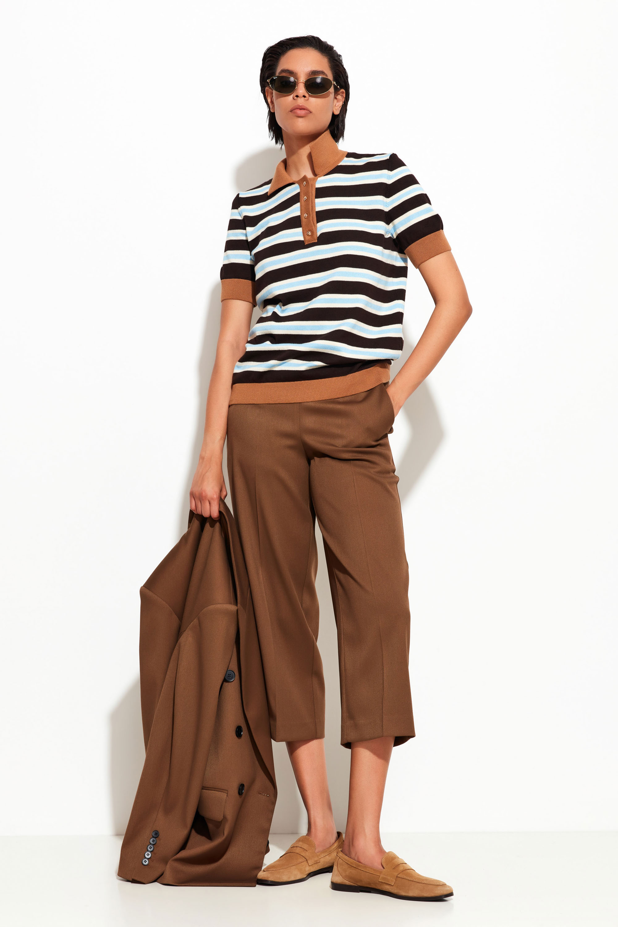 Идеален в сочетании с классическими брюками, джинсами и юбками.
