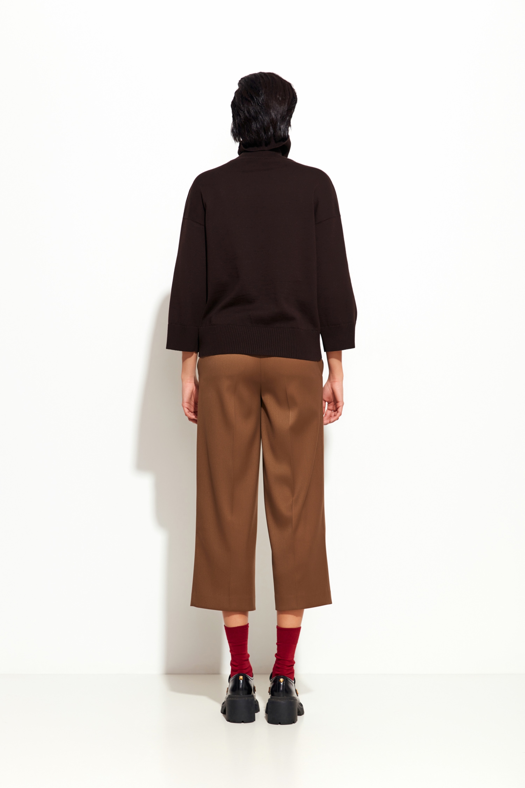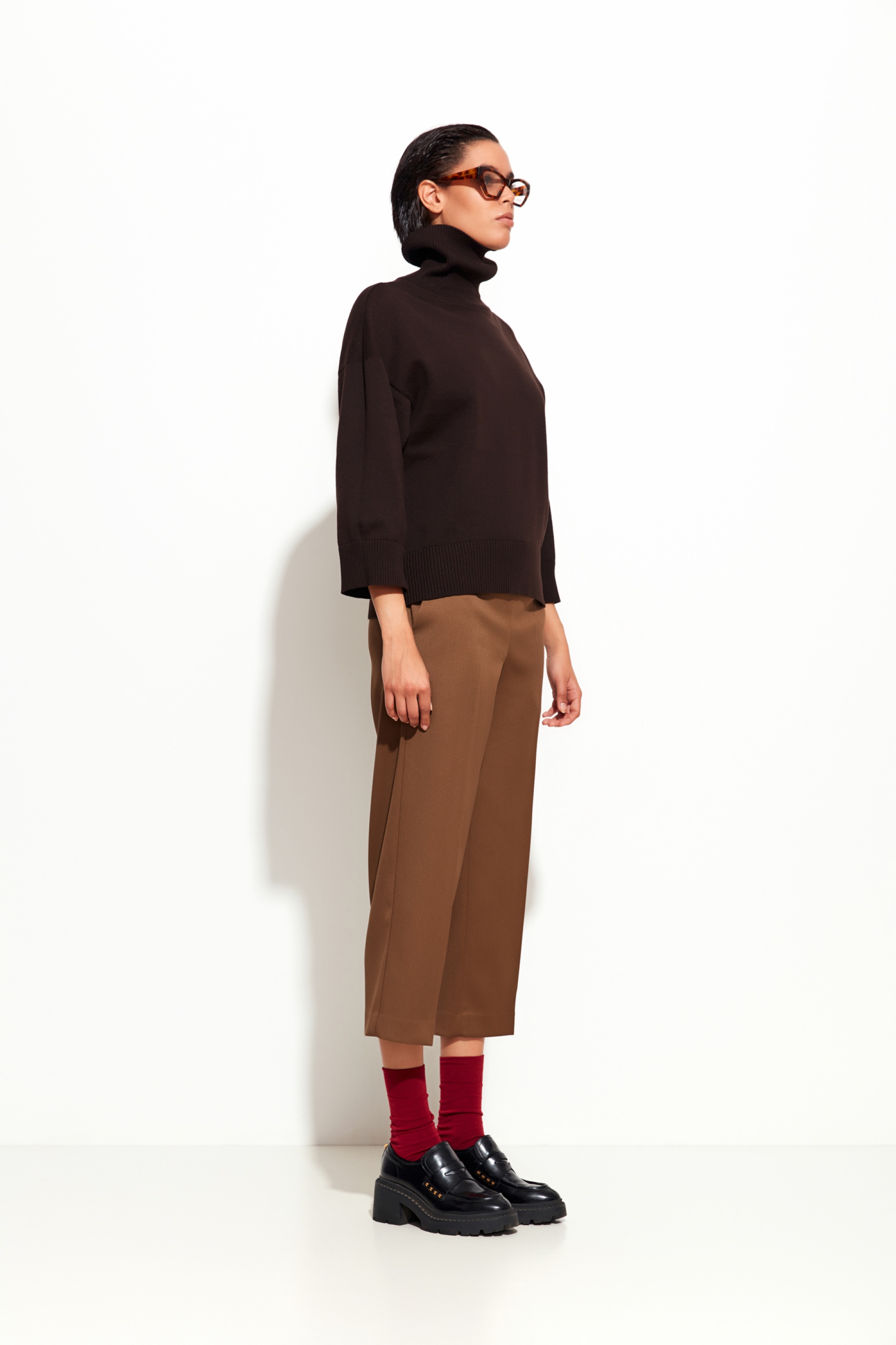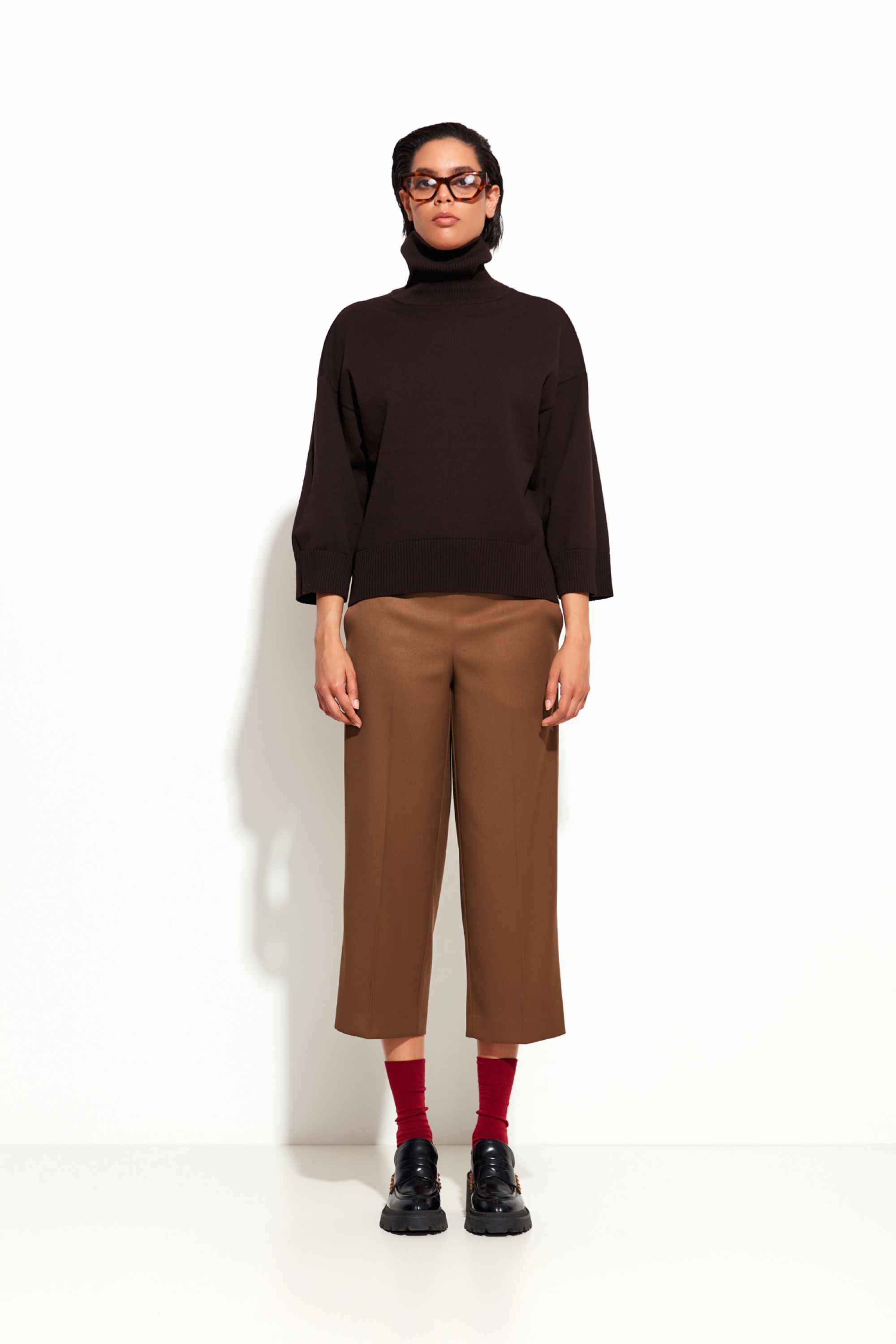 Вязаный джемпер коричневого цвета Lakbi из коллекции осень-зима 2025/26 — это идеальный выбор для тех, кто ценит сочетание удобства и элегантности. Прямой силуэт с высокой горловиной делает джемпер универсальным и подходит для разнообразных образов — от повседневных до более формальных.