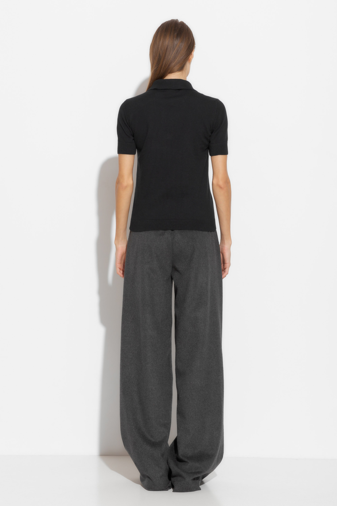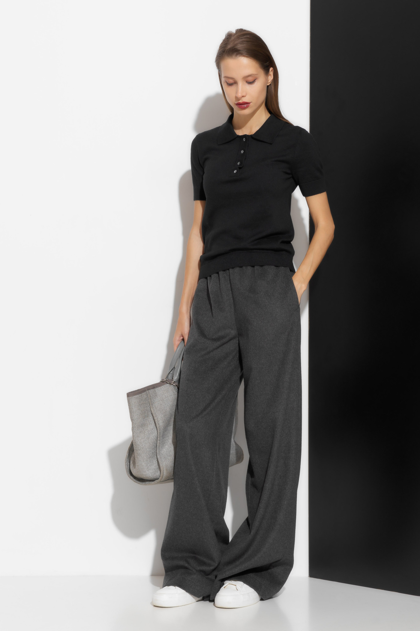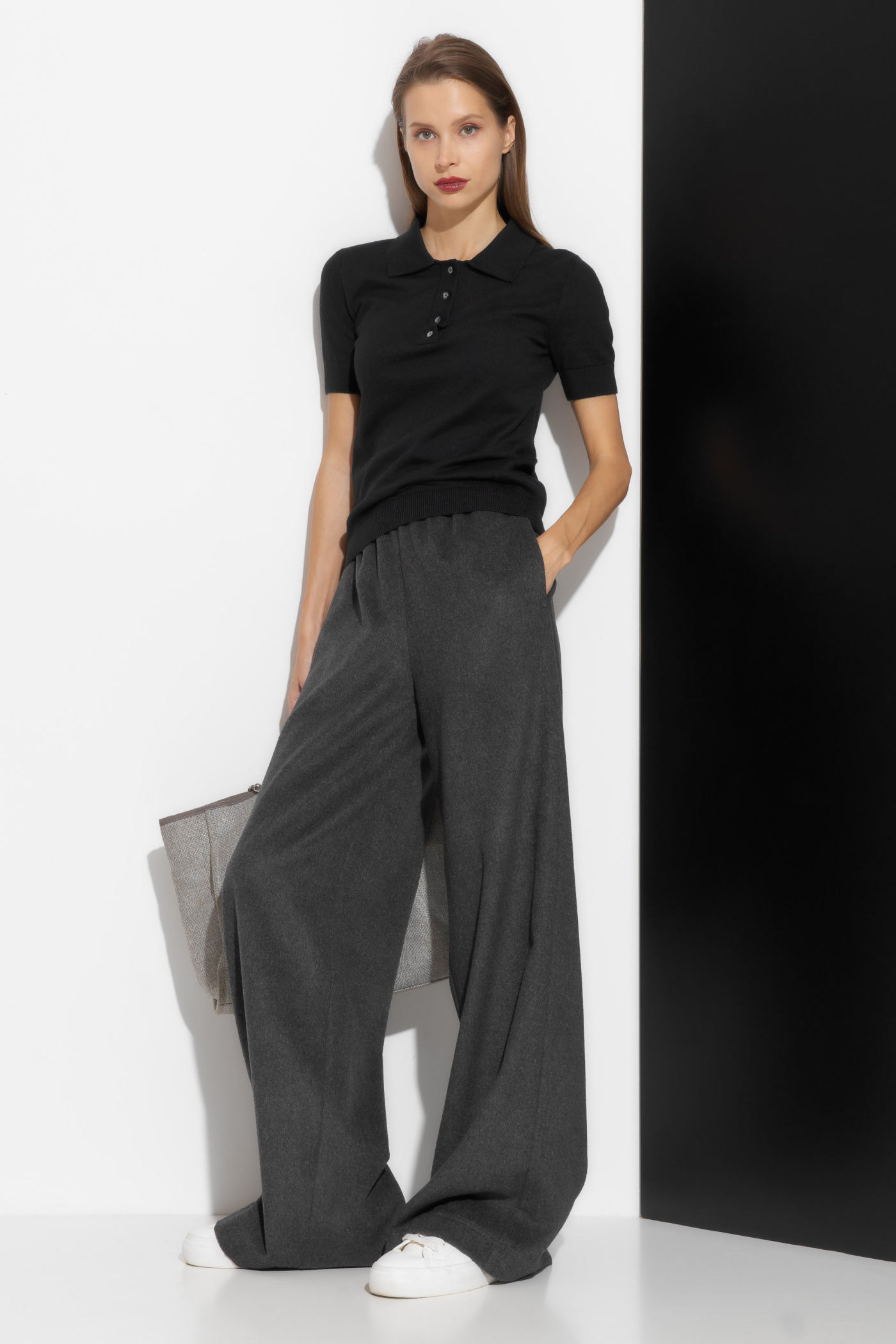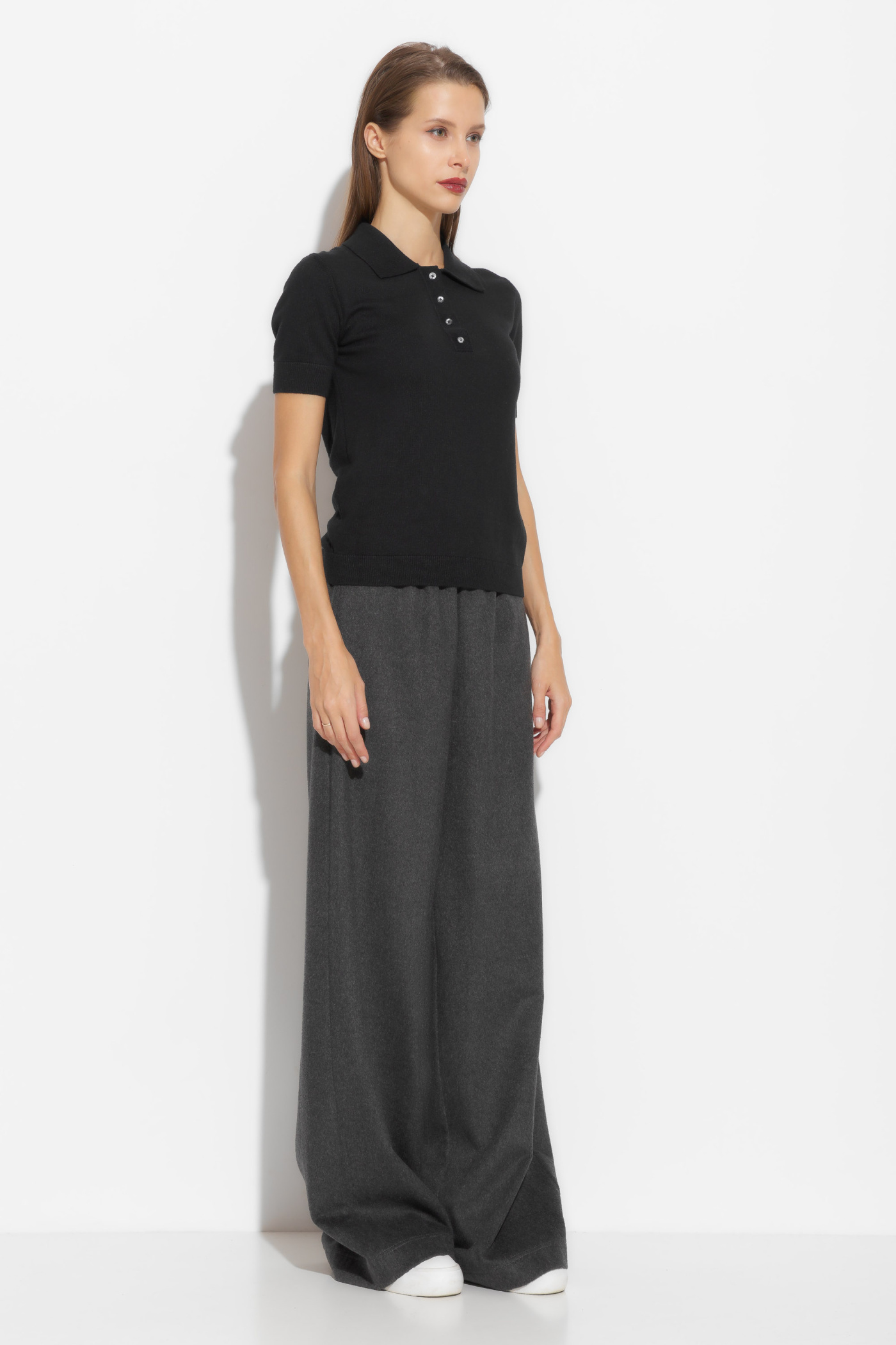 Джемпер вязаный полуприлегающего силуэта, длиной выше линии бедер. Воротник отложной. Горловина декорирована пуговицами контрастного цвета. Базовые расцветки и крой позволяют сочетать джемпер с любым типом гардероба.