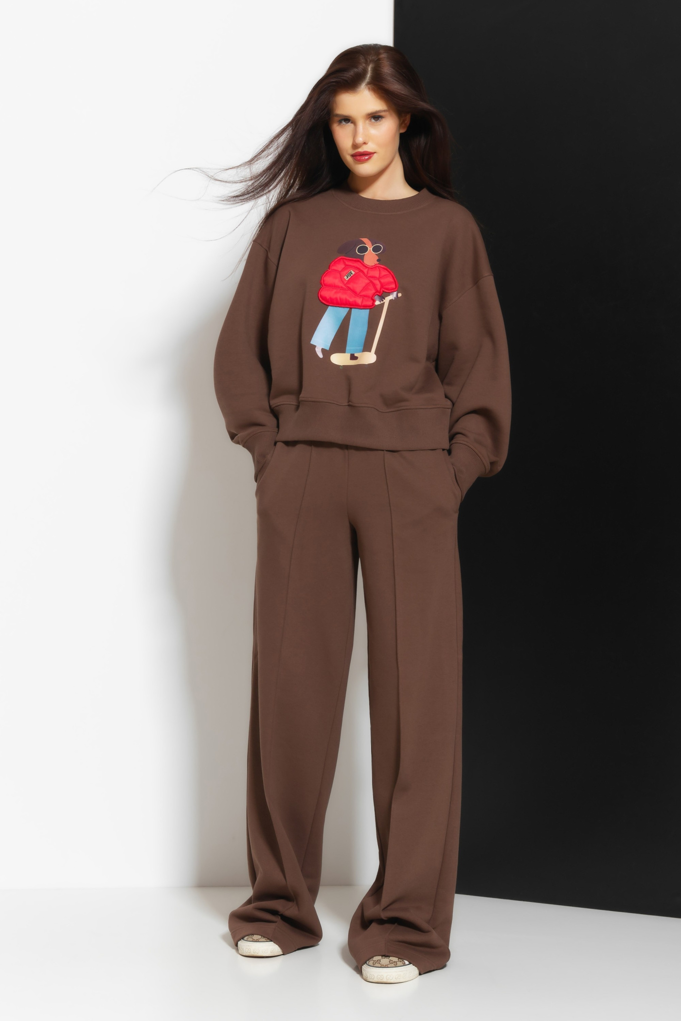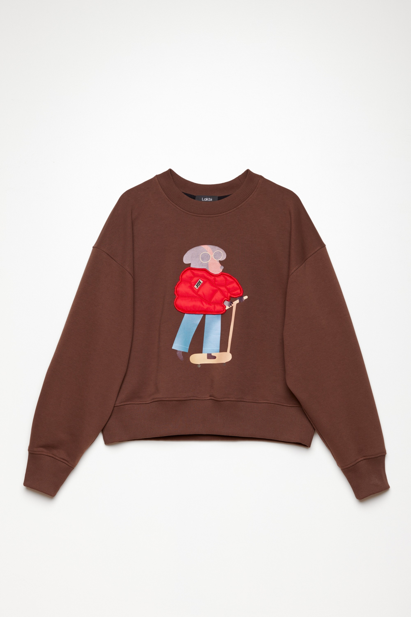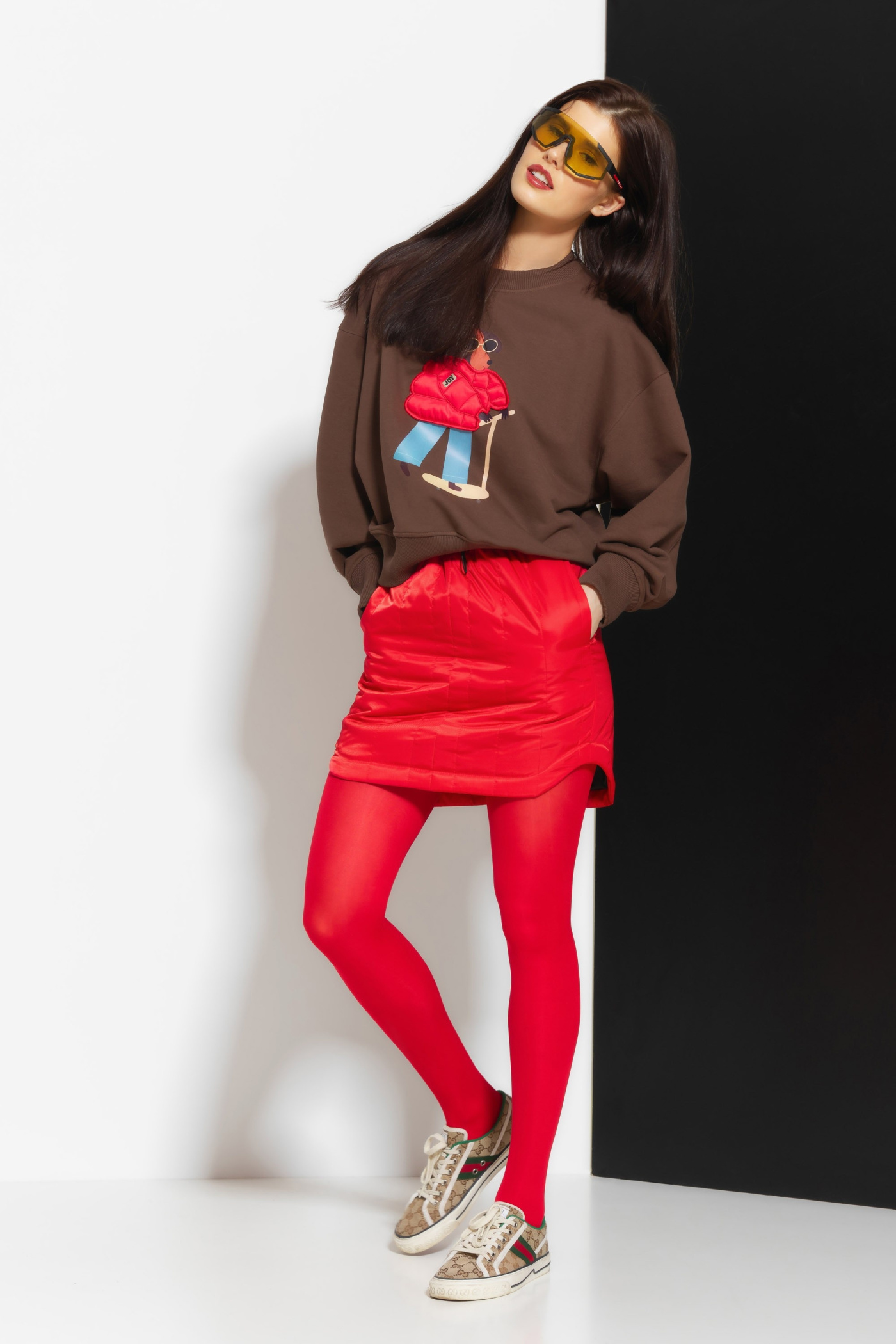Свитшот свободного кроя, длиной выше линии бедер. Округлый вырез горловины. Низ изделия и рукава на эластичных манжетах. Перед изделия декорирован стильным принтом. Комфортная модель, которая сочетается как с юбками, так и с брюками. Идеальный вариант для создания стильных ежедневных аутфитов.