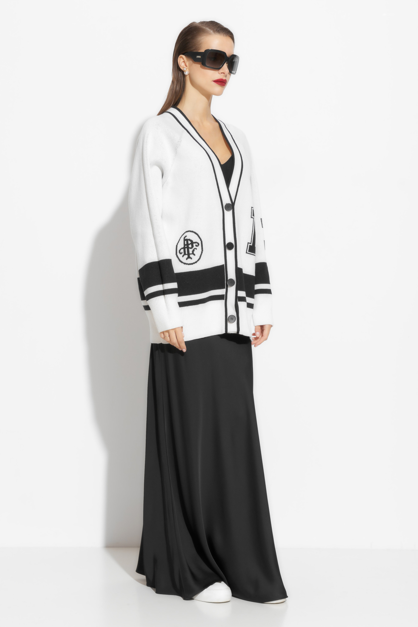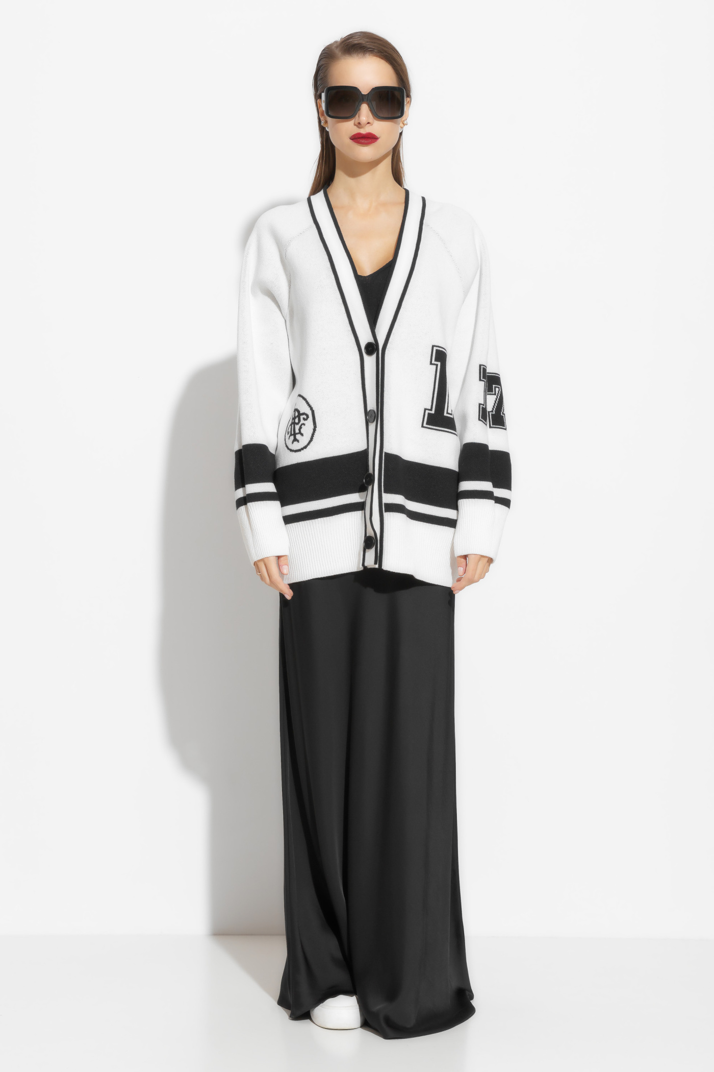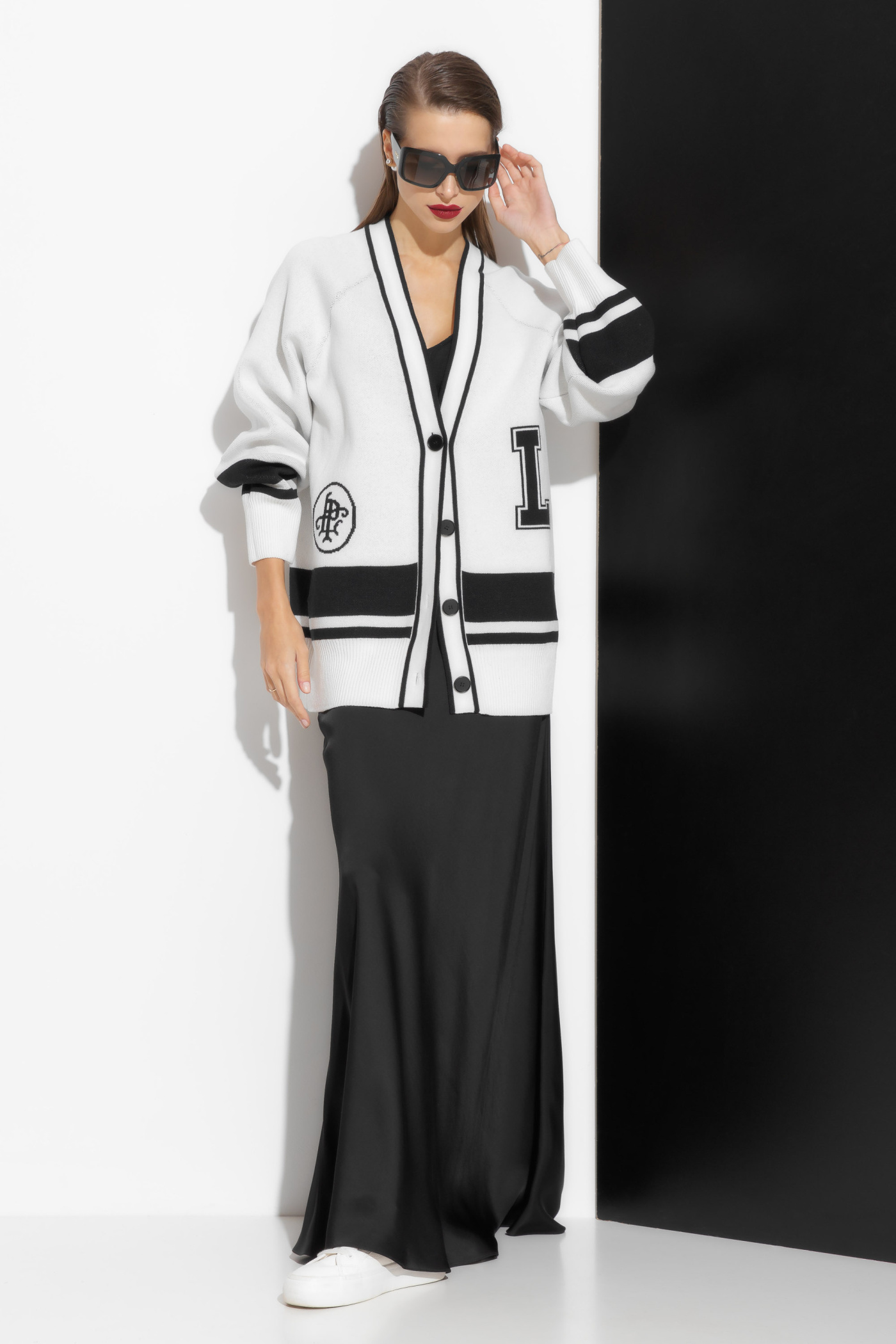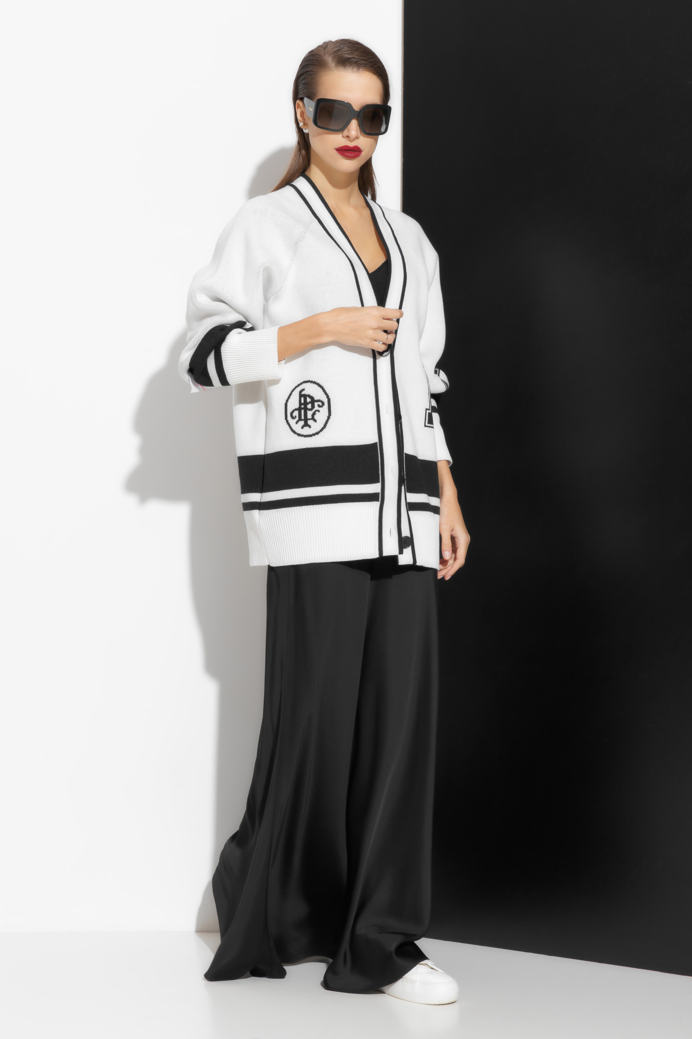 Кардинаг свободного кроя, длиной ниже линии бедер. Застегивается на пуговицы. Перед изделия и рукава декорирован акцентной вышивкой. Комфортная, теплая модель для создания уютных осенних и зимних образов.