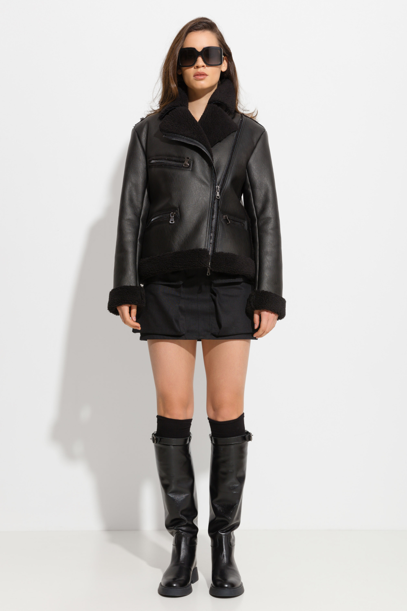Куртка из эко-кожи прямого кроя, длиной выше линии бедер. Воротник стояче отложной. Застегивается на косую молнию. Куртка с теплым мягким мехом внутри, который обеспечивает комфорт и защиту от холода. Универсальная, трендовая модель для создания стильных образов в любом стиле.