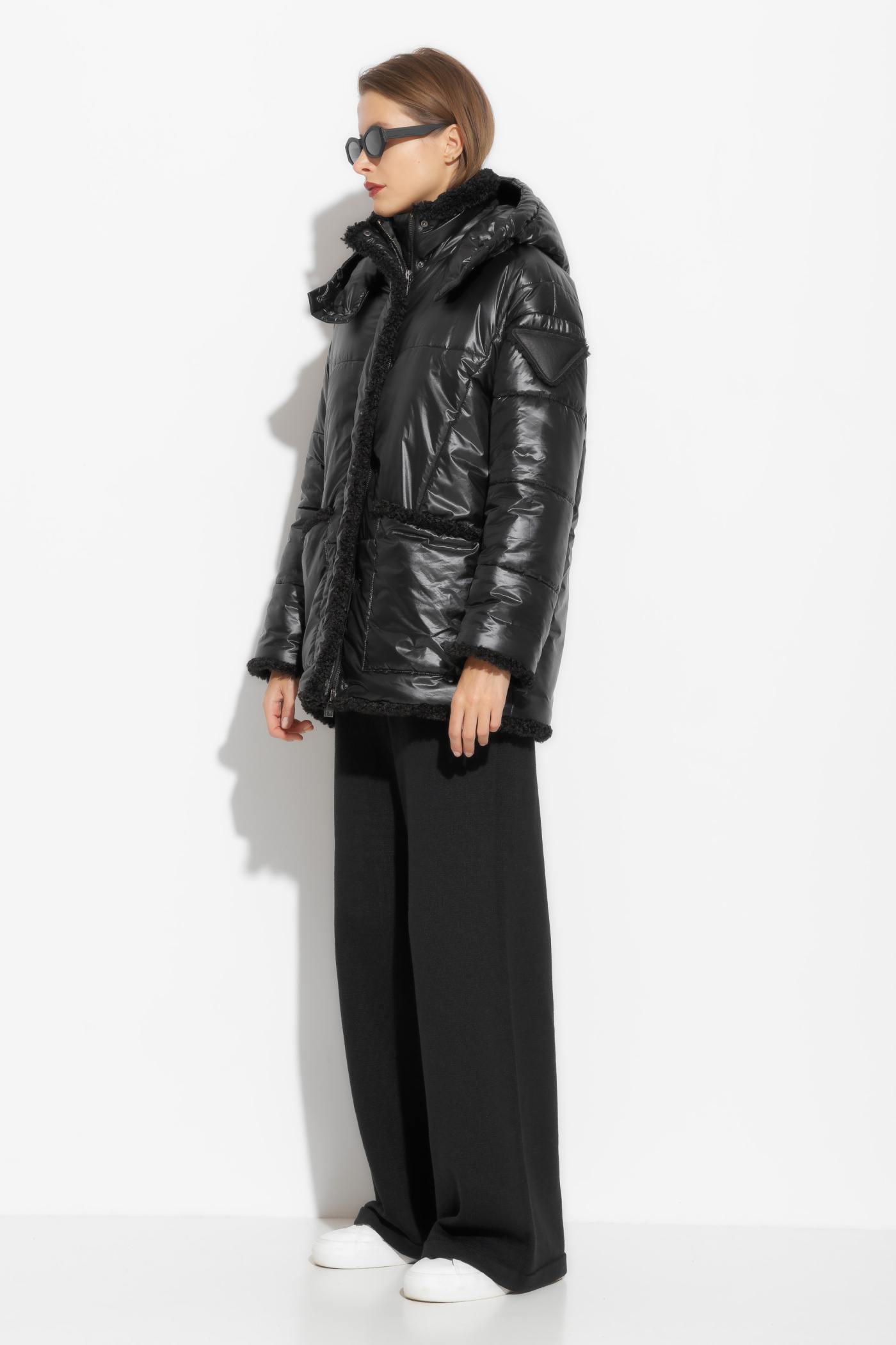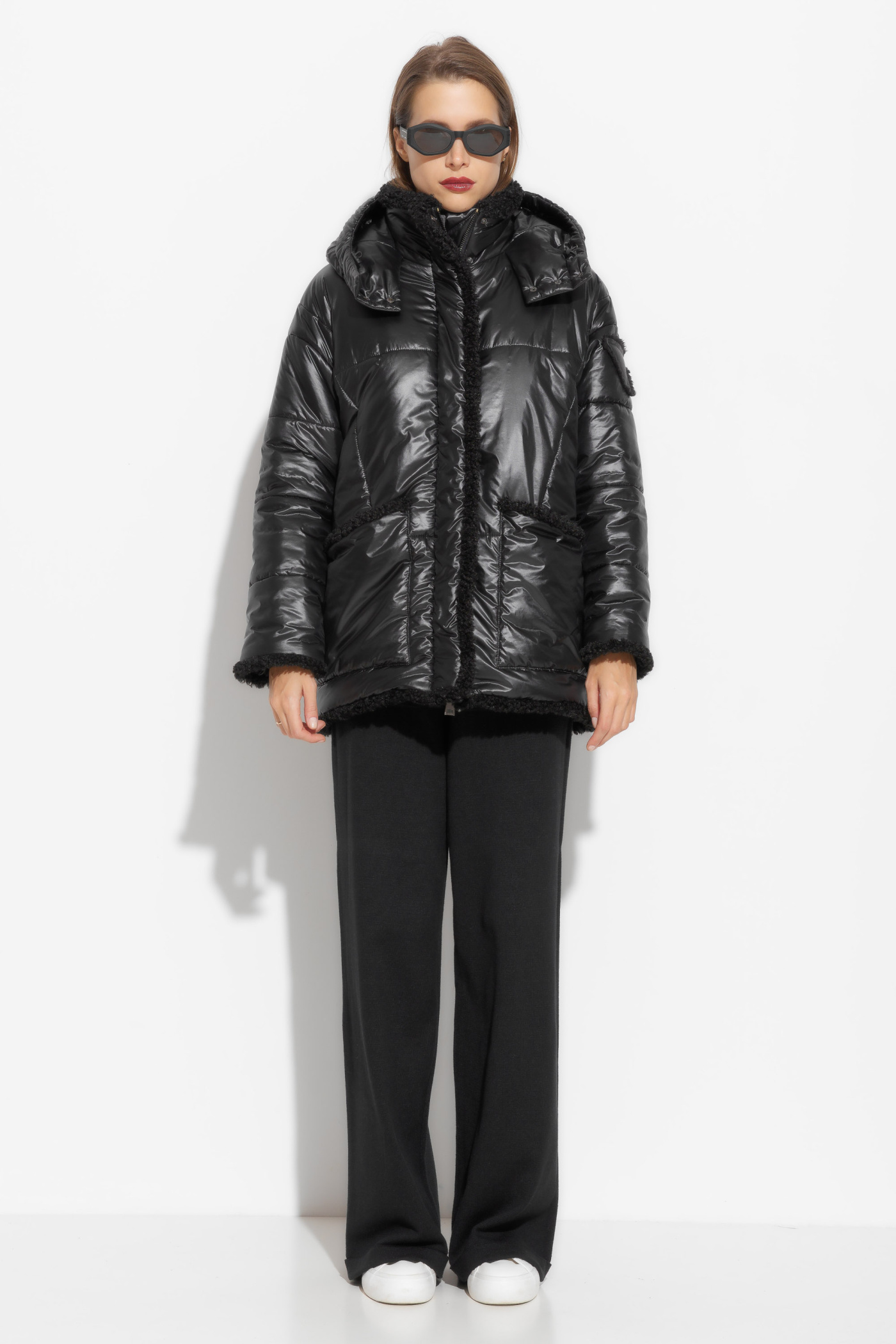 Куртка зимняя прямого кроя, длиной ниже линии бедер. Высокий воротник и капюшон защитят от зимнего мороза и ветра. Края изделия и карманы обрамлены меховой бахромой. Теплая, комфортная модель, которая идеально подойдет для создания стильных зимних образов.