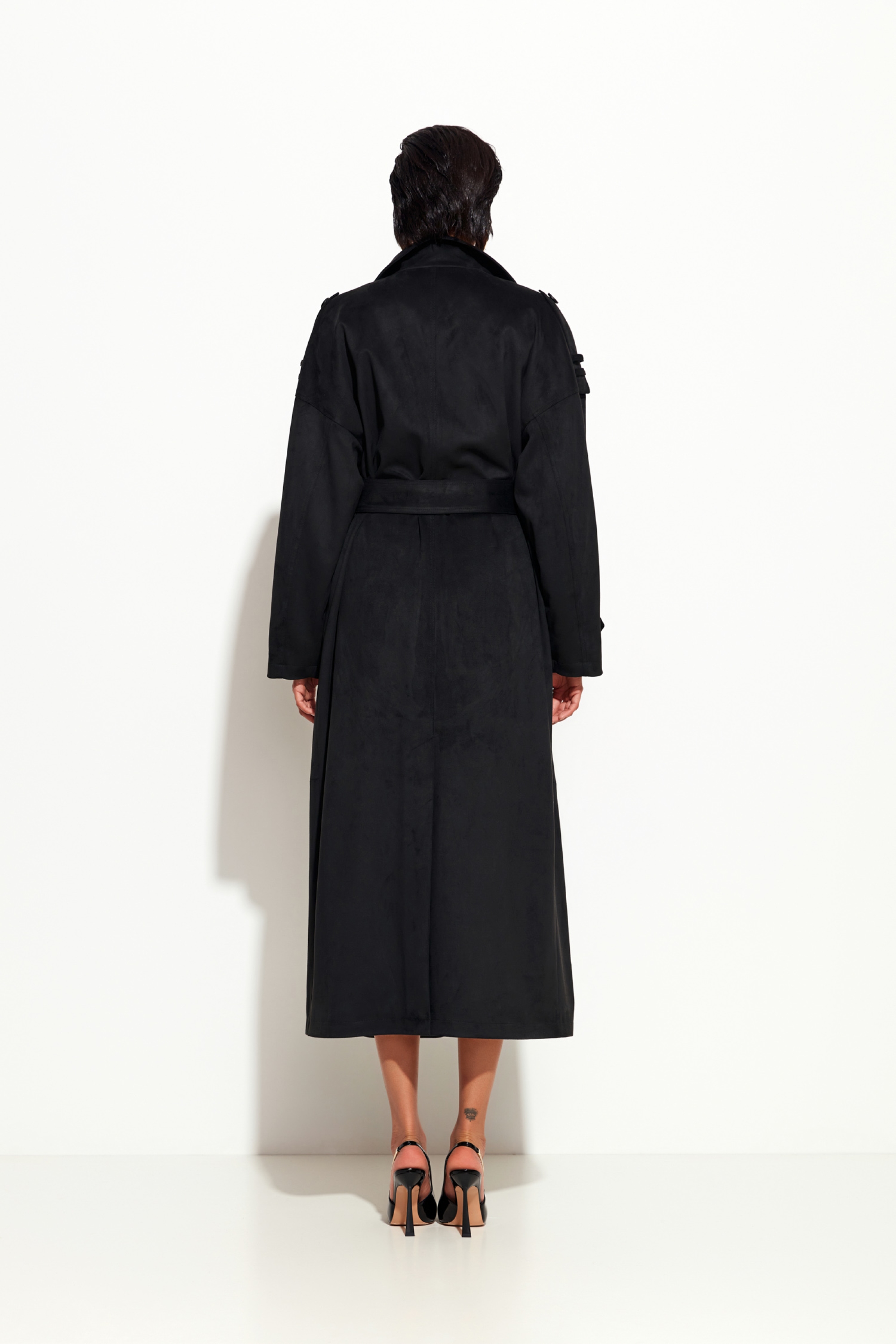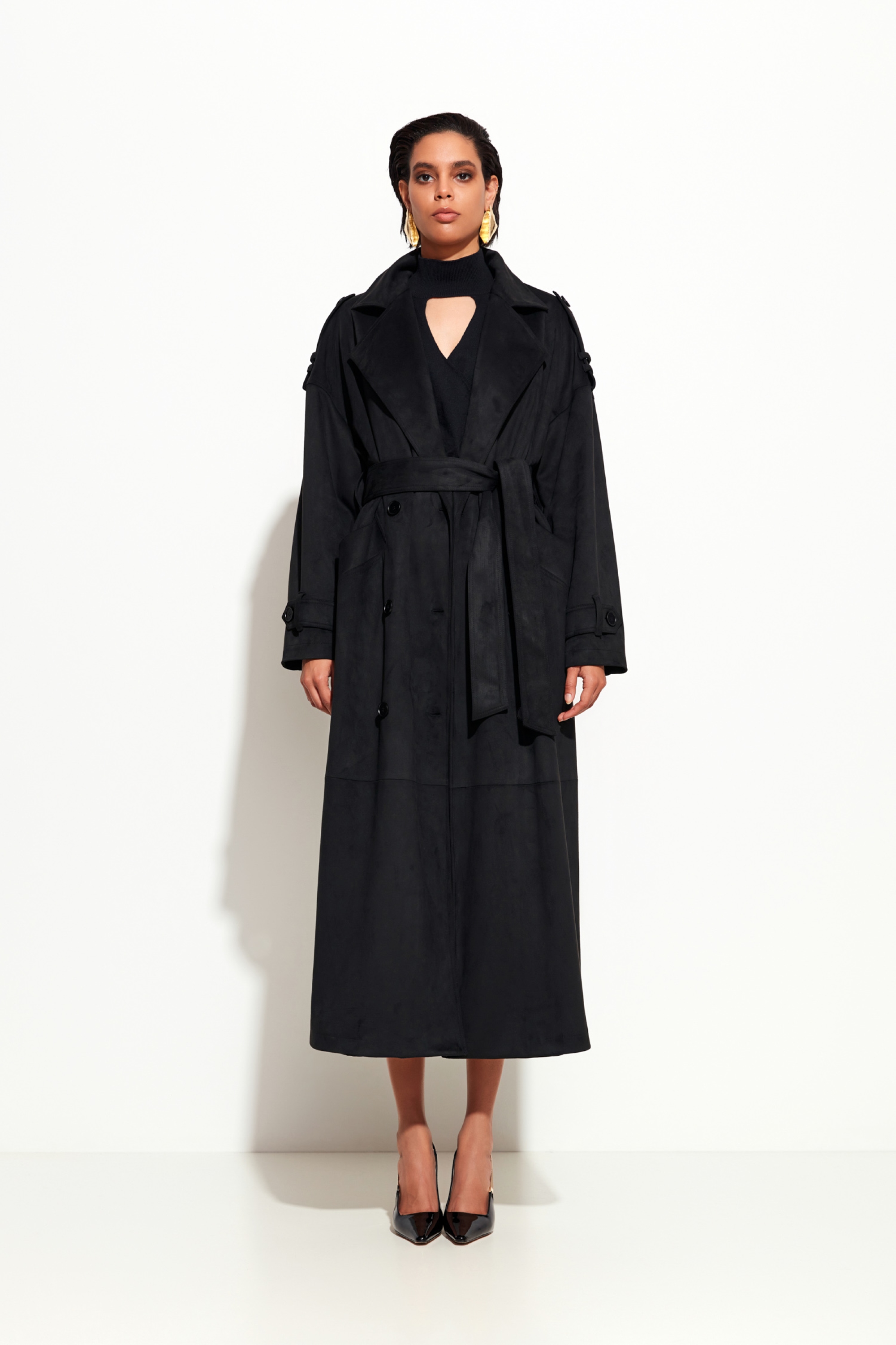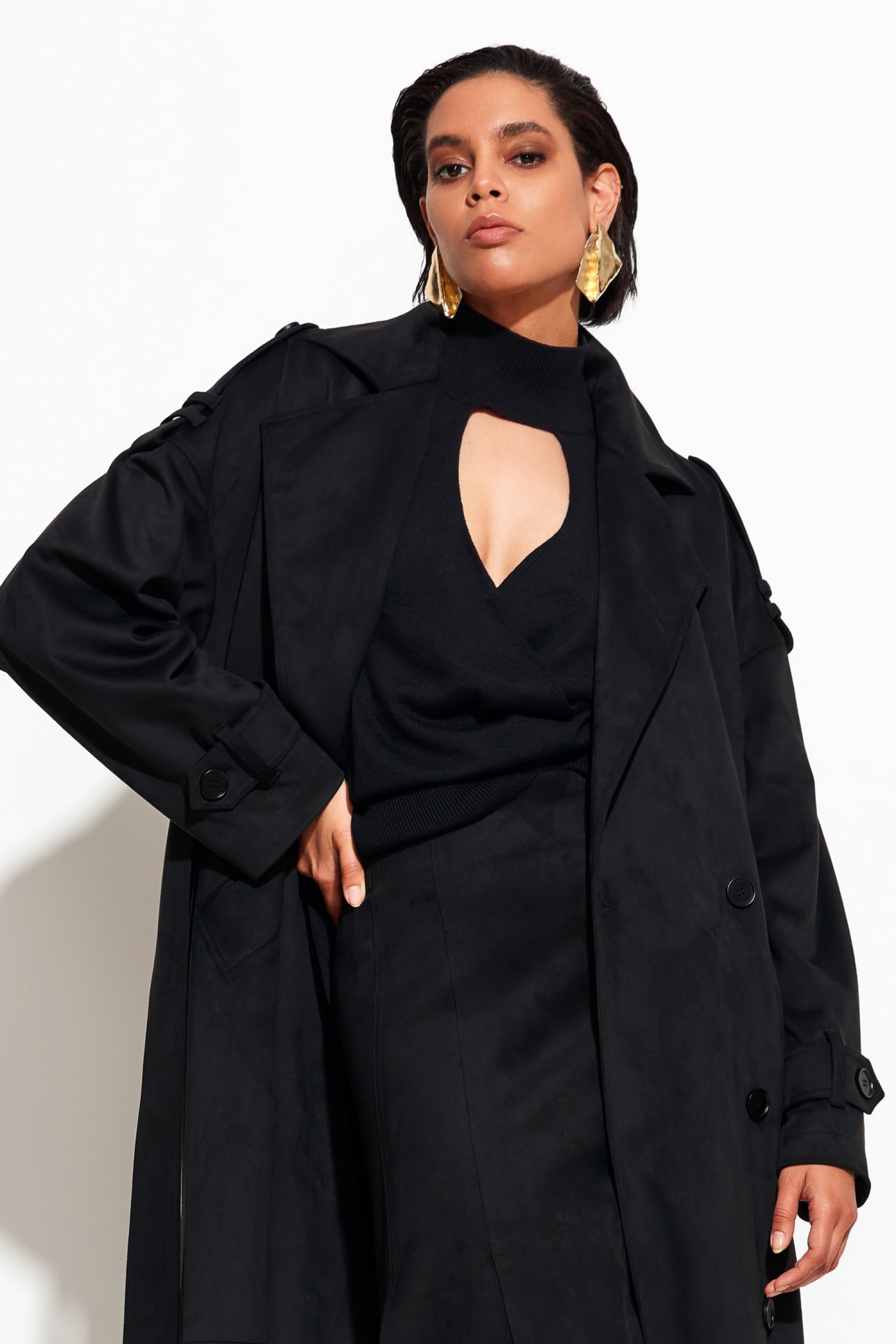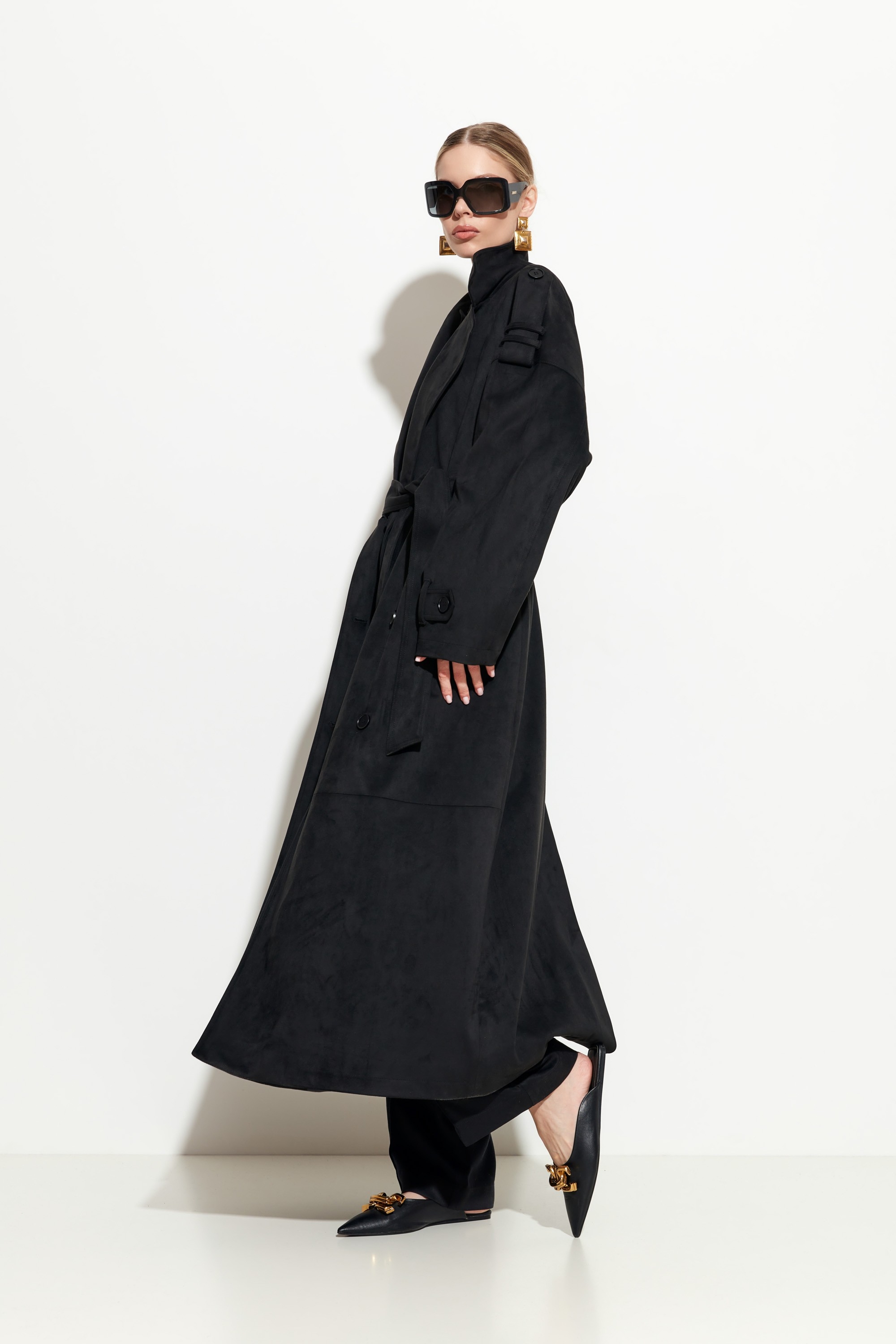 Особенности модели:Материал: ткань с замшевым эффектом — мягкая, бархатистая и комфортная на ощупь.Крой: удлинённый прямой силуэт — элегантность и практичность в одном.Детали: аккуратный воротник, удобные карманы, лаконичная застёжка.Цвет: классический чёрный — универсален и всегда актуален.Сезонность: идеально подходит для холодного осеннего периода — тепло и комфортно.