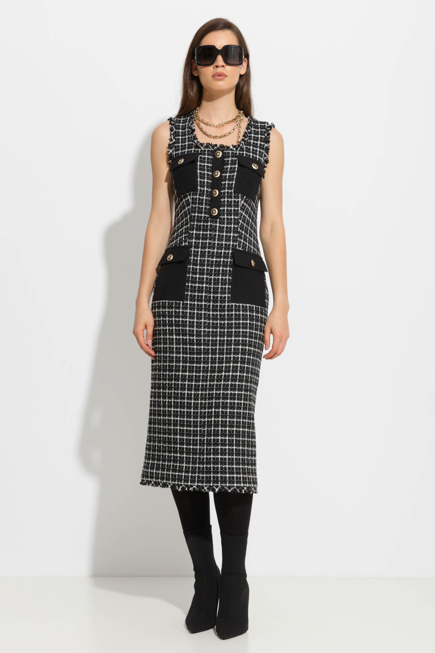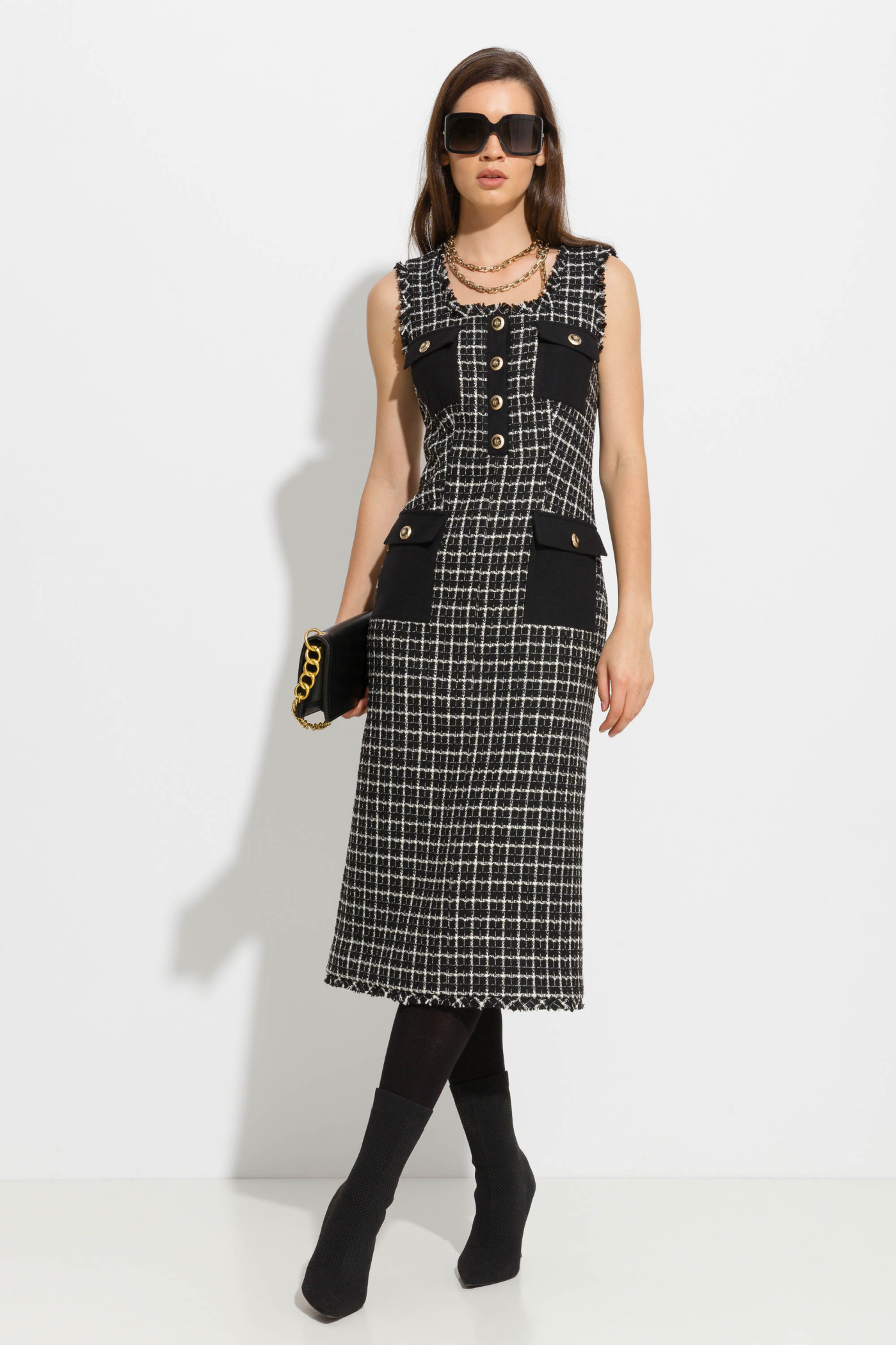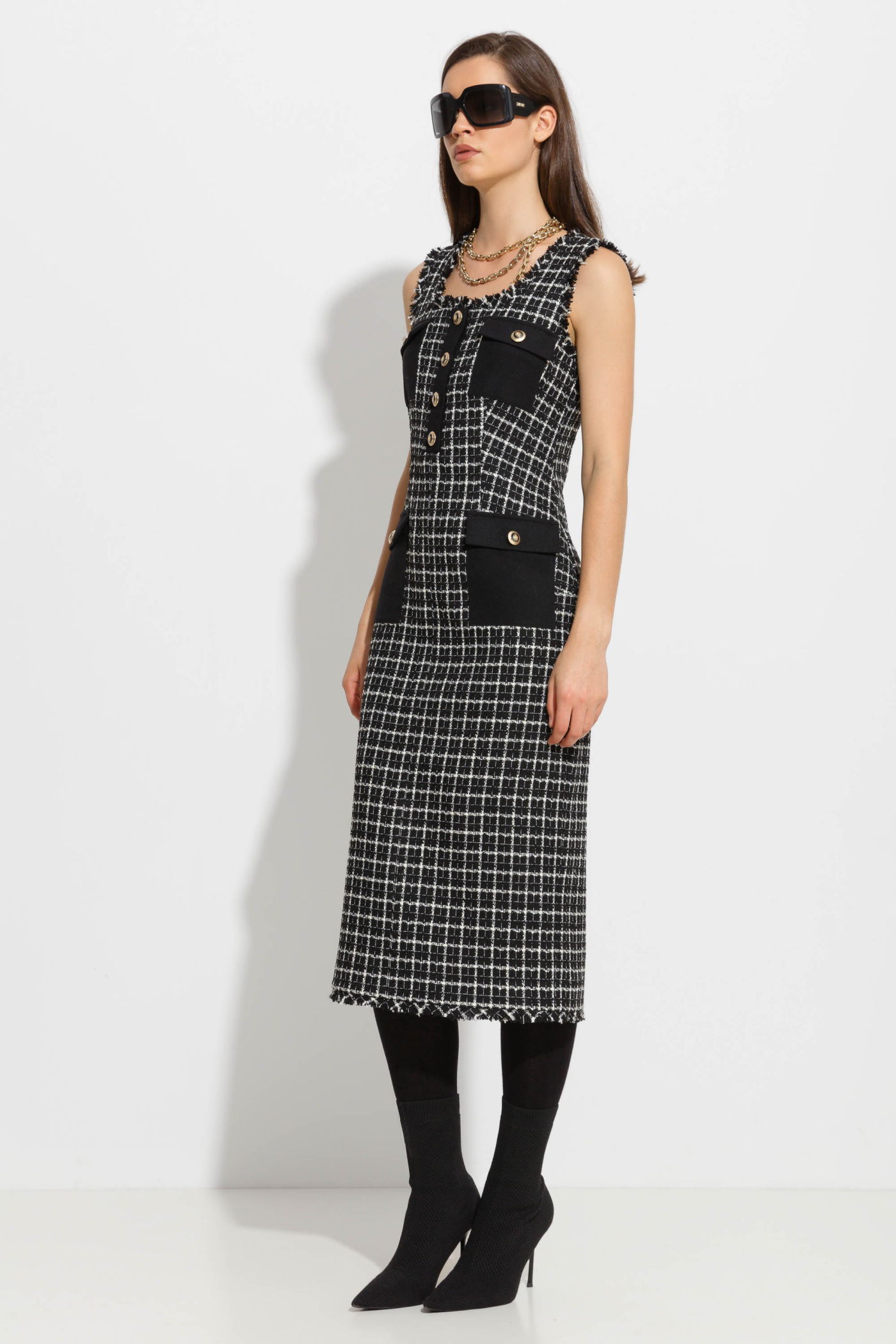 Платье миди твидовое с карманами