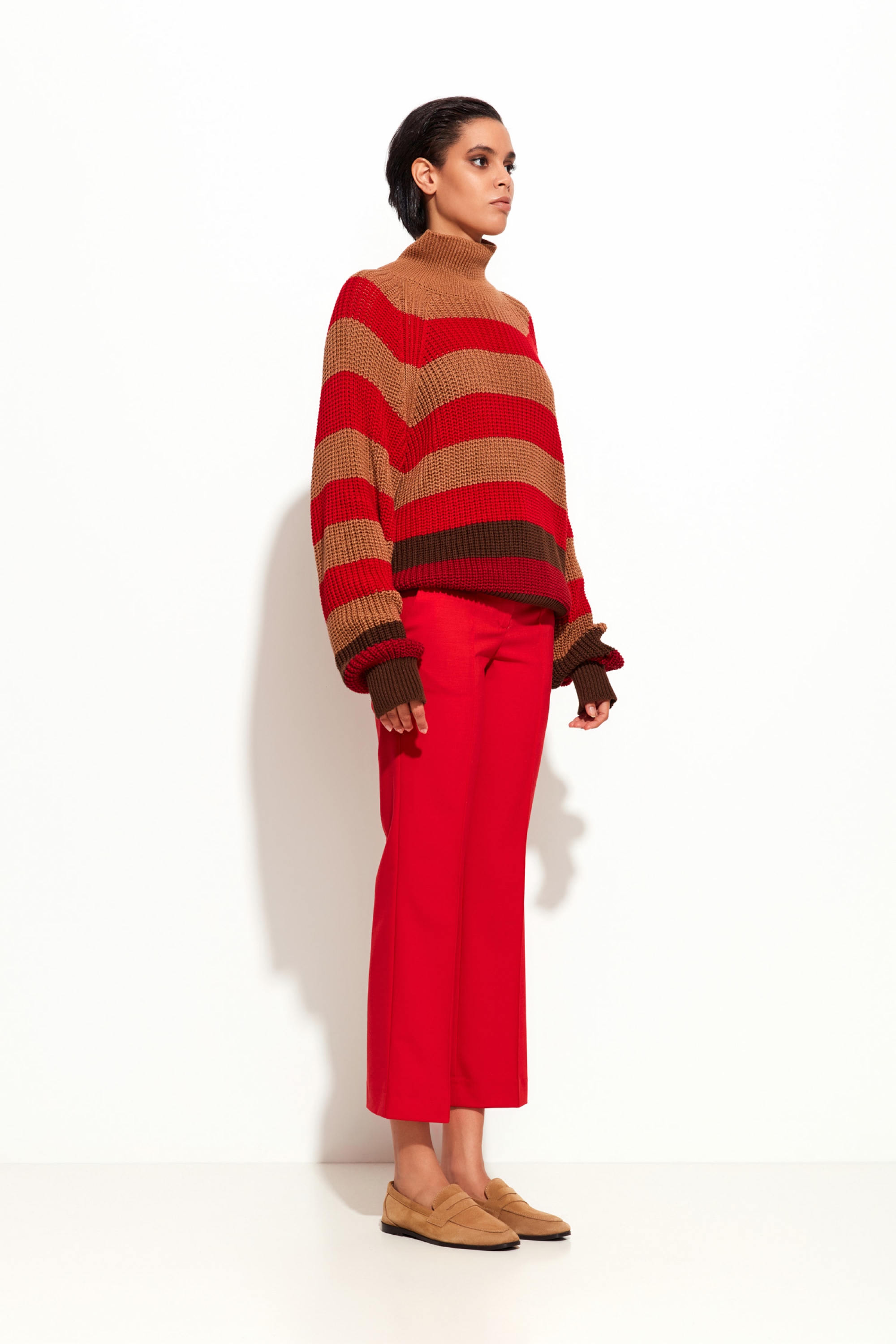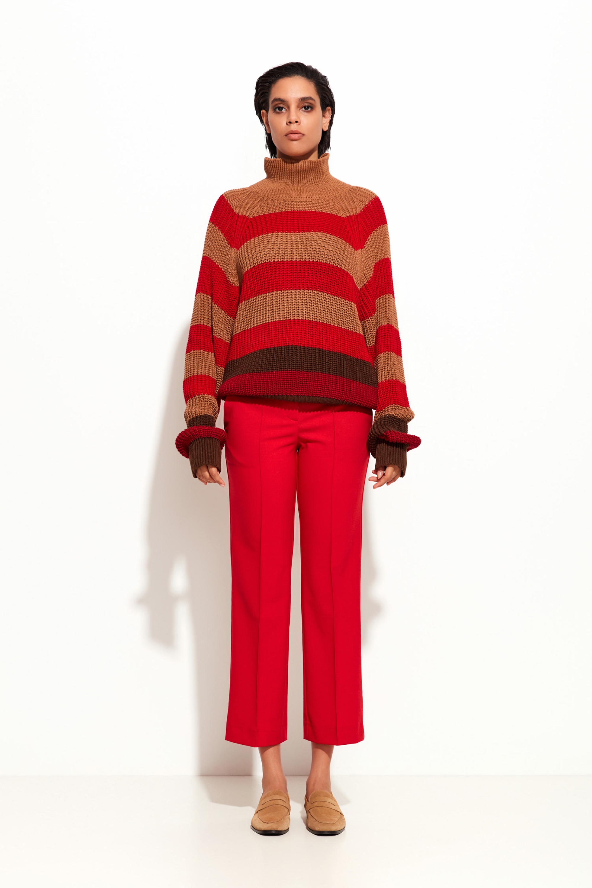 Свитер в горизонтальную полоску Lakbi из коллекции осень-зима 2025/26 — это модная и комфортная модель с выразительным дизайном в широкой полоску. Выполненный из мягкой и тёплой пряжи, он обеспечивает тактильный комфорт и отлично сохраняет тепло в прохладную погоду. Свободный крой и удобная посадка делают свитер универсальным решением для повседневного гардероба, а стильная полоска добавляет образу динамичности и характерного шарма.
