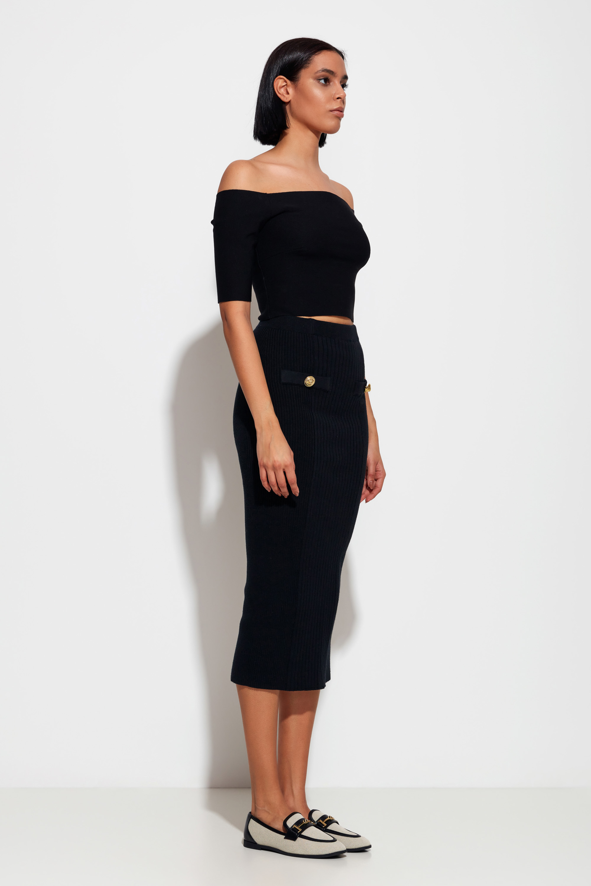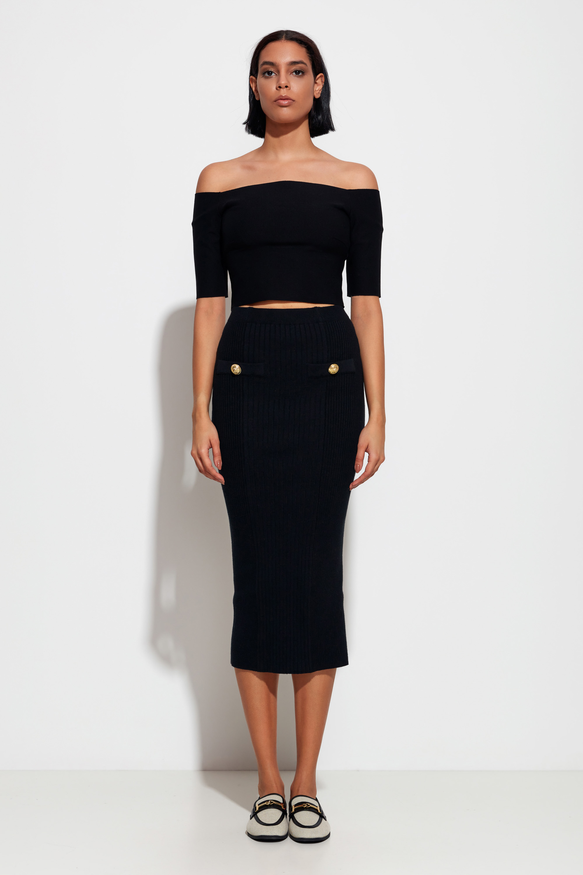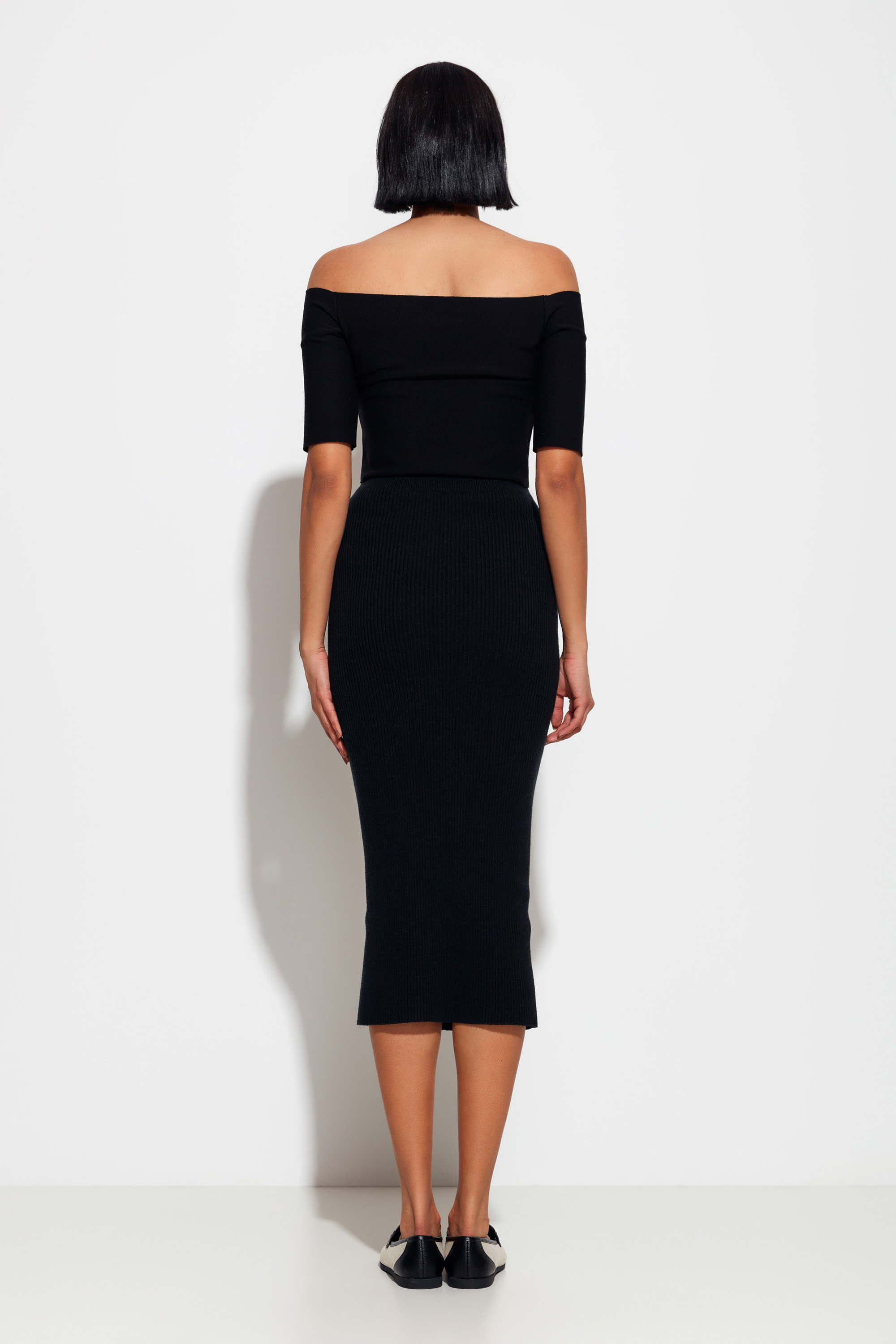 Юбка Lakbi 55131 — чёрная вязаная классика в актуальной длине миди.