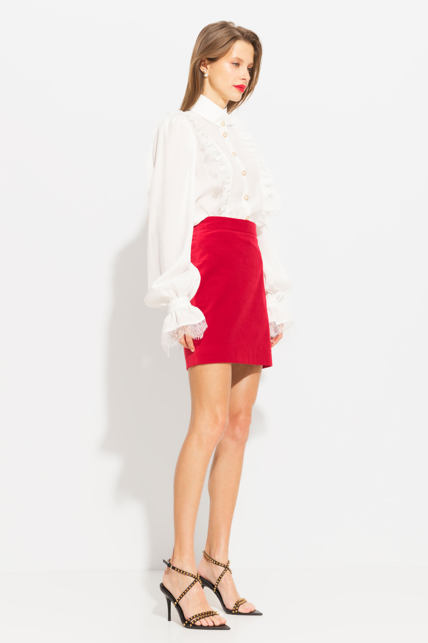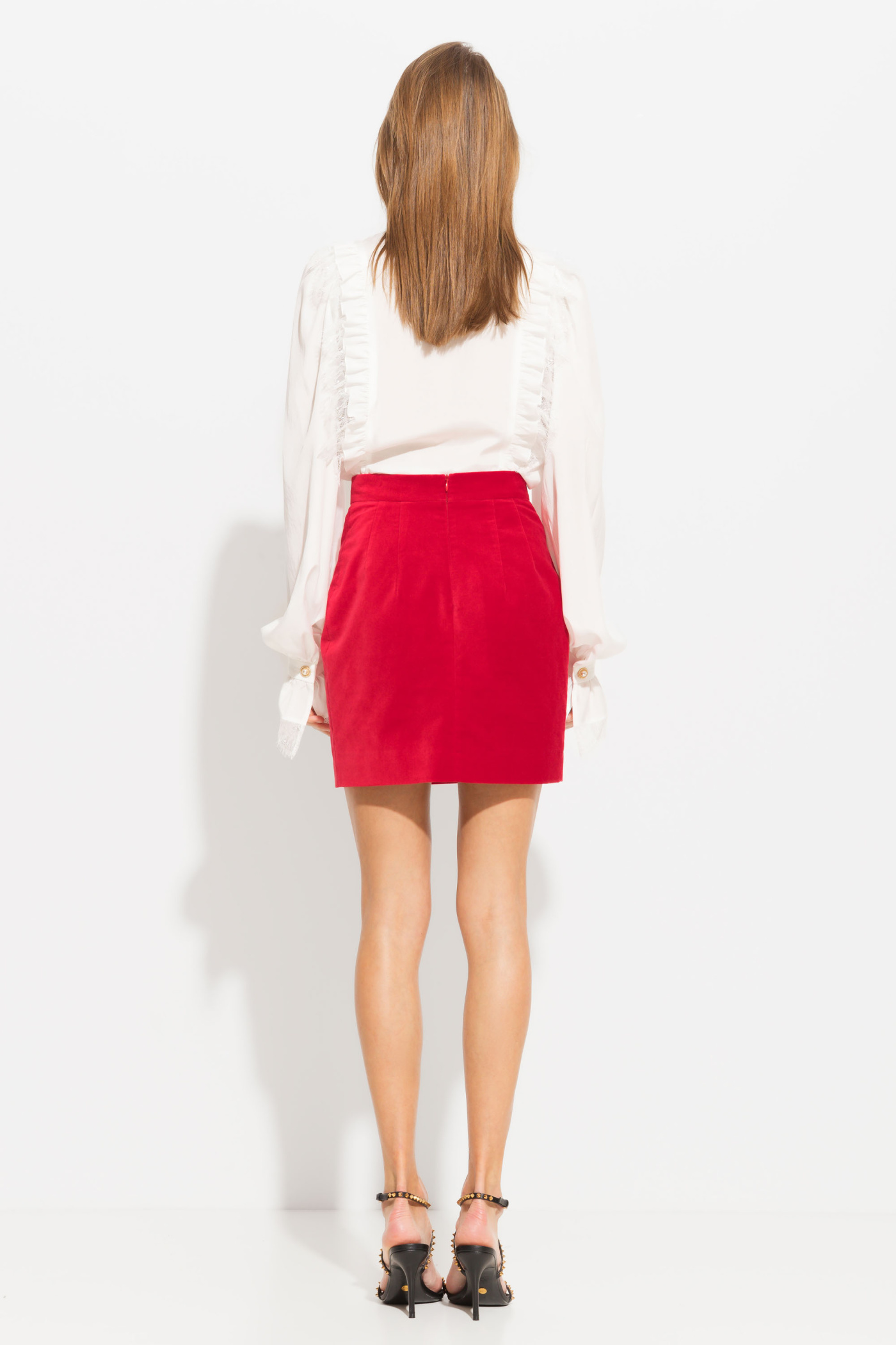 Юбка мини из бархата. Посадка средняя. Застегивается на потайную молнию сзади. Базовая модель, которая сделает любой образ незаурядным. Идеально подойдет как для неофициальных мероприятий, так и для ежедневных образов.