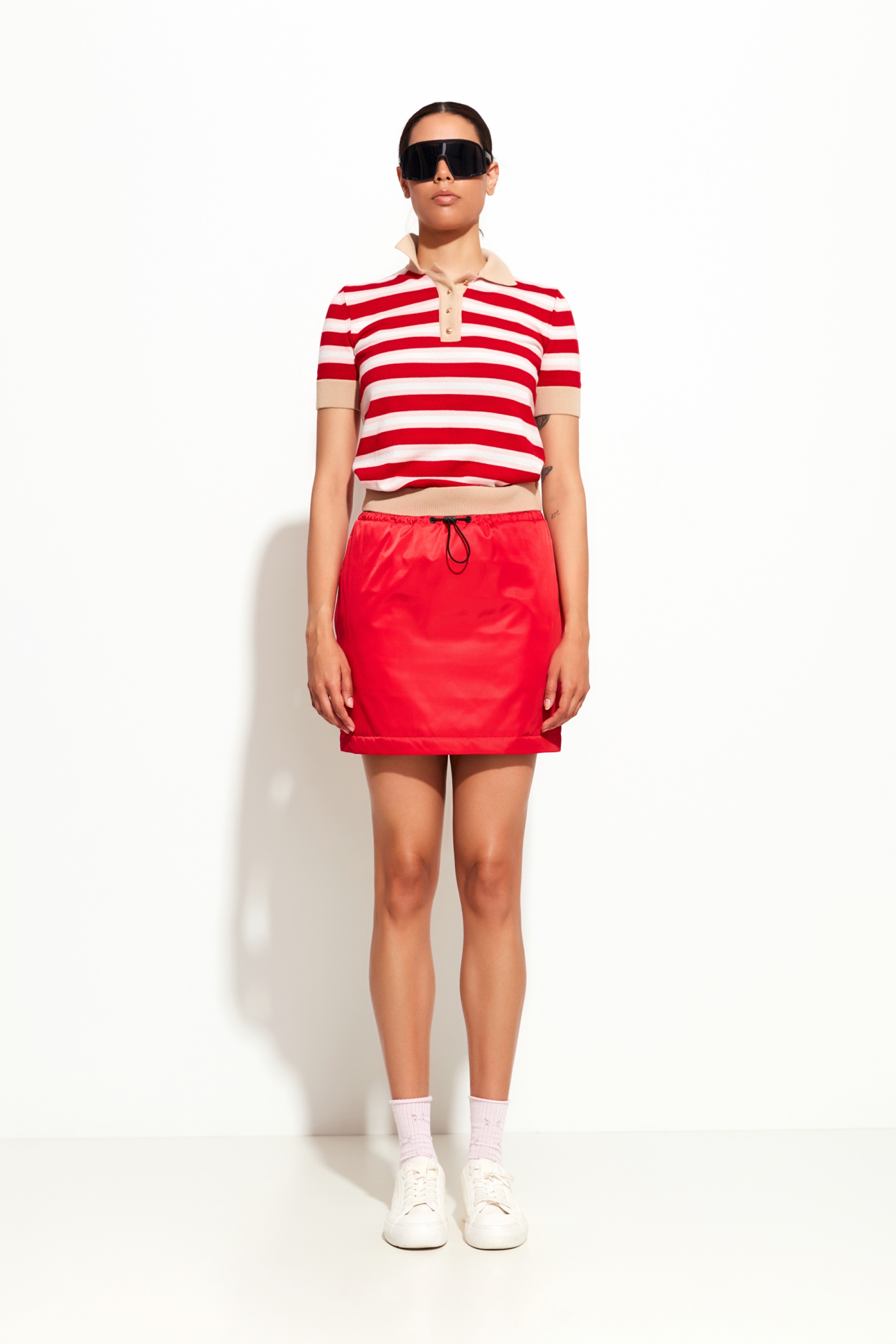 Цвет: насыщенный красный — акцент и яркий акцент в луке.