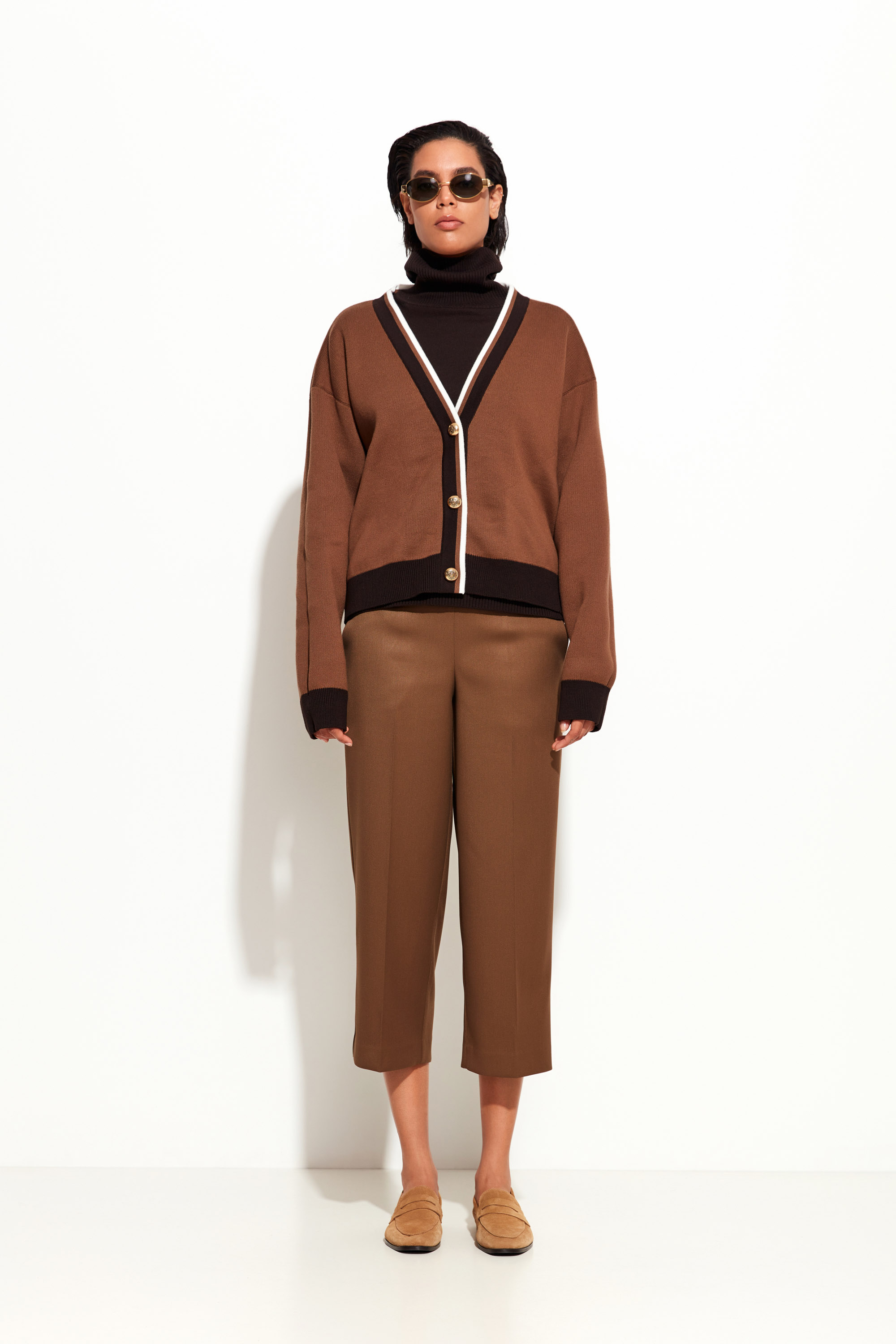 Теплый вязаный жакет Lakbi — это идеальное сочетание комфорта и элегантности, созданное для осенне-зимнего гардероба. Модель выполнена из мягкой и теплой пряжи, обладающей приятной фактурой и хорошей терморегуляцией. Жакет отличается продуманным свободным кроем и лаконичным дизайном, что делает его универсальной базовой вещью для создания повседневных и деловых образов.
