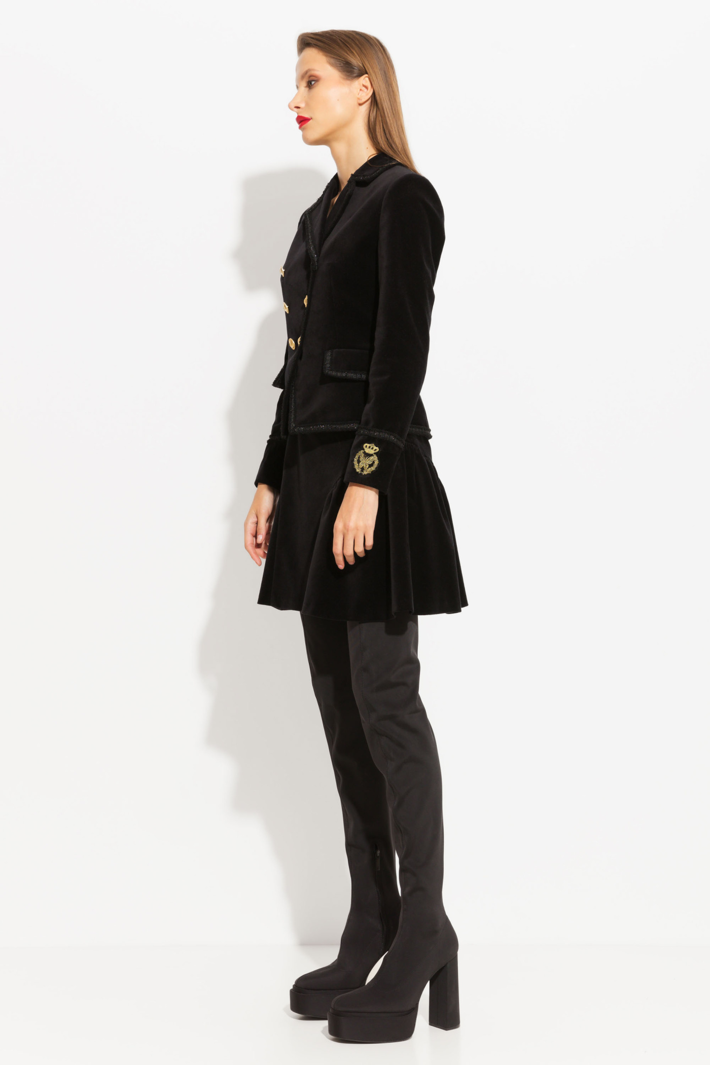 Жакет из бархата с нашивкой на рукаве
