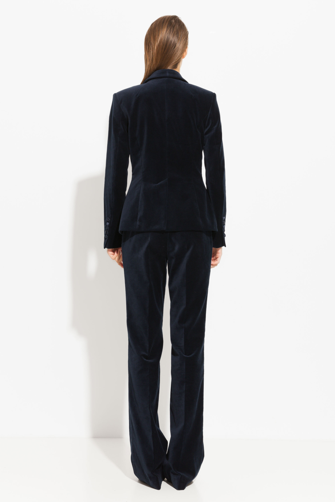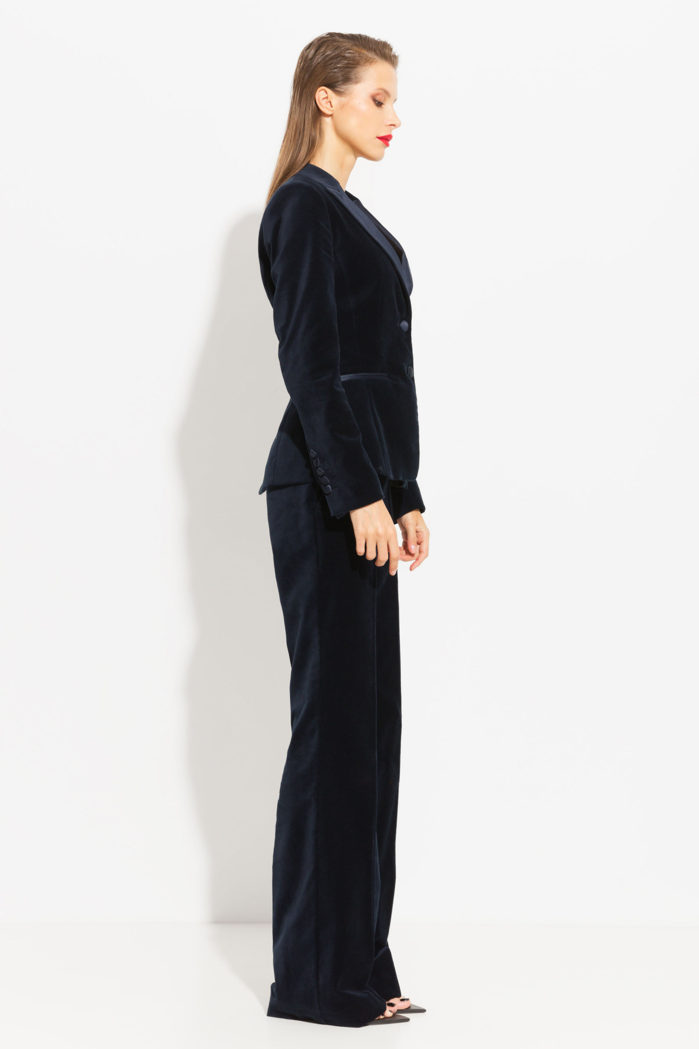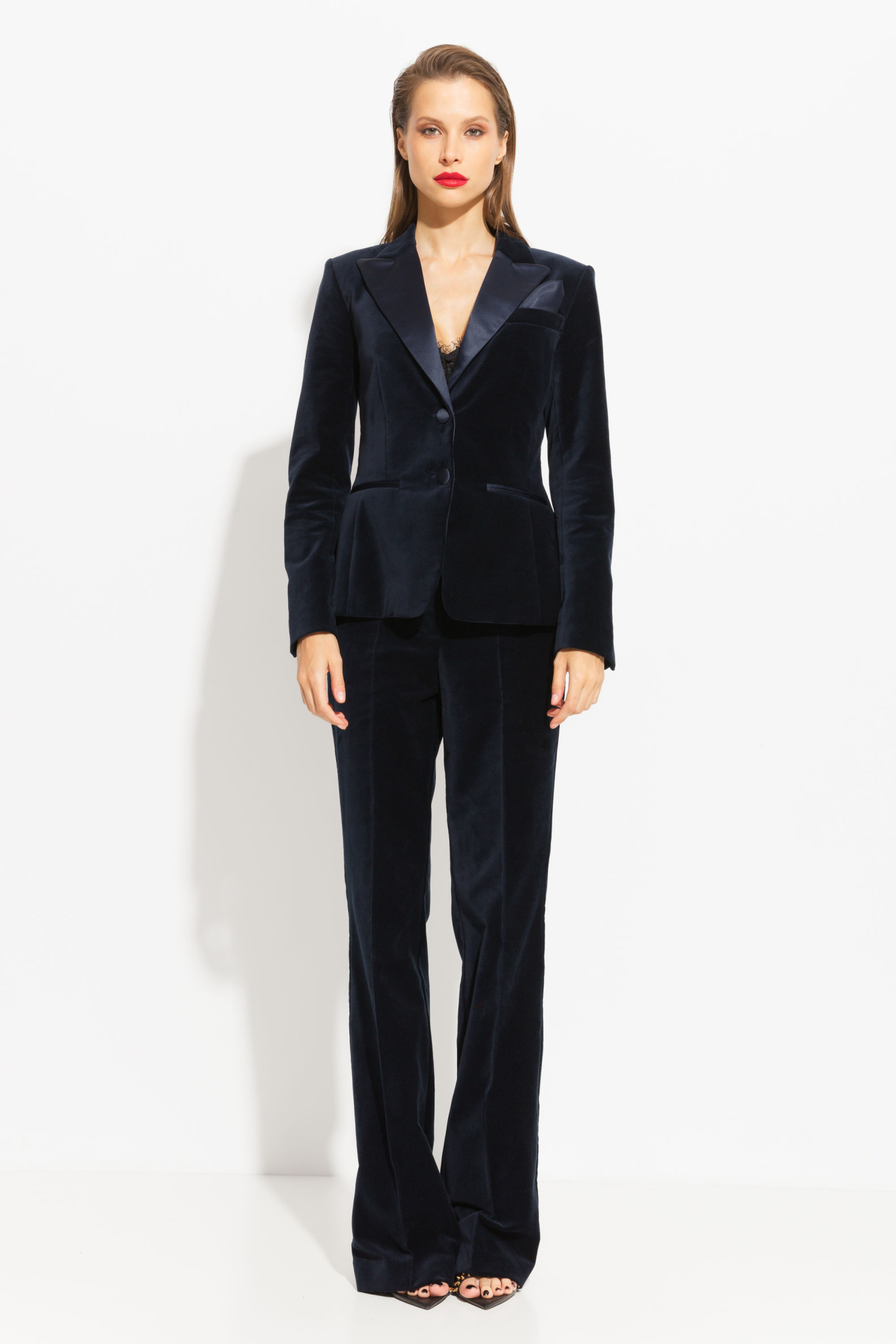 Жакет бархатный полуприлегающего силуэта, длиной до середины линии бедер. Воротник отложной. На груди накладной карман с платочком из контрастной ткани. Эффектная модель, которая подойдет как для особых случаев, так и для создания стильных ежедневных образов.