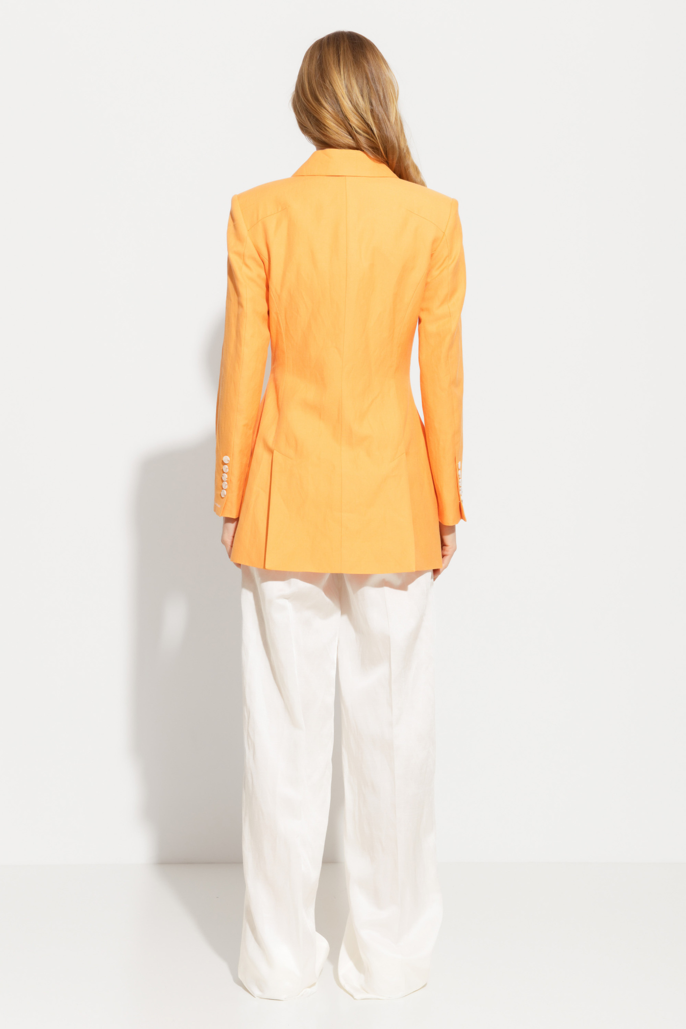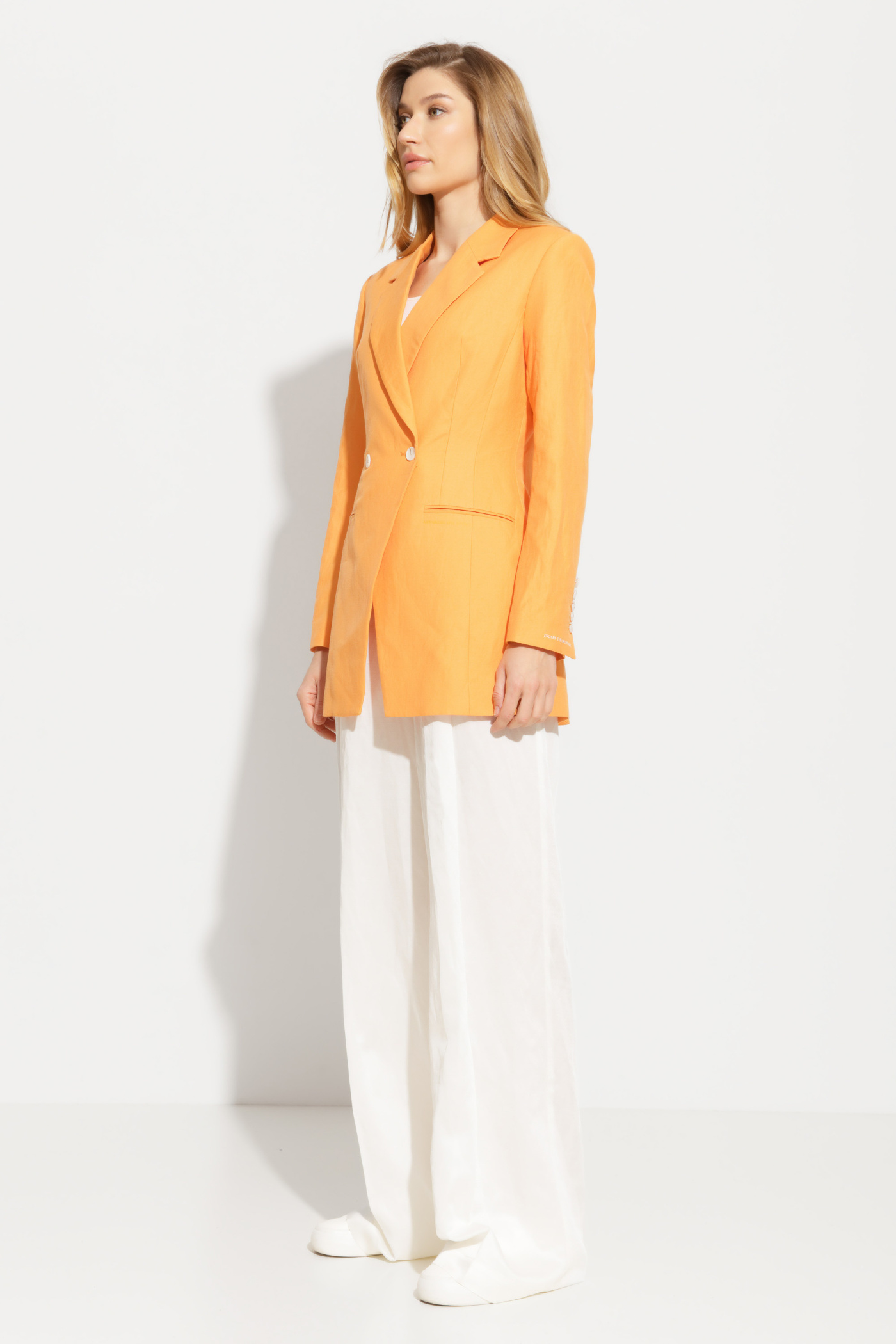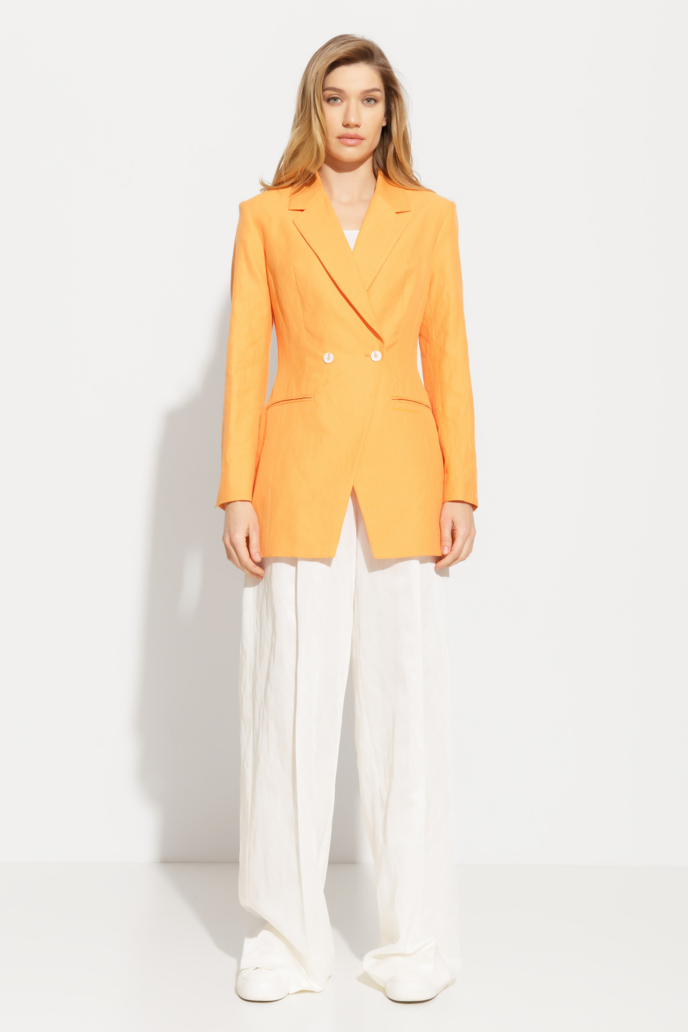 Жакет полуприлегающего силуэта и длиной ниже линии бедер, что создает идеальную посадку и подчеркивает фигуру. Рельефные швы на передних частях жакета, талиевые выточки и прорезные карманы в рамку делают его еще более стильным и практичным. Отложной воротник придает жакету завершенный вид. Жакет на подкладке с плечевыми накладками - это гарантия долговечности и удобства при носке. Носите его на работе или на вечеринке - он станет вашим надежным спутником и придаст вашему образу элегантности и стиля.
