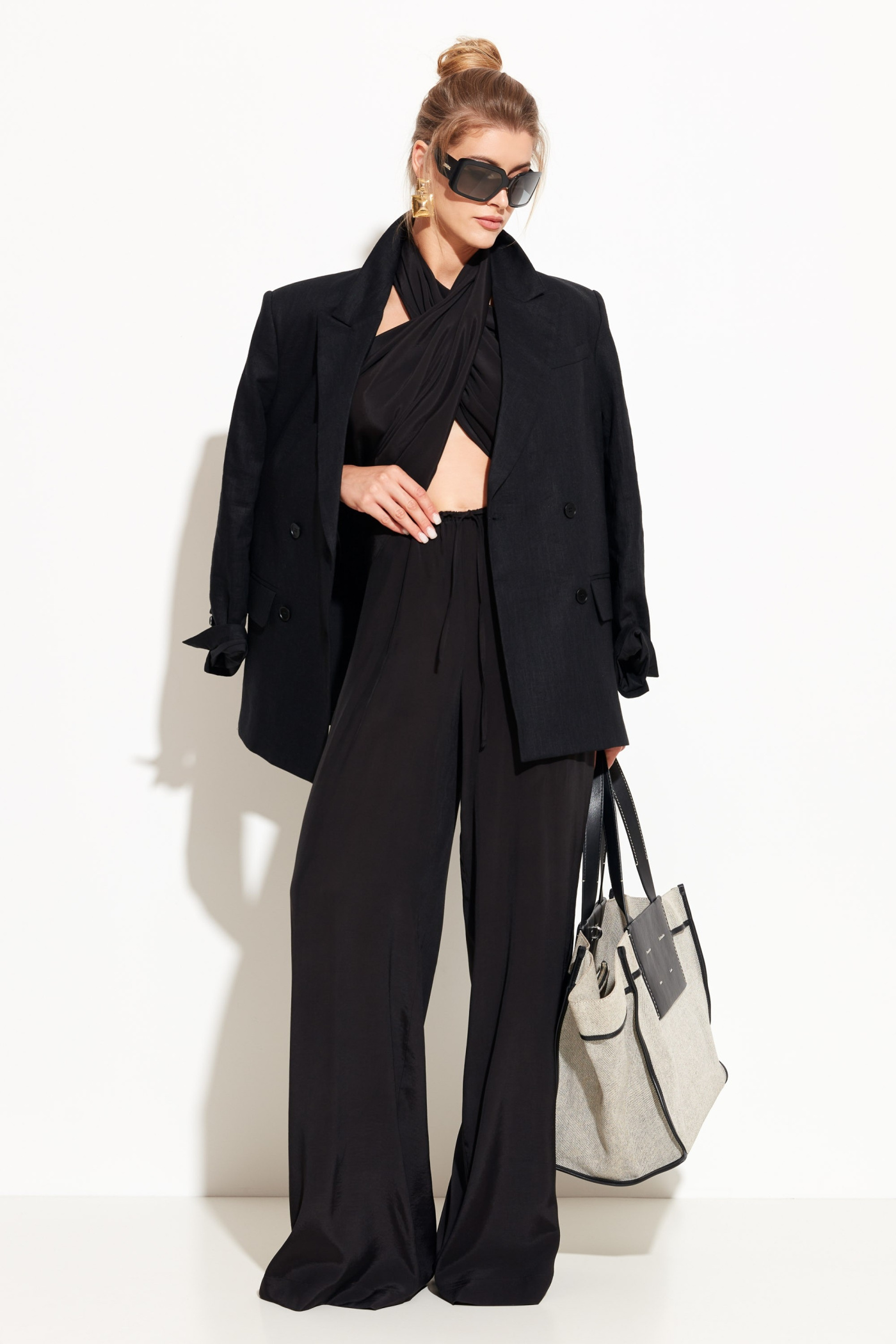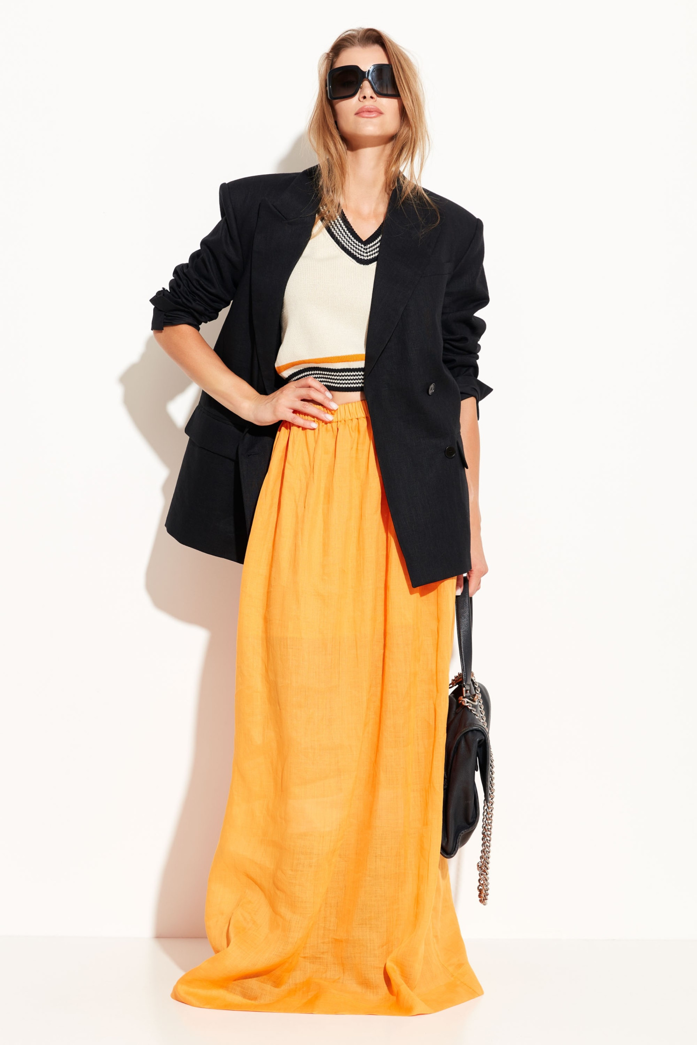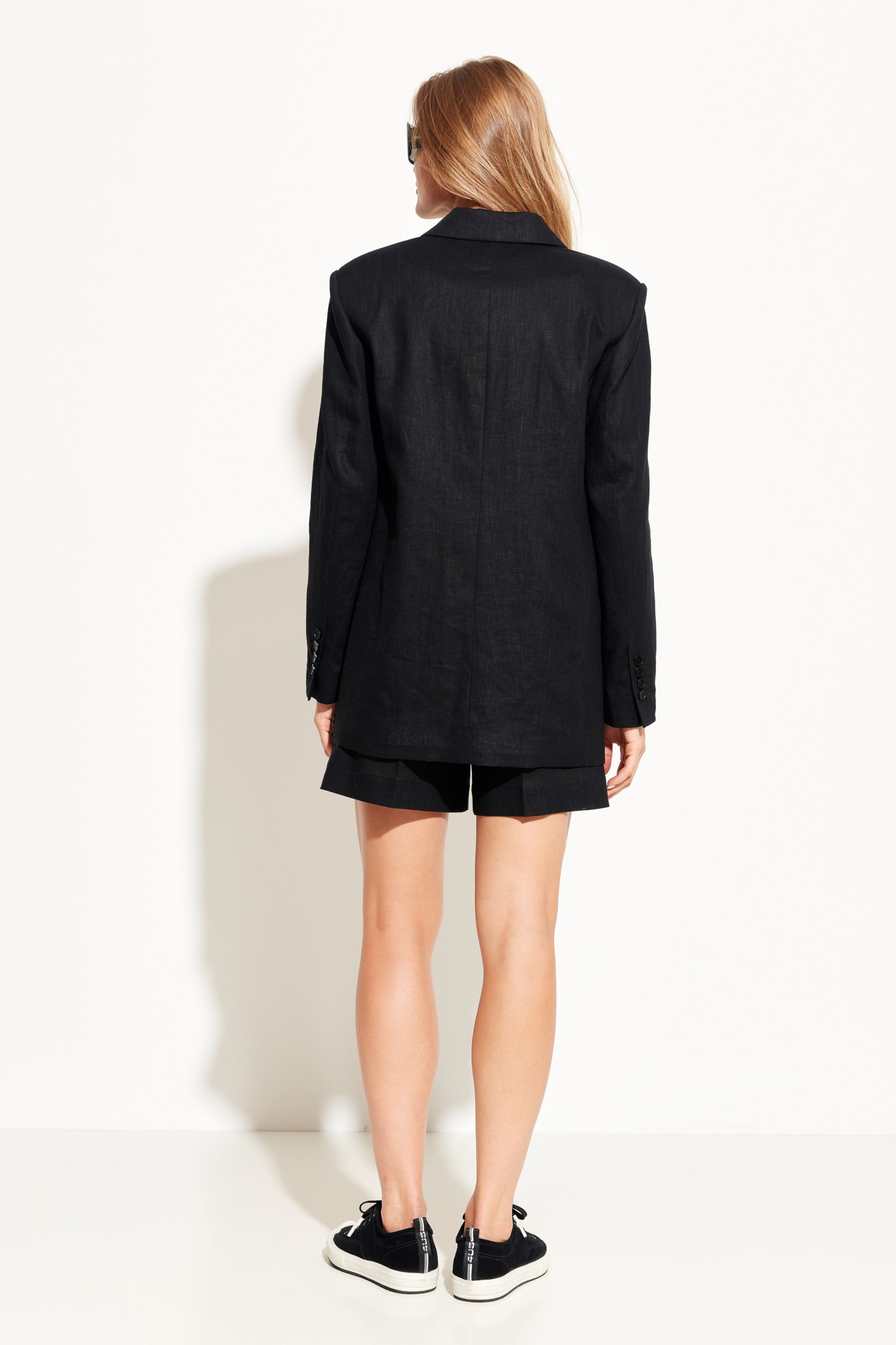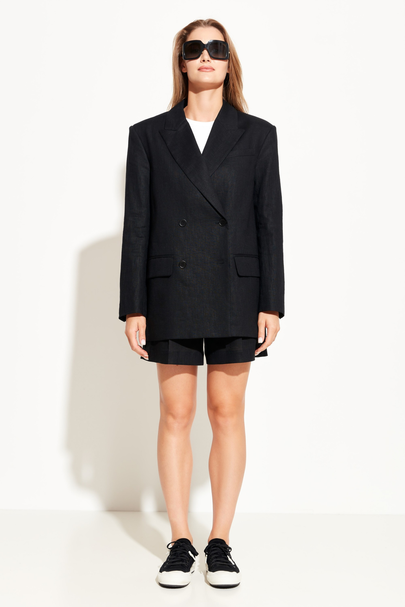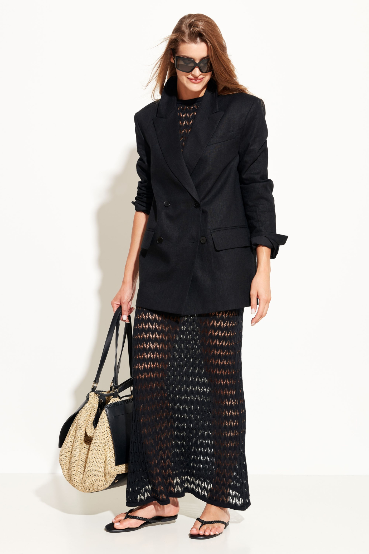 Жакет полуприлегающего силуэта, длиной ниже линии бедер. Воротник отложной. По бокам прорезные карманы с клапанами. Линия плеч расширена. Жакет на подкладке, с плечевыми накладками.