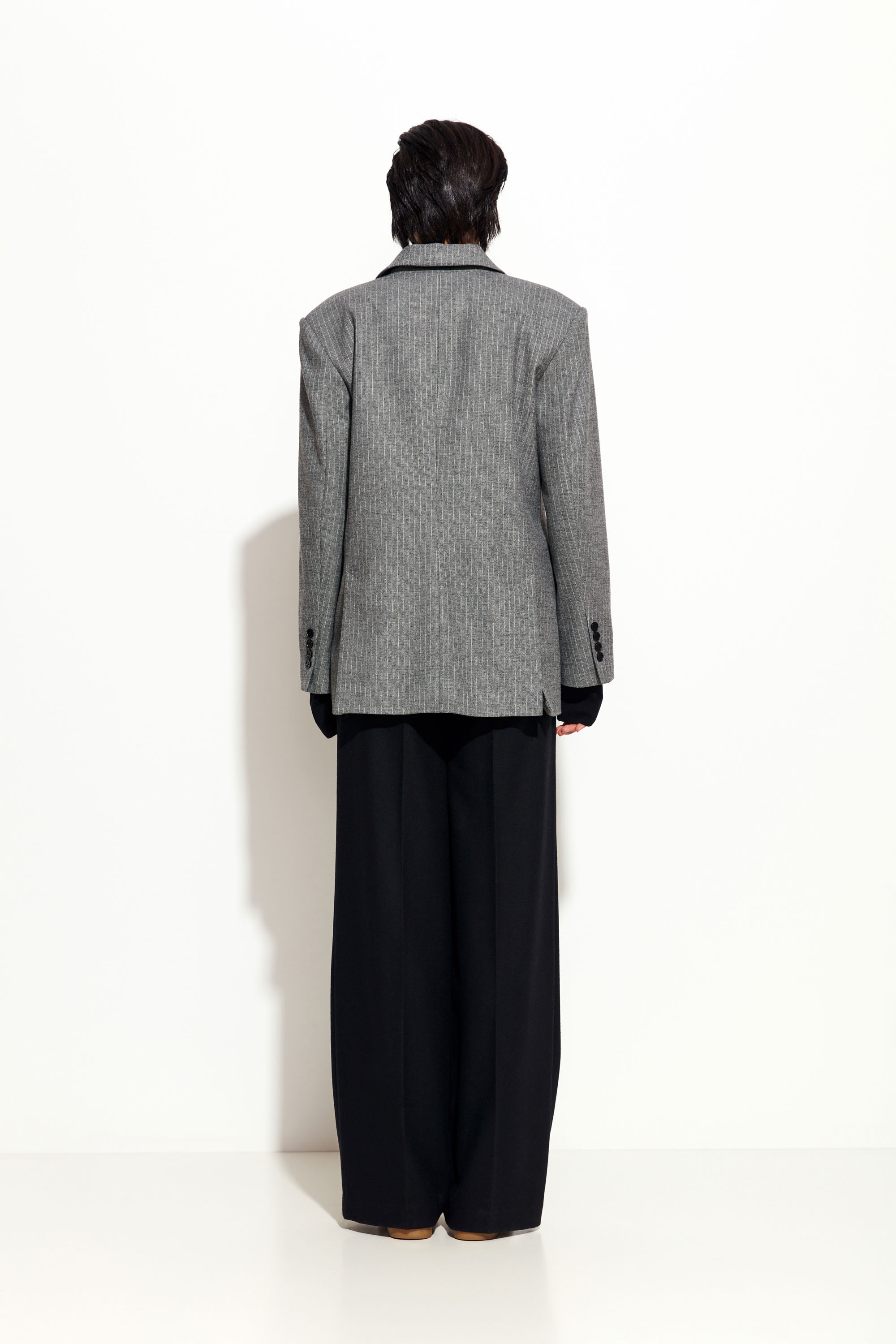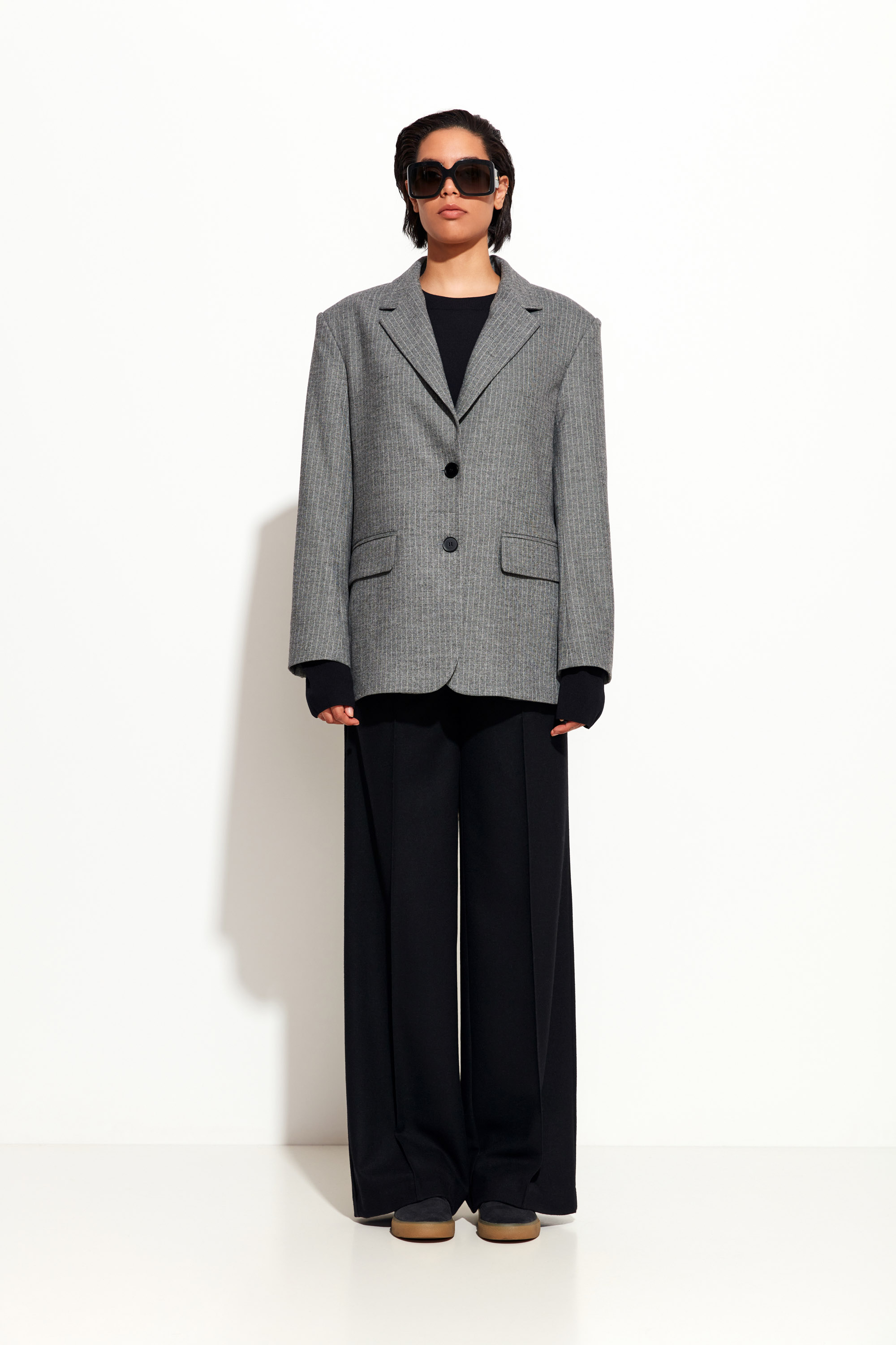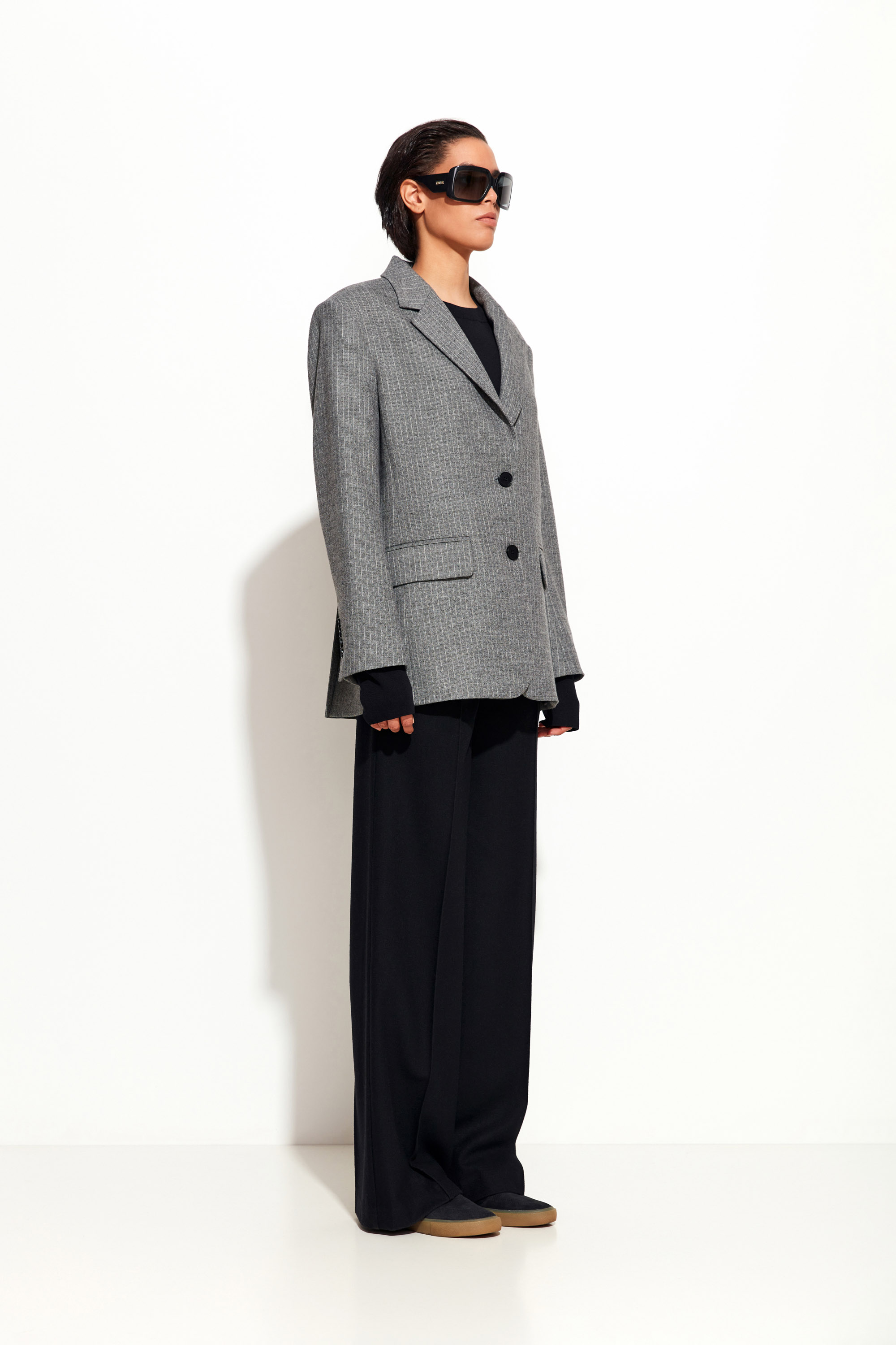 Жакет Lakbi 55100 — элегантность тонкой вертикальной полоски и комфорт современных материалов.