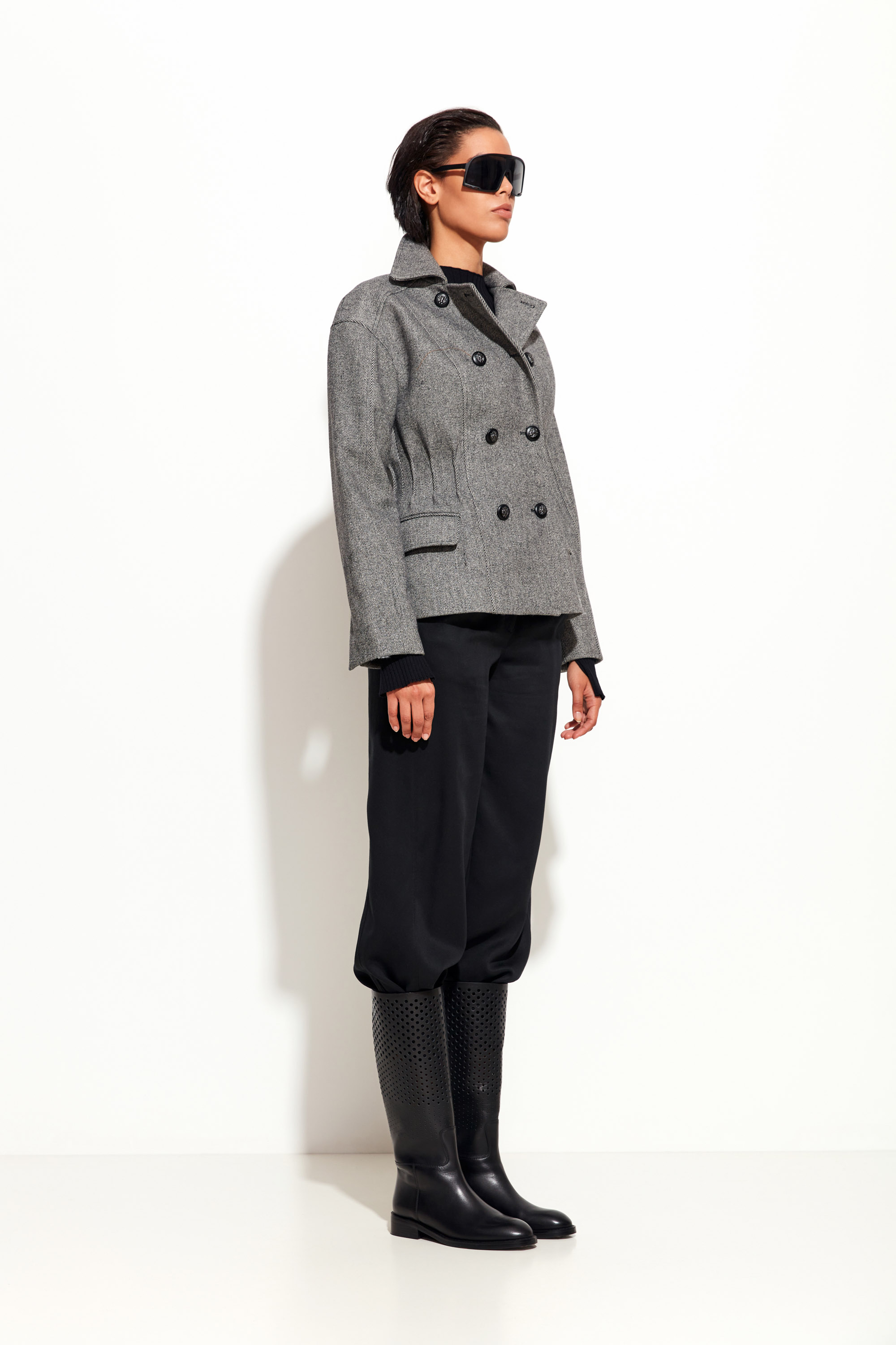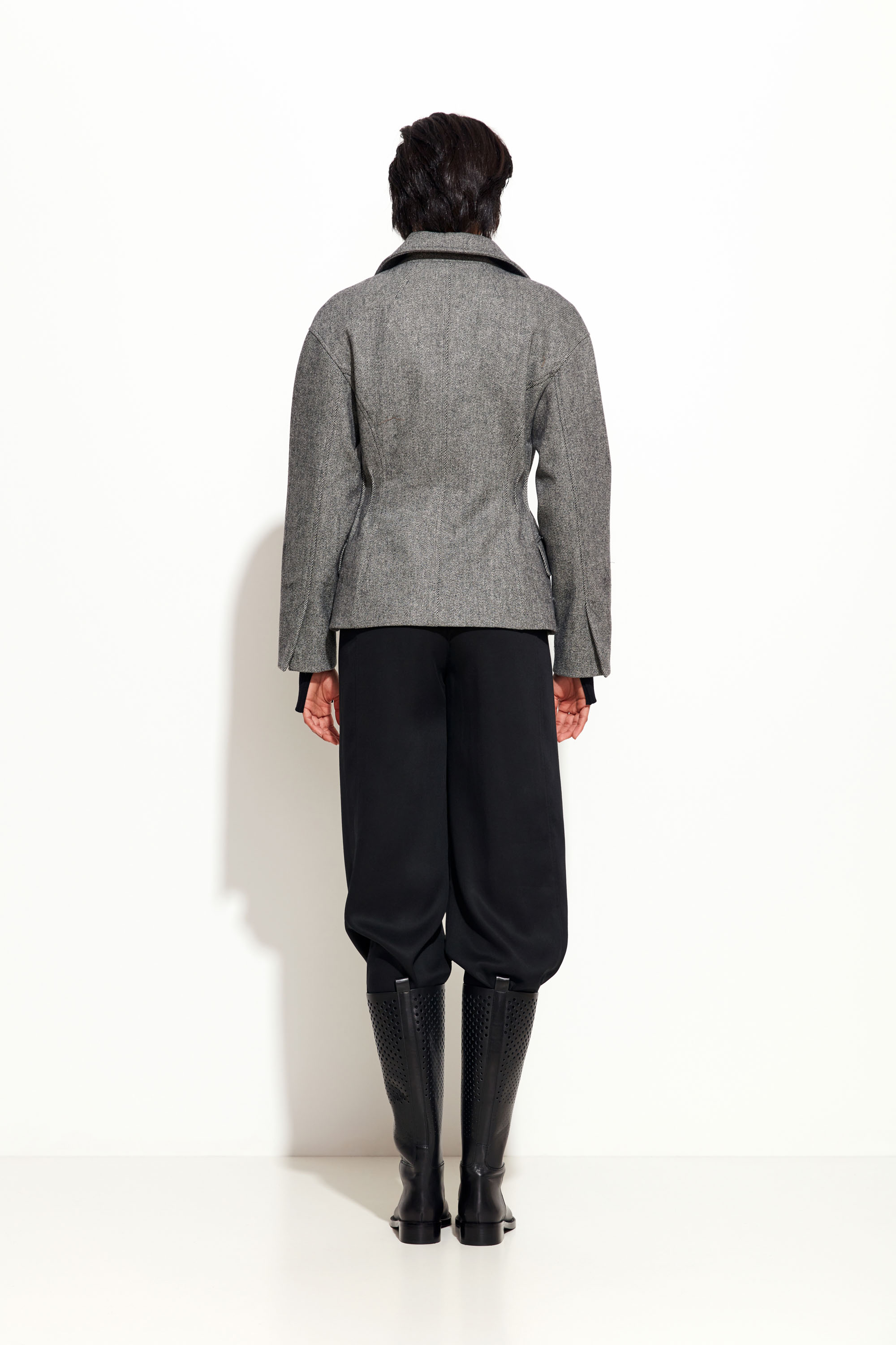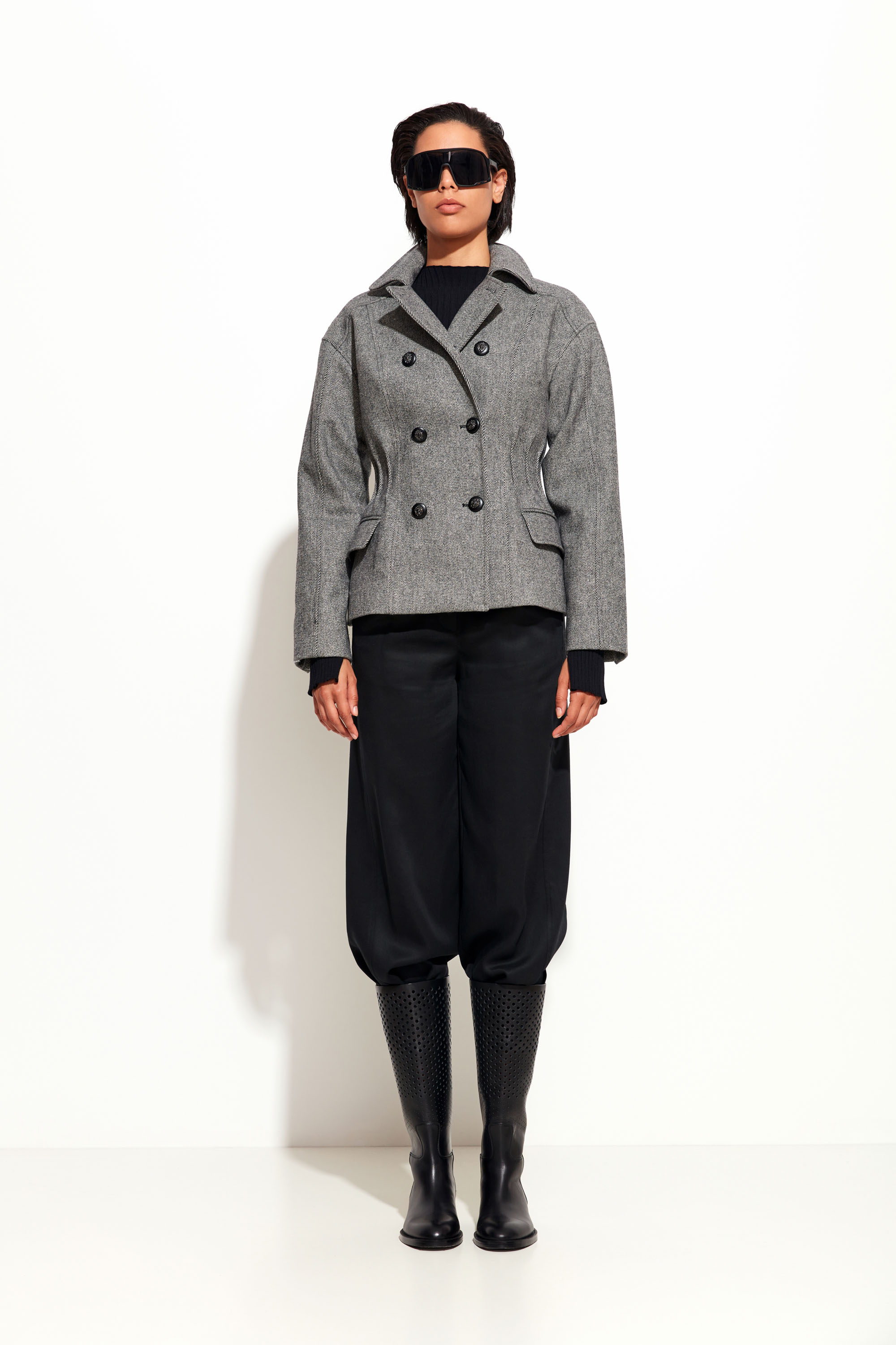 Жакет серого цвета Lakbi из коллекции осень-зима 2025/26 — модель с выразительным архитектурным кроем, подчёркивающим расширенные плечи и зауженную талию. Изготовлен из премиальной ткани с составом 60% шерсть и 40% полиэстер, что обеспечивает тепло, комфорт и долговечность. Такой жакет идеально подходит для создания современного делового или вечернего образа с ярким акцентом на форму.