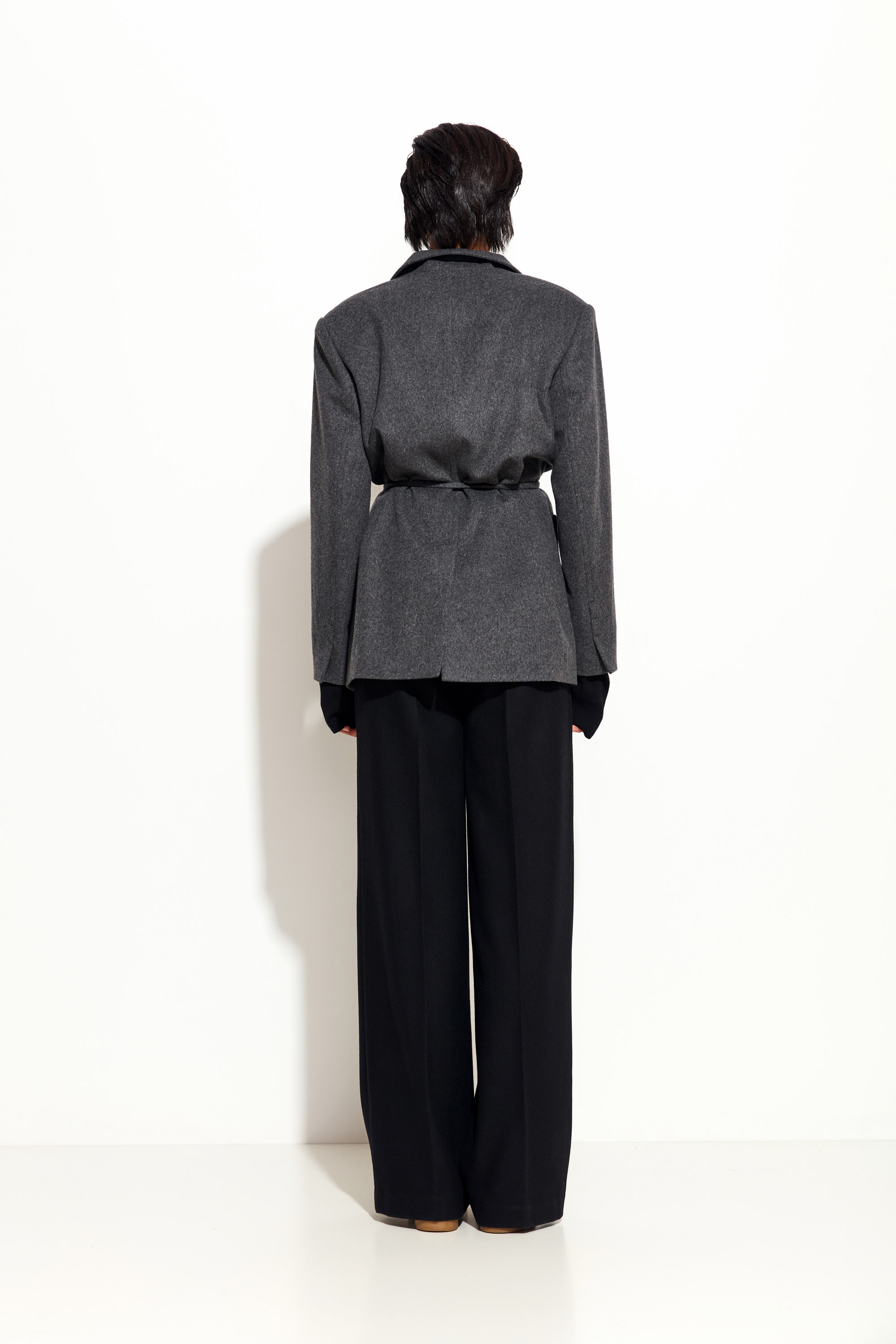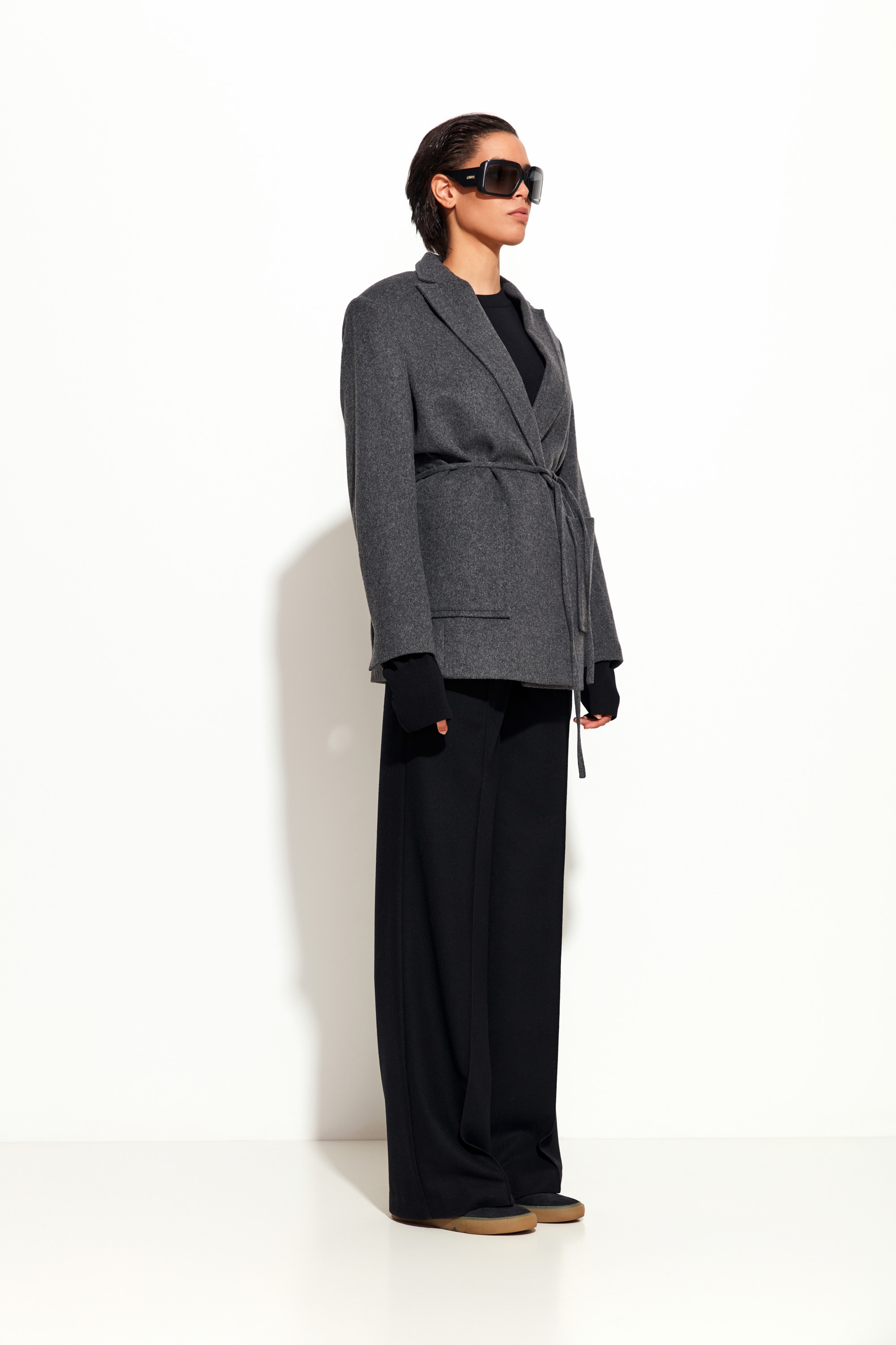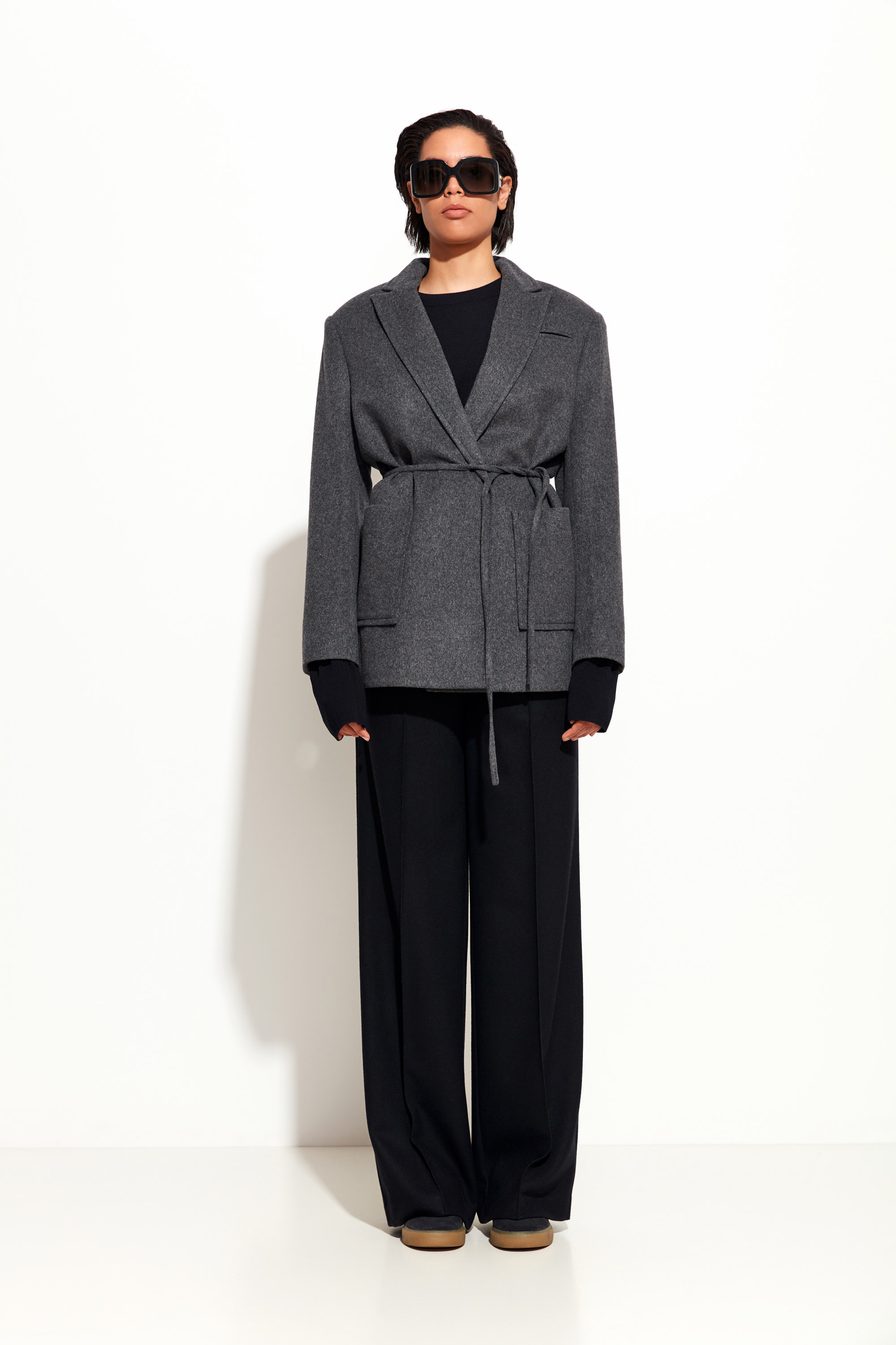 Серый жакет Lakbi из коллекции осень-зима 2025/26 — это современный взгляд на классику. Выполненный из тёплой шерстяной ткани, он отличается прямым силуэтом, чёткой линией плеч и акцентом на талии благодаря тонкому поясу из той же ткани. Накладные карманы придают образу немного расслабленной структуры и делают жакет практичным. Стильная альтернатива пальто или пиджаку, которая подойдёт как для офиса, так и для повседневных образов.